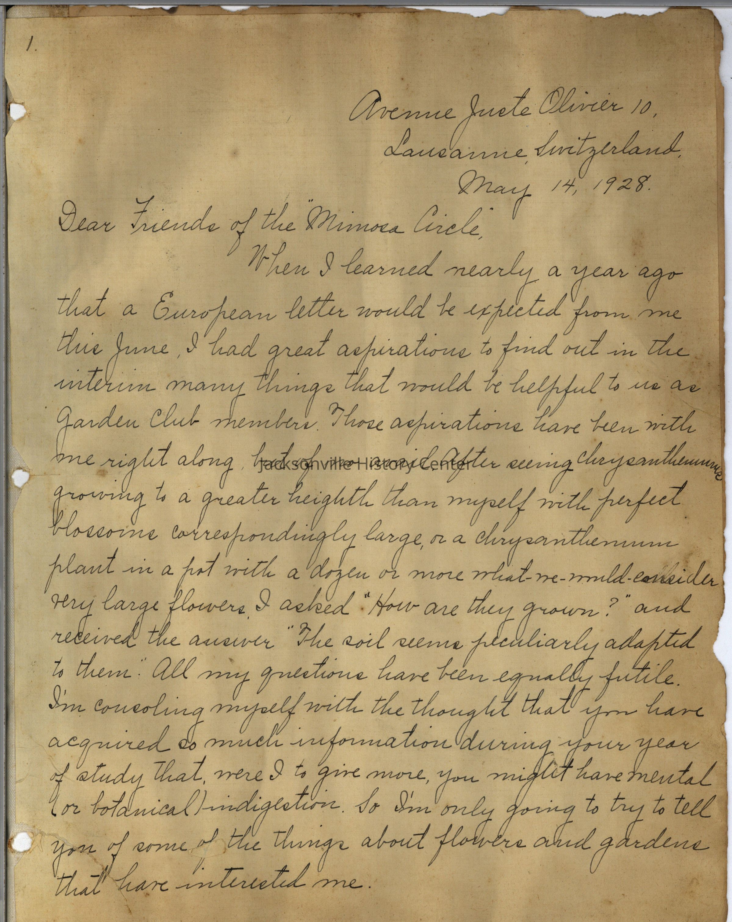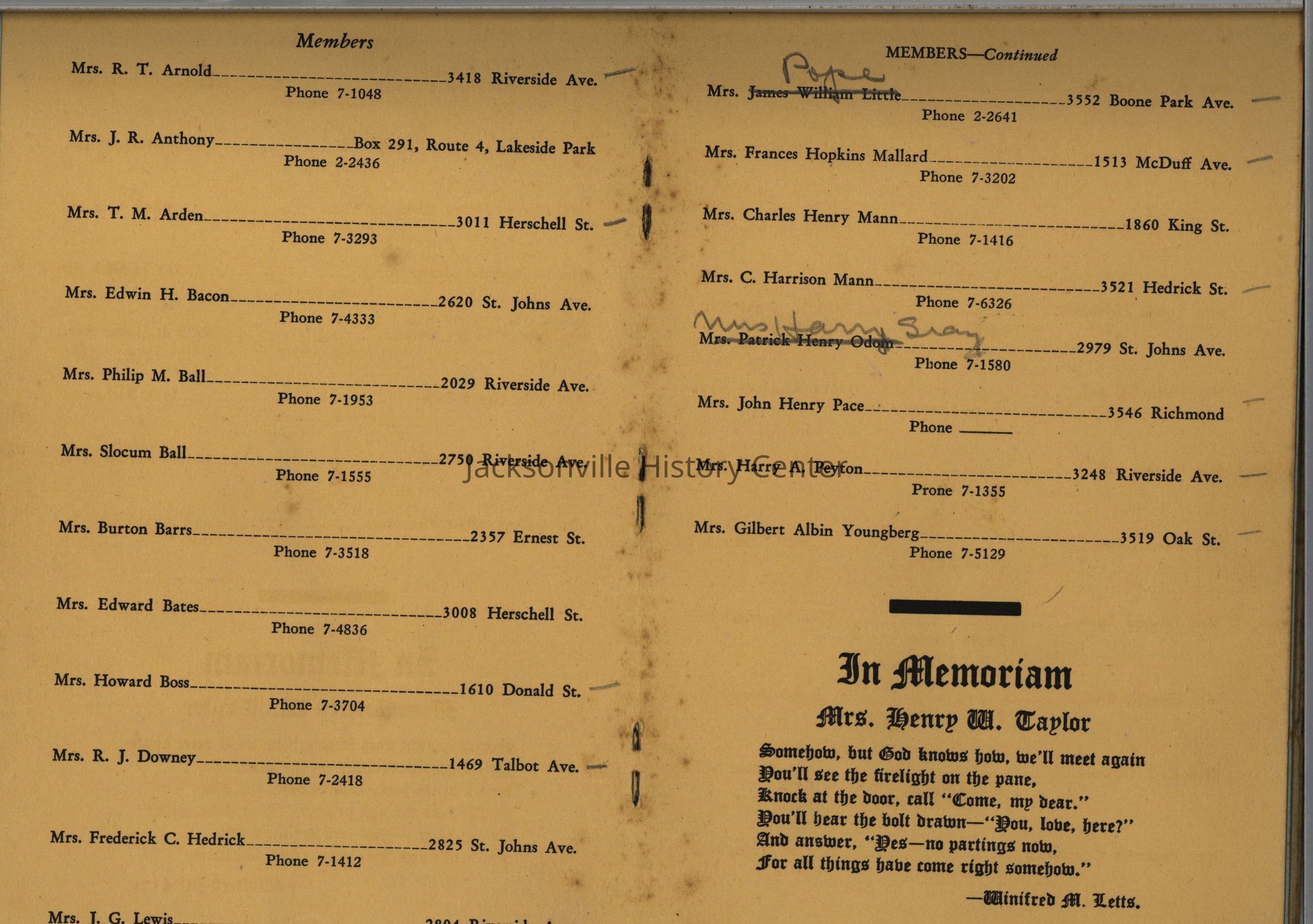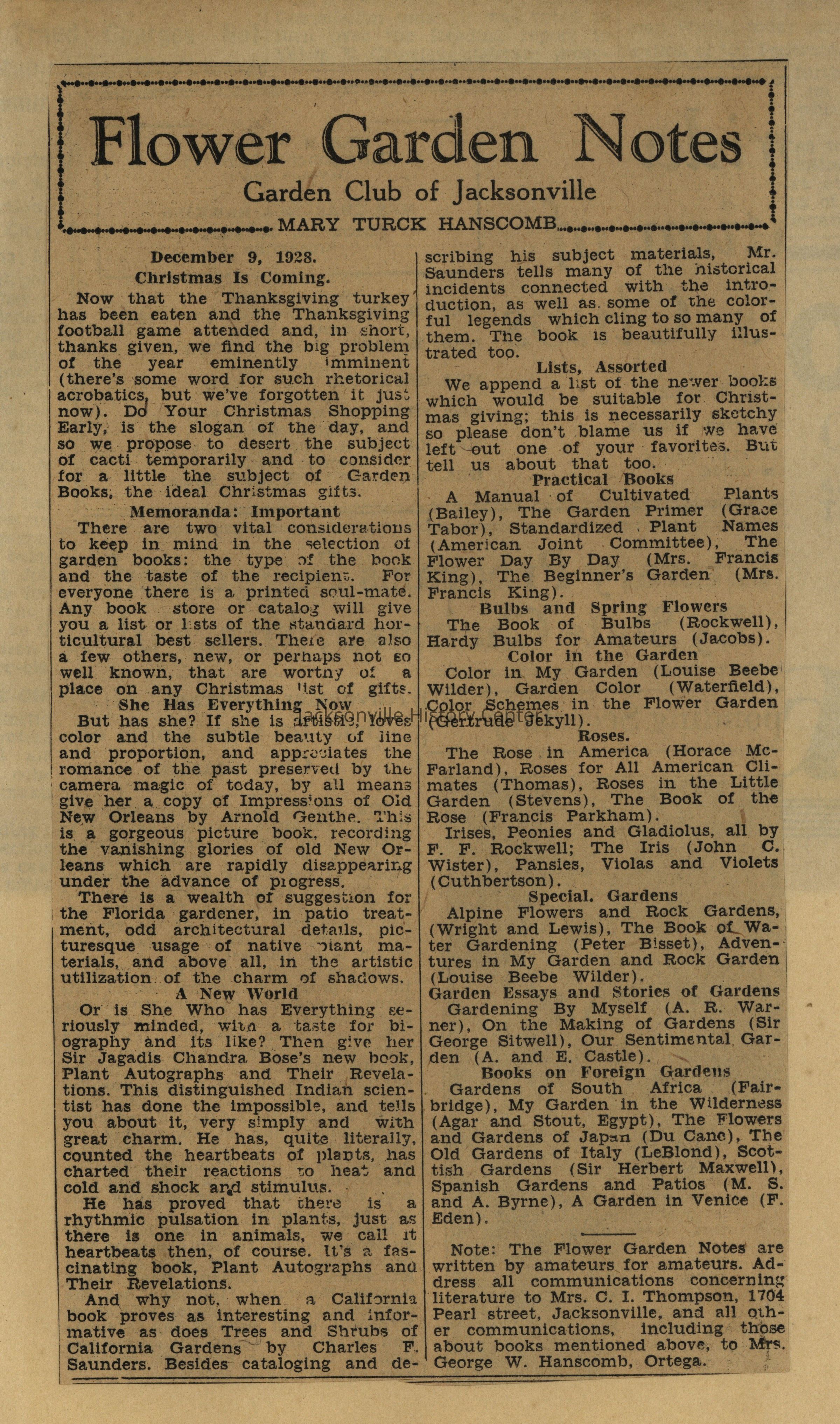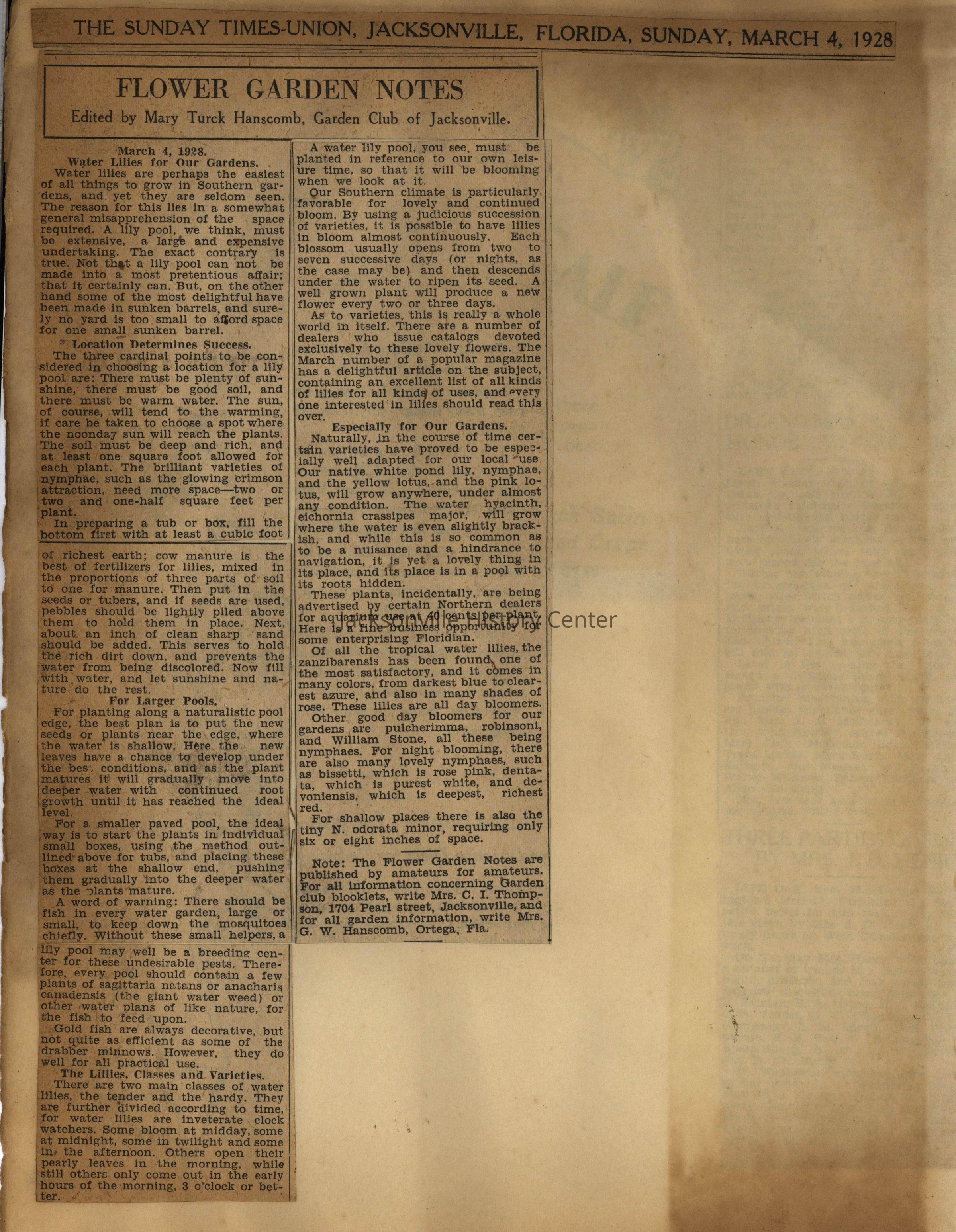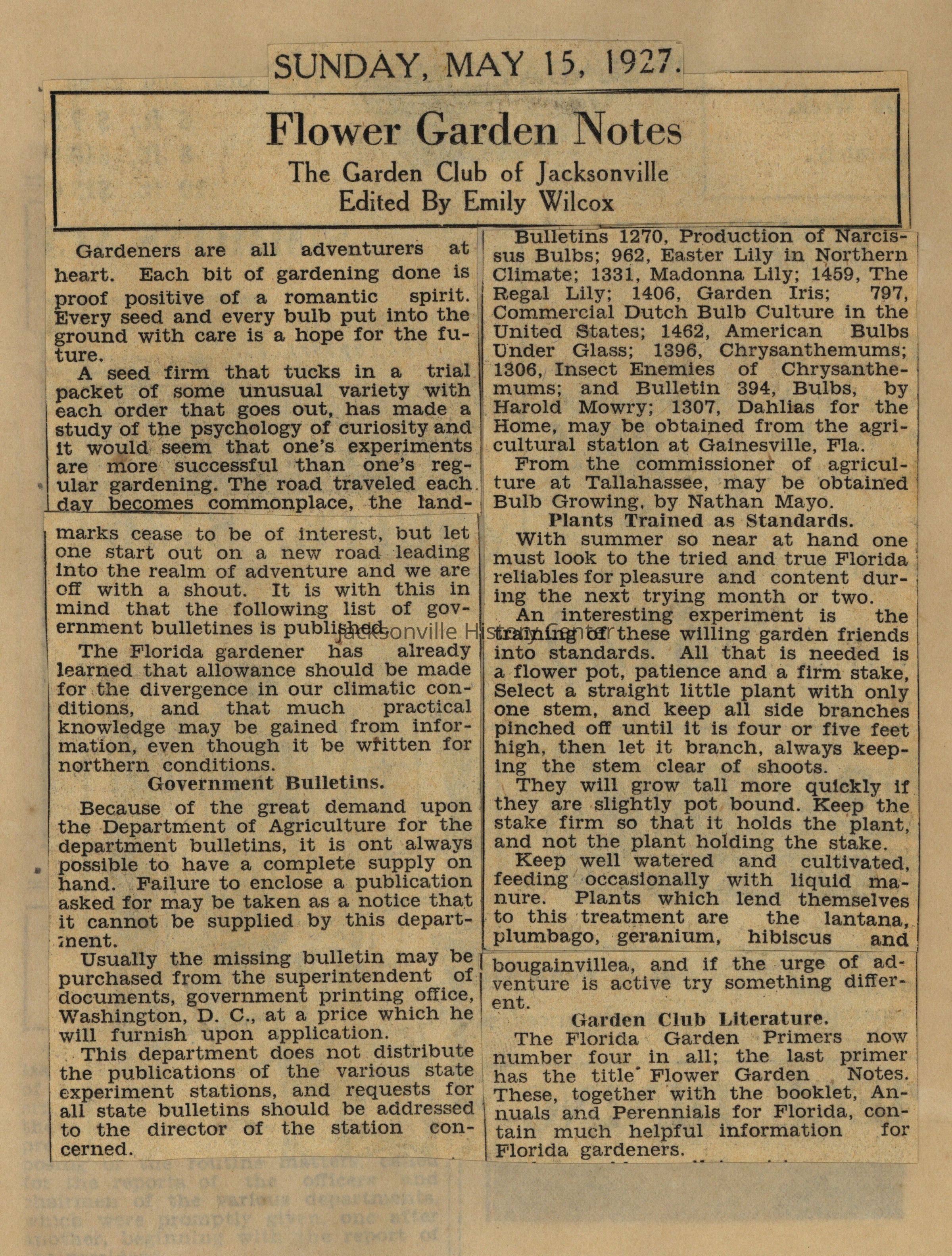 Mimosa Circle, Garden Club of Jacksonville, Florida.Notes