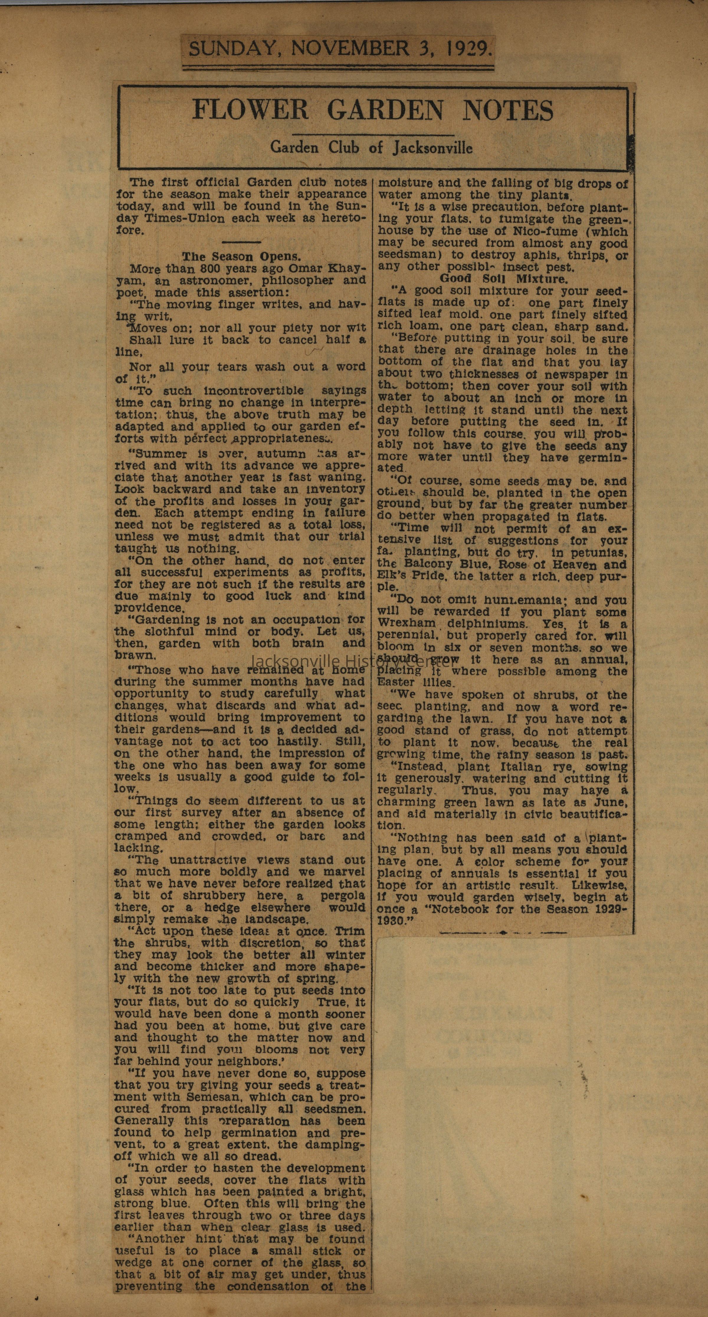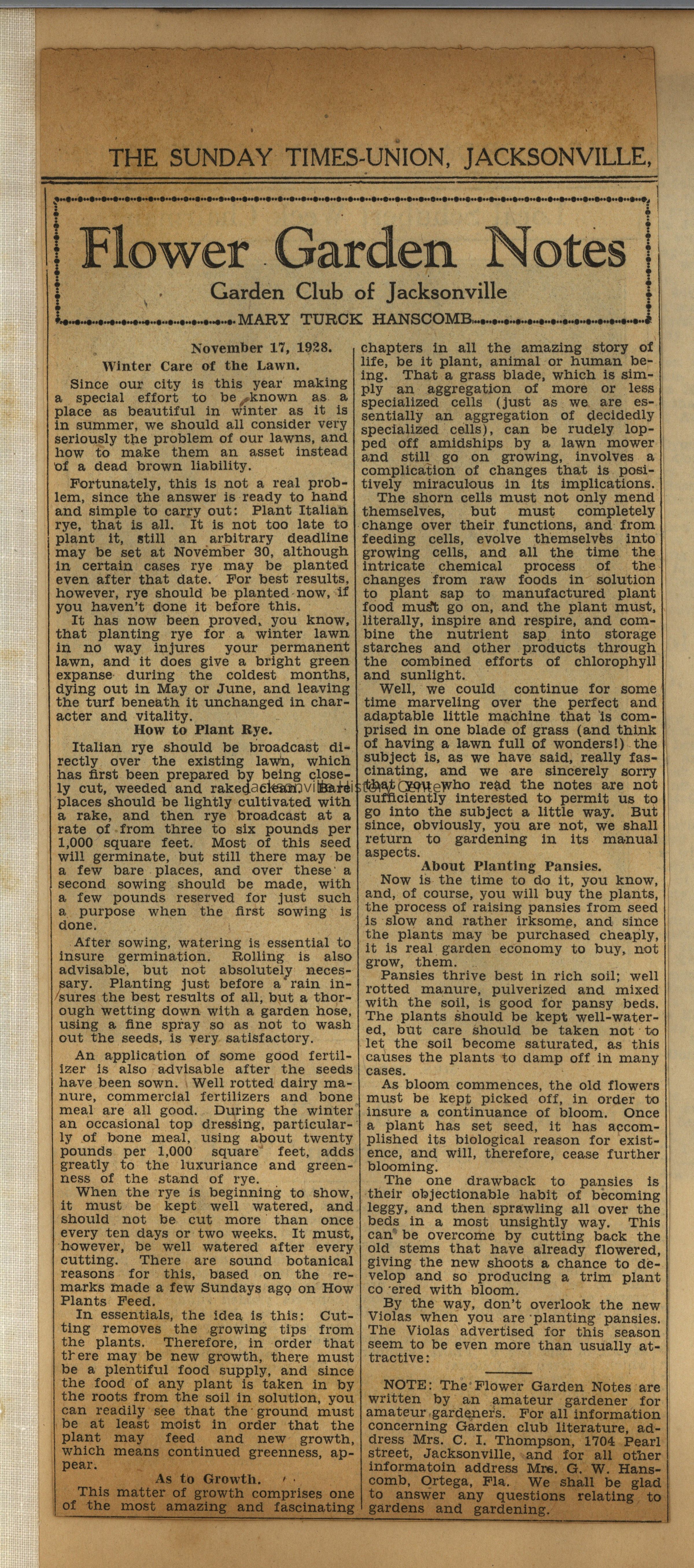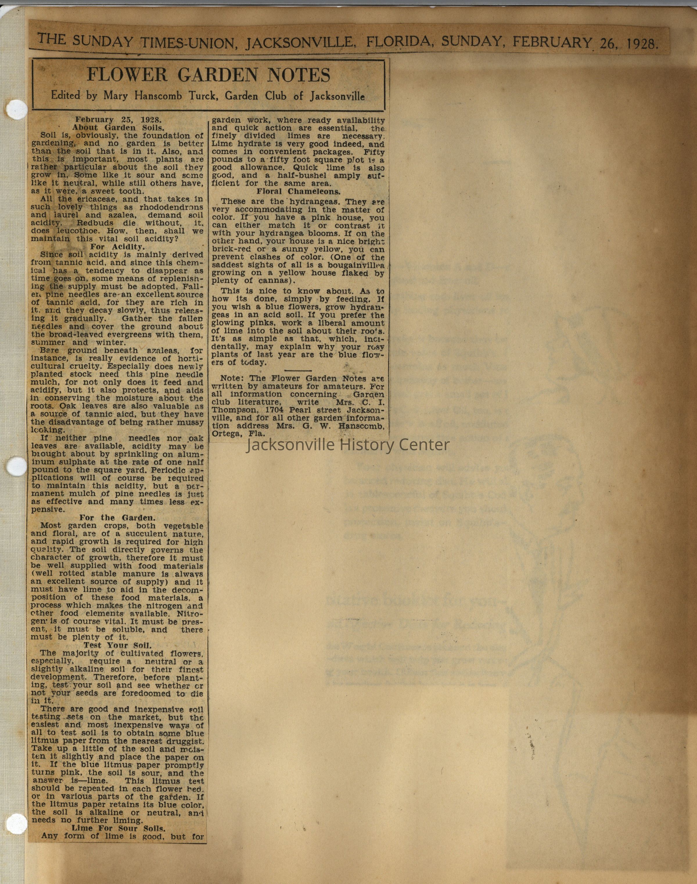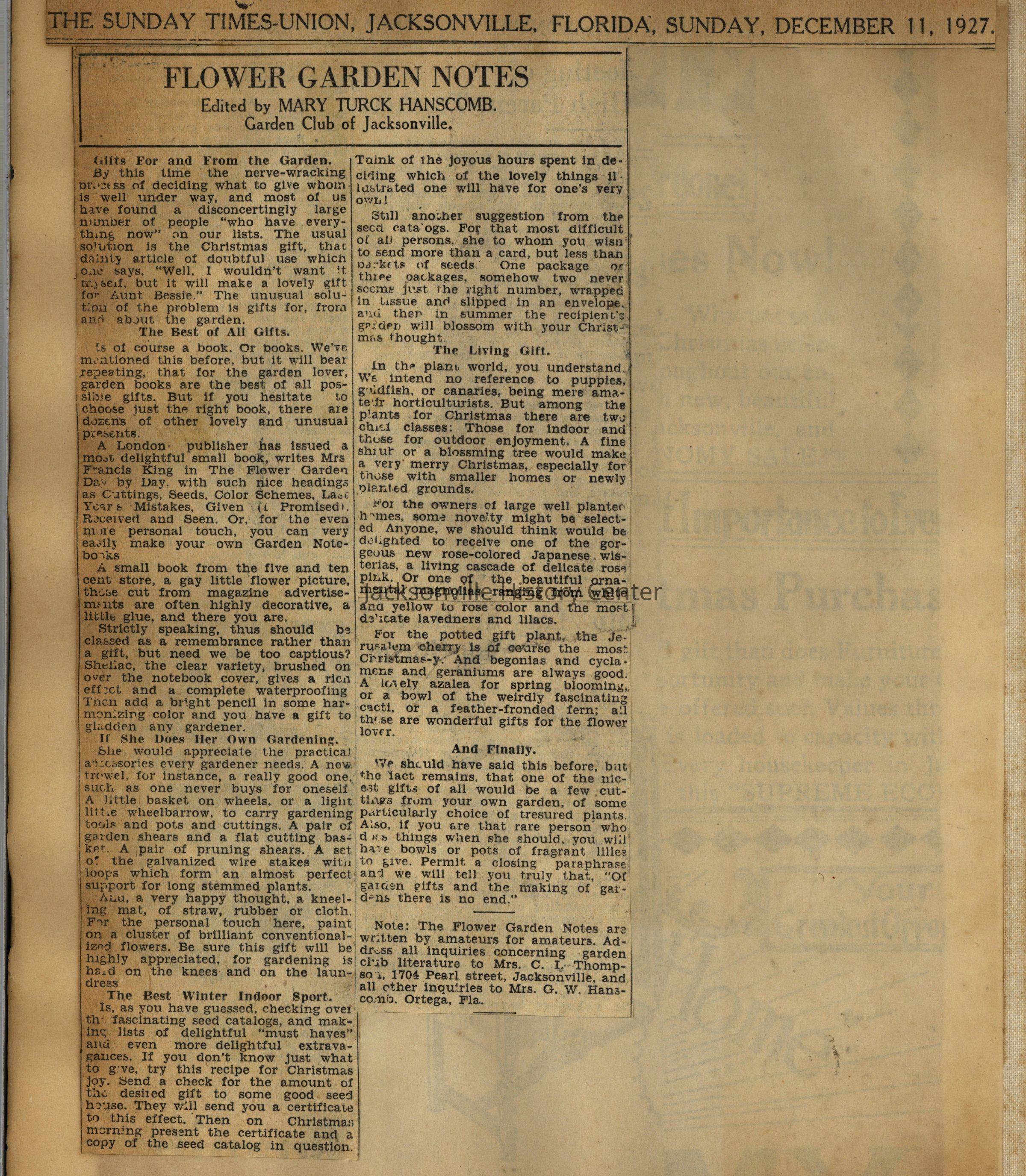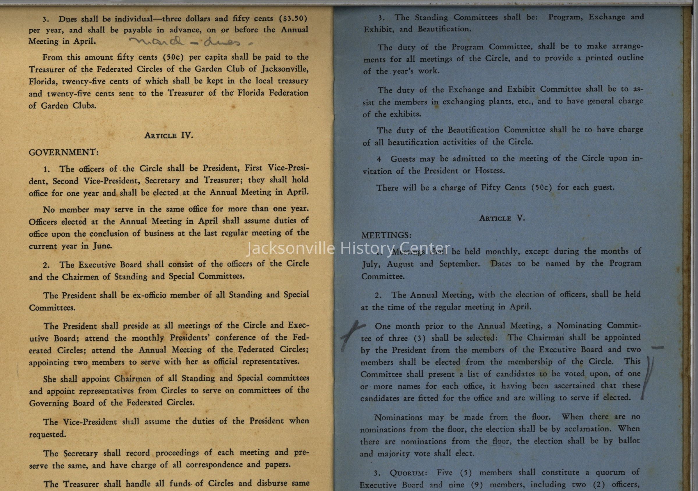 Mimosa Circle, Garden Club of Jacksonville, Florida.Notes