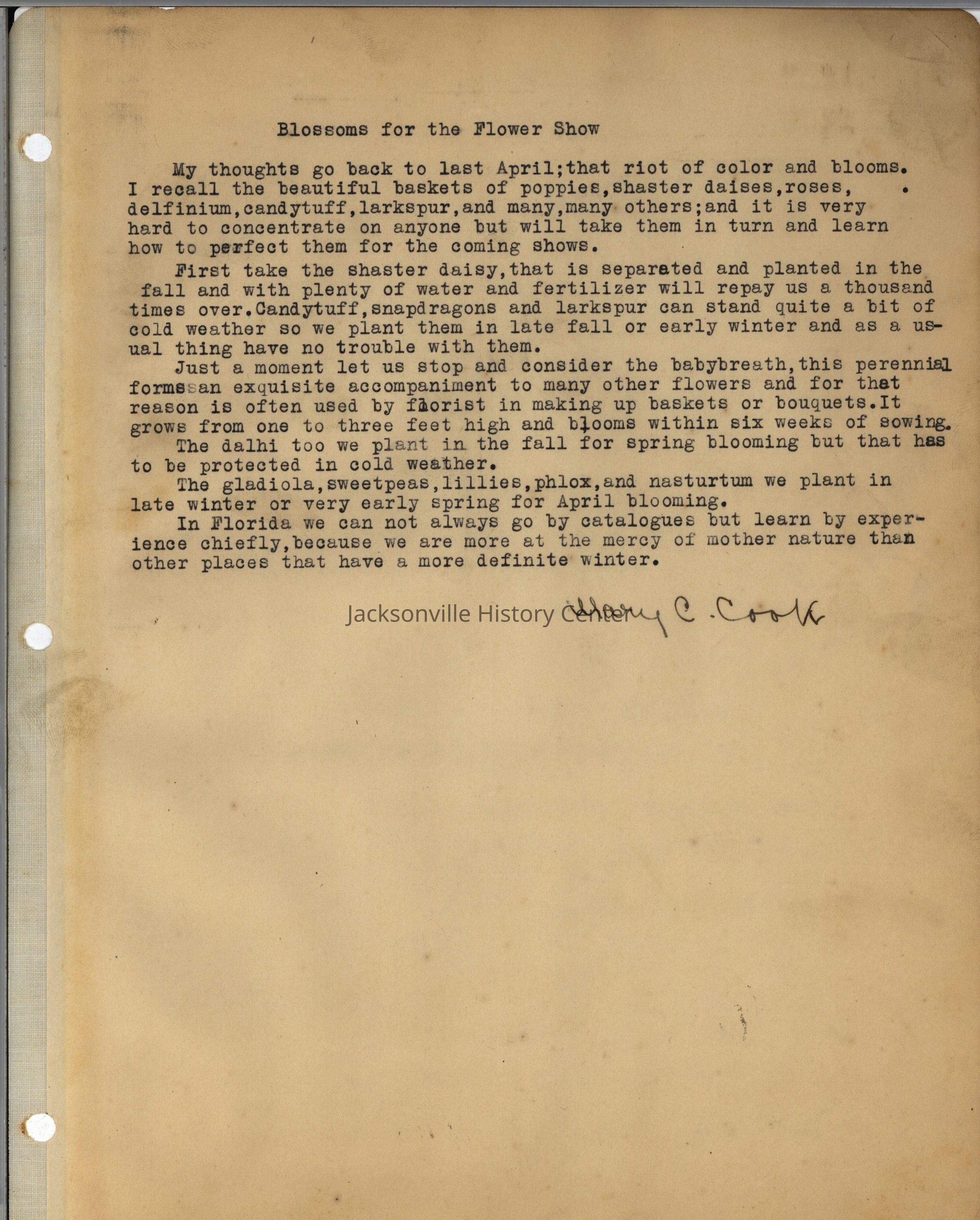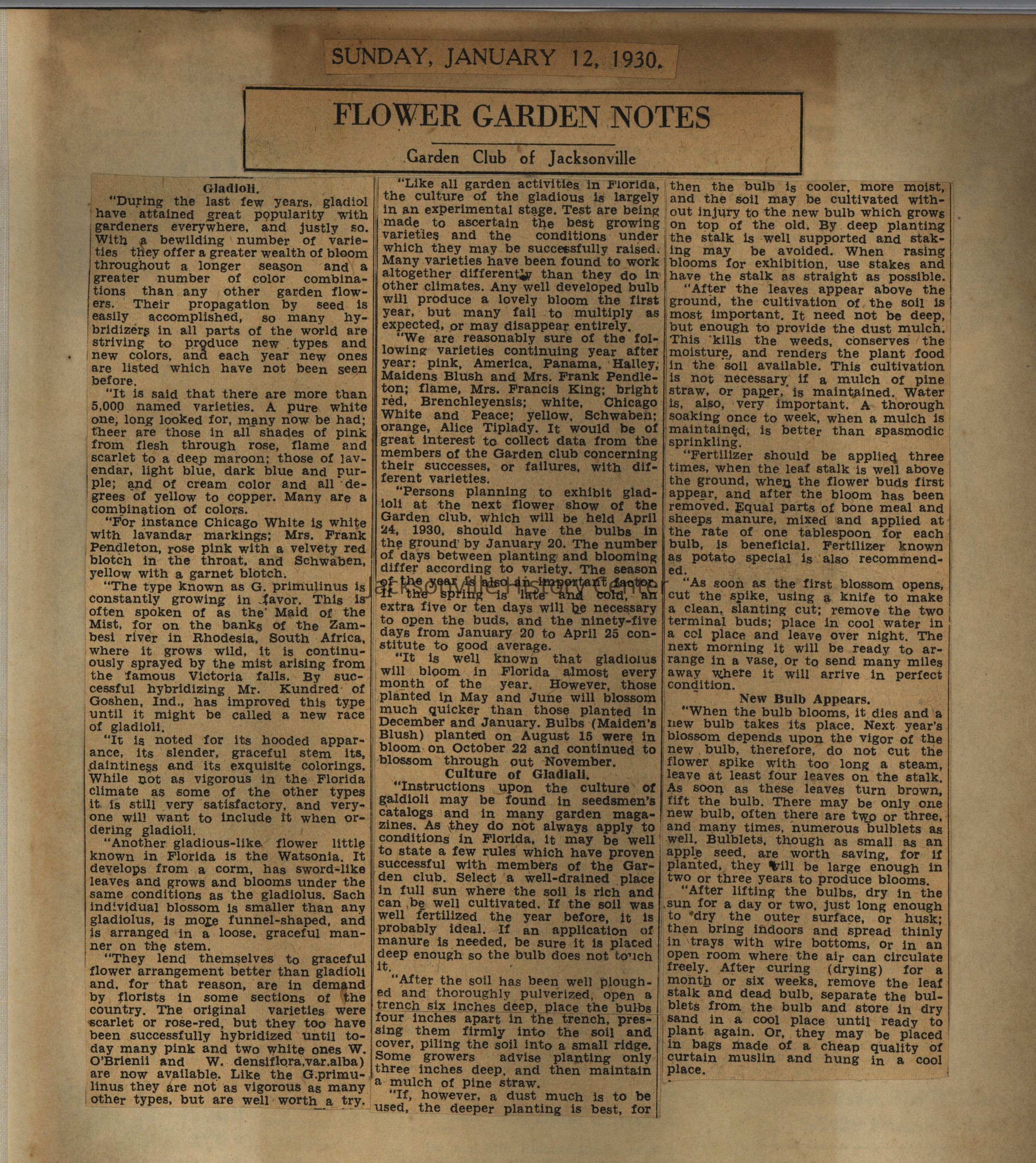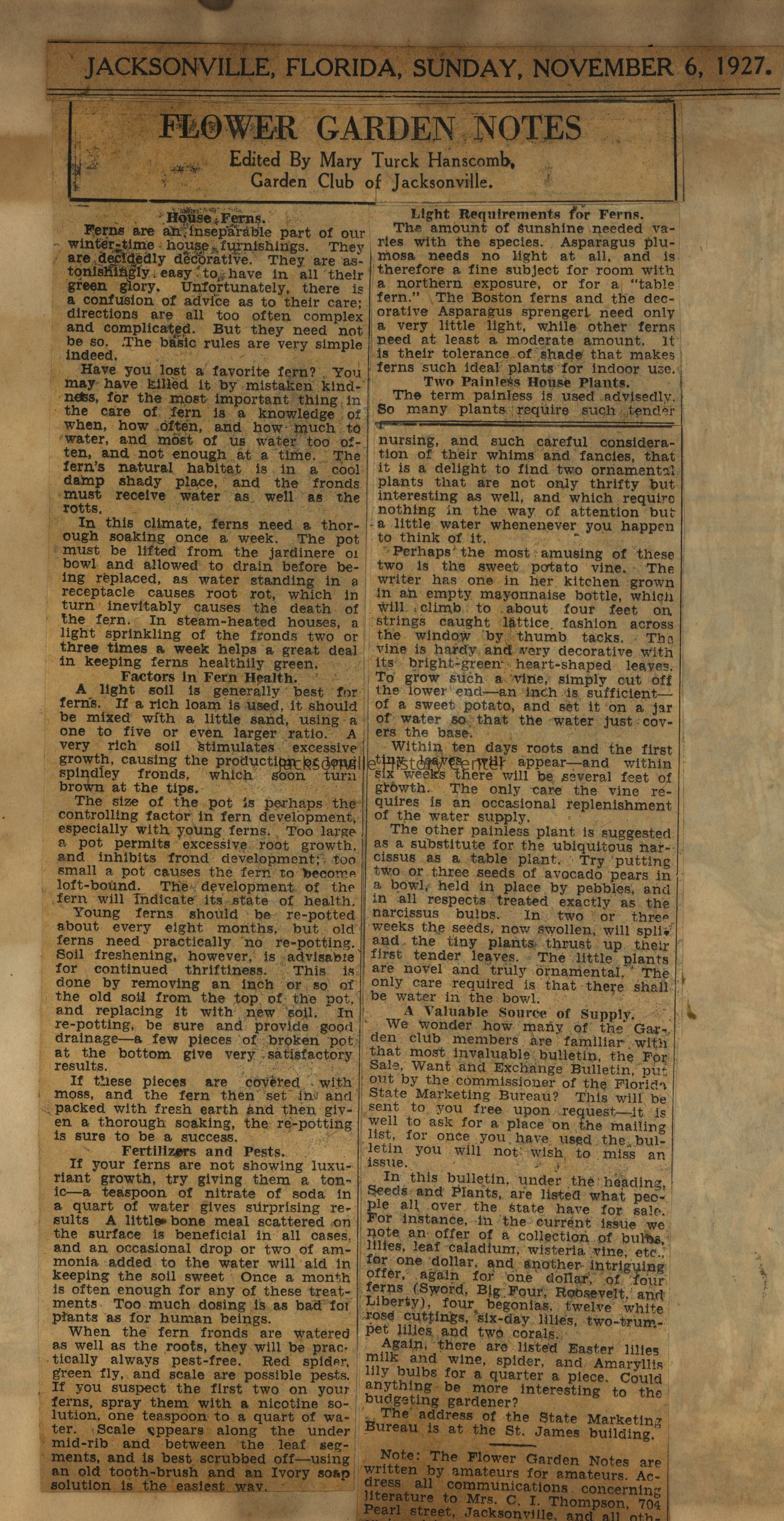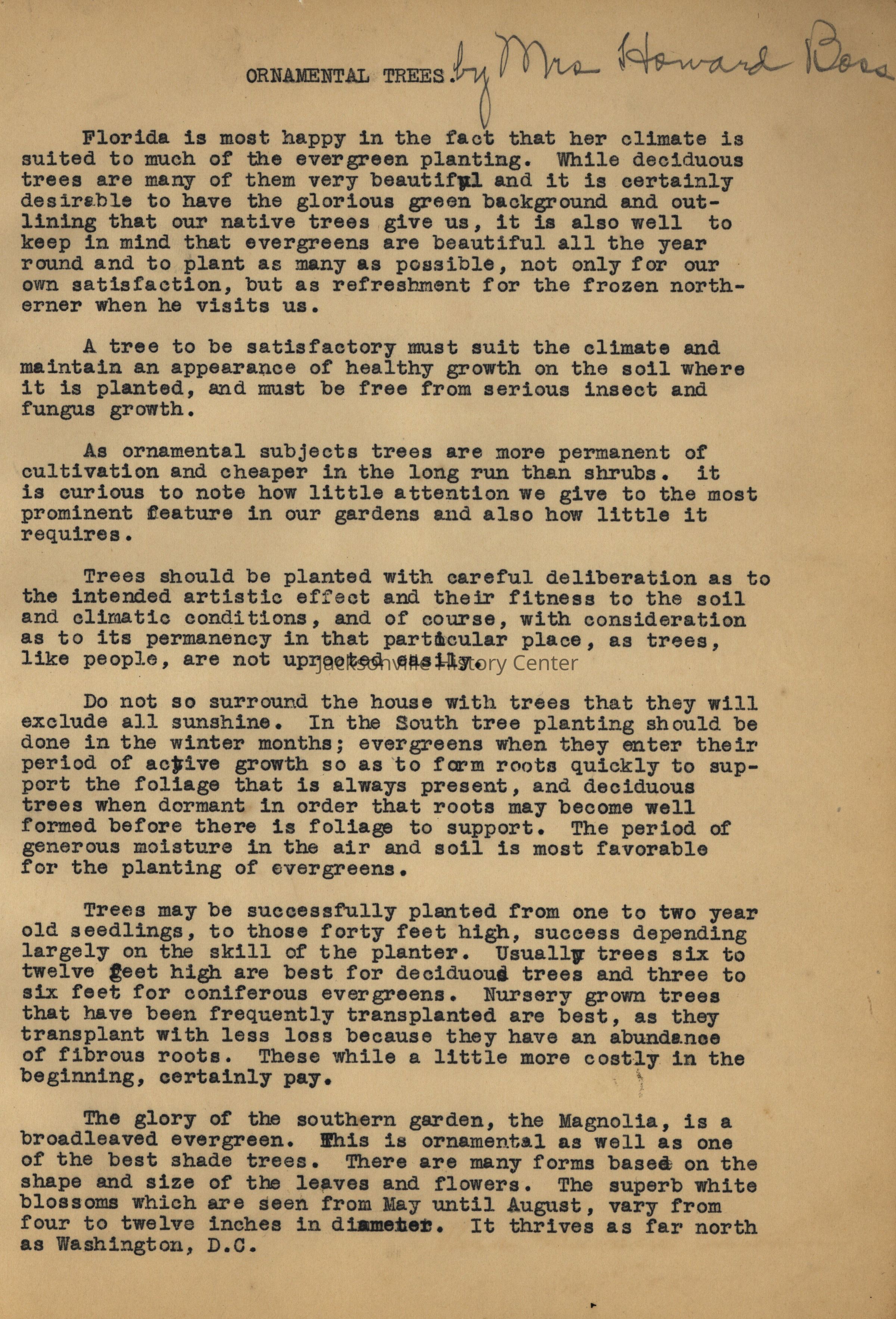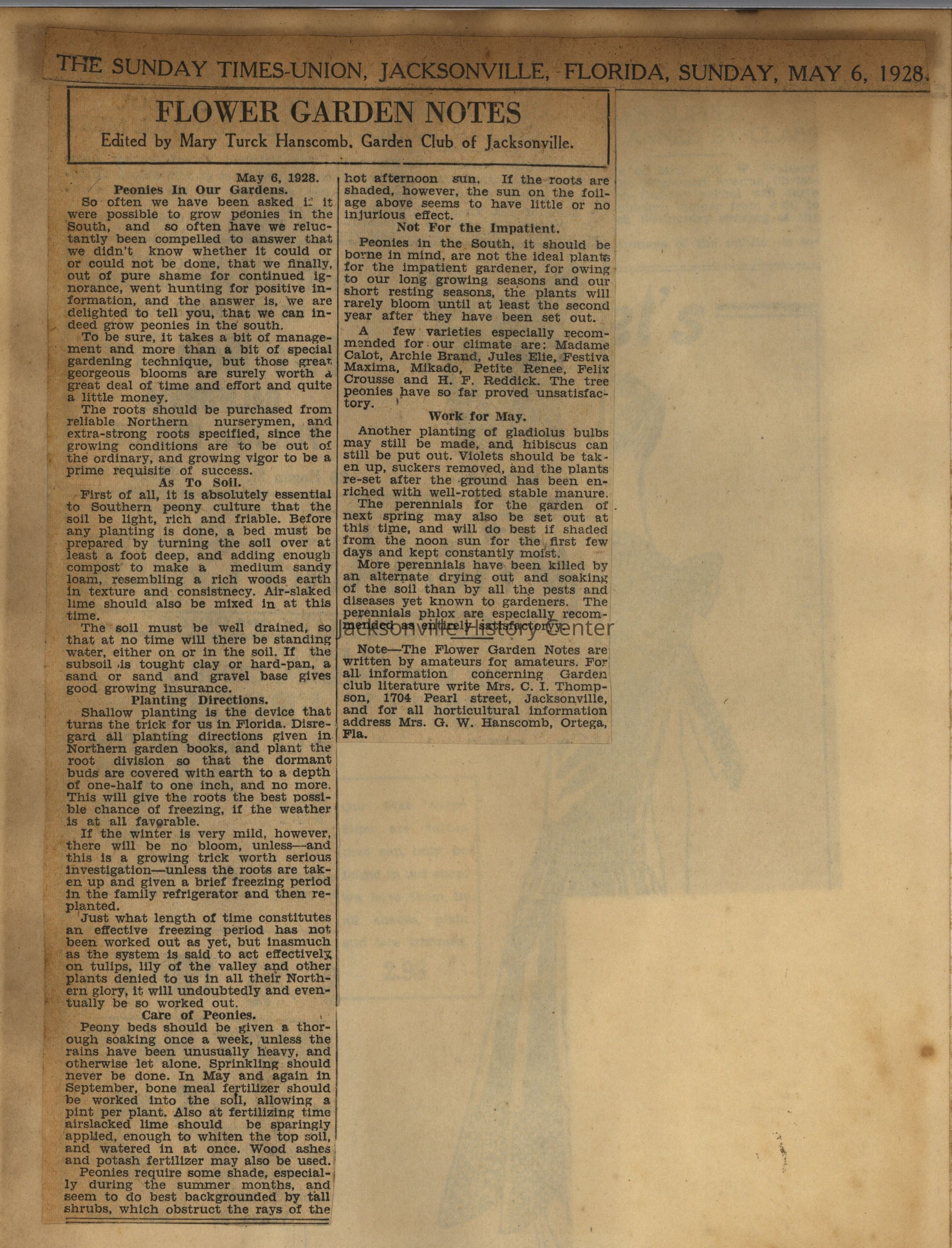 Mimosa Circle, Garden Club of Jacksonville, Florida.Notes