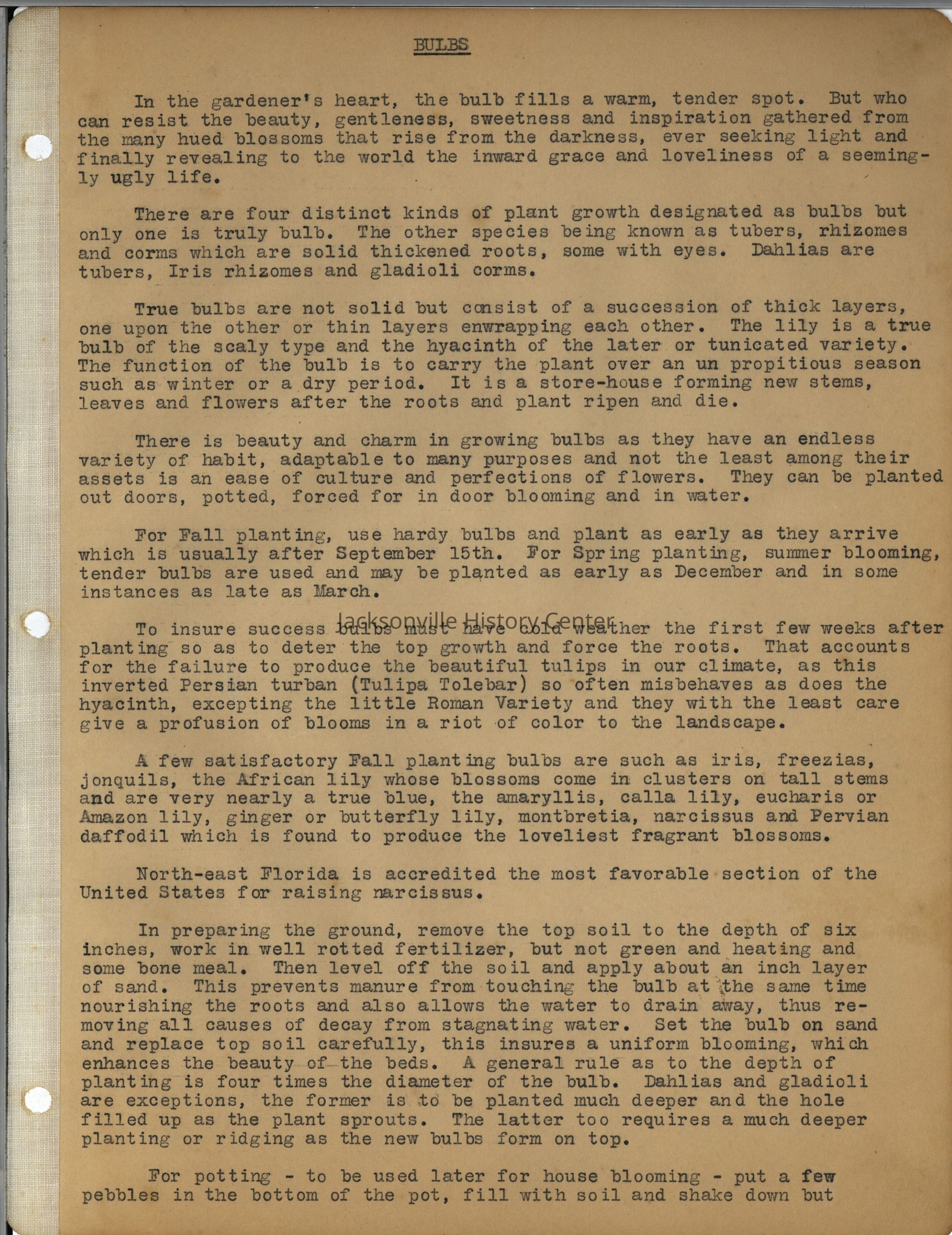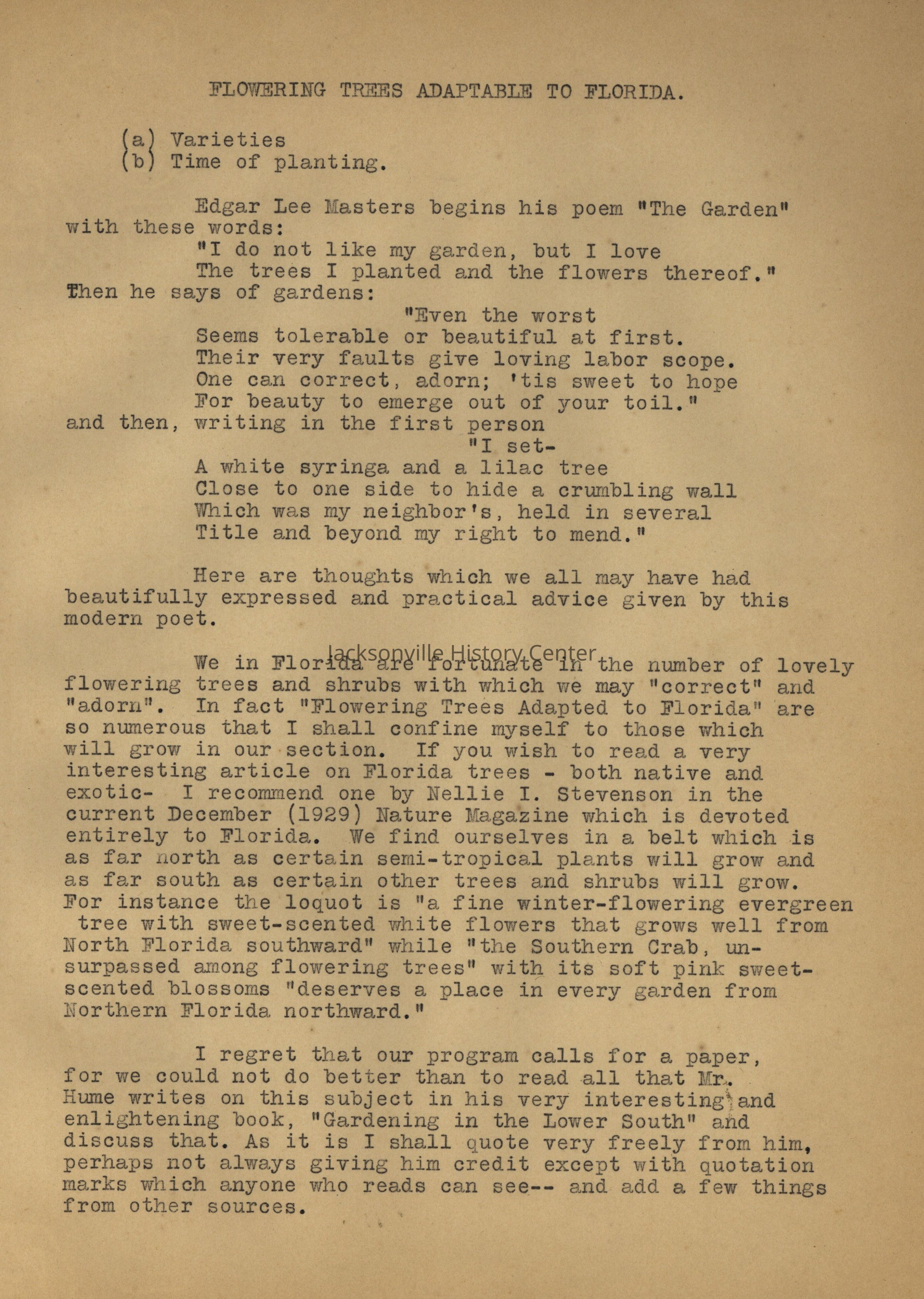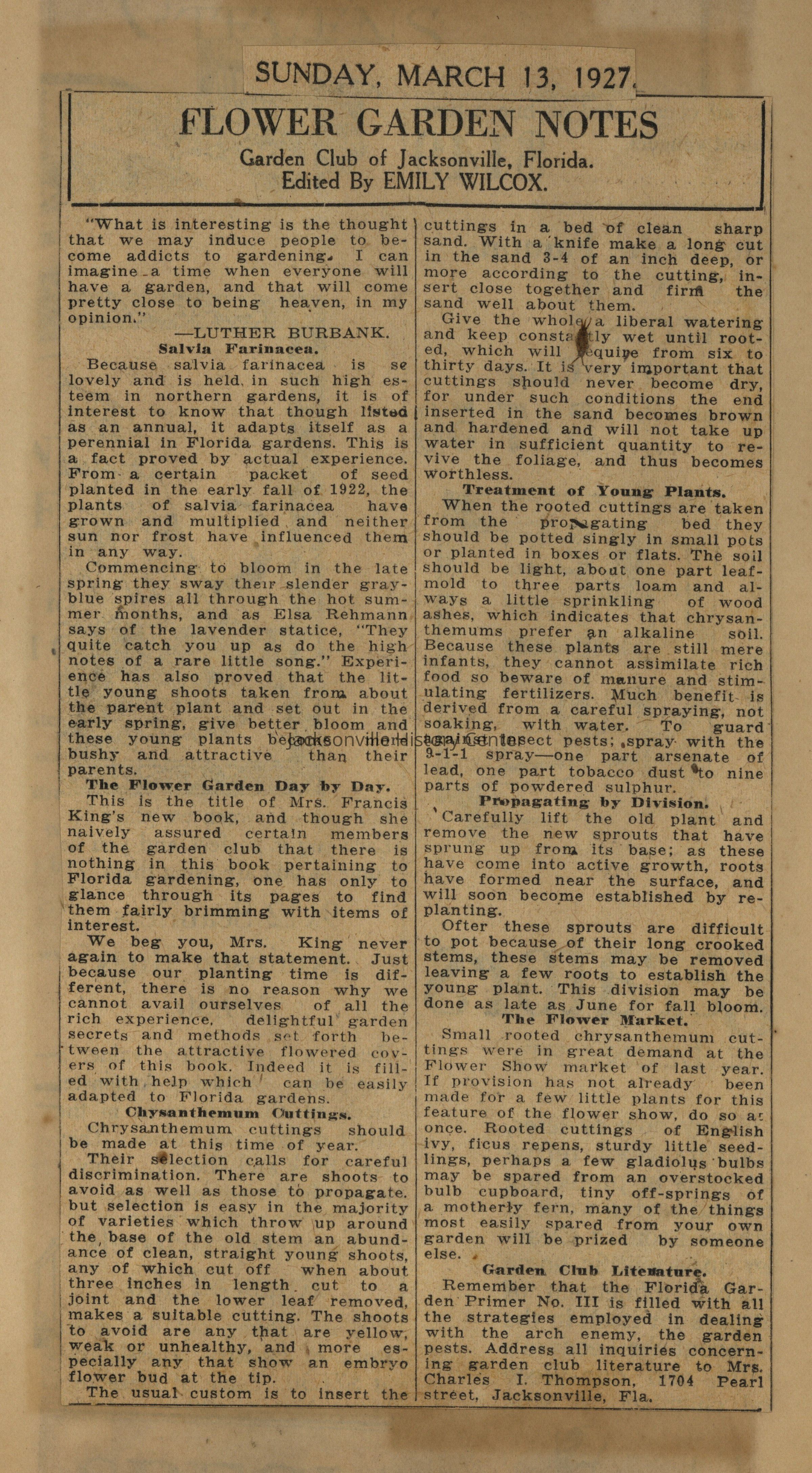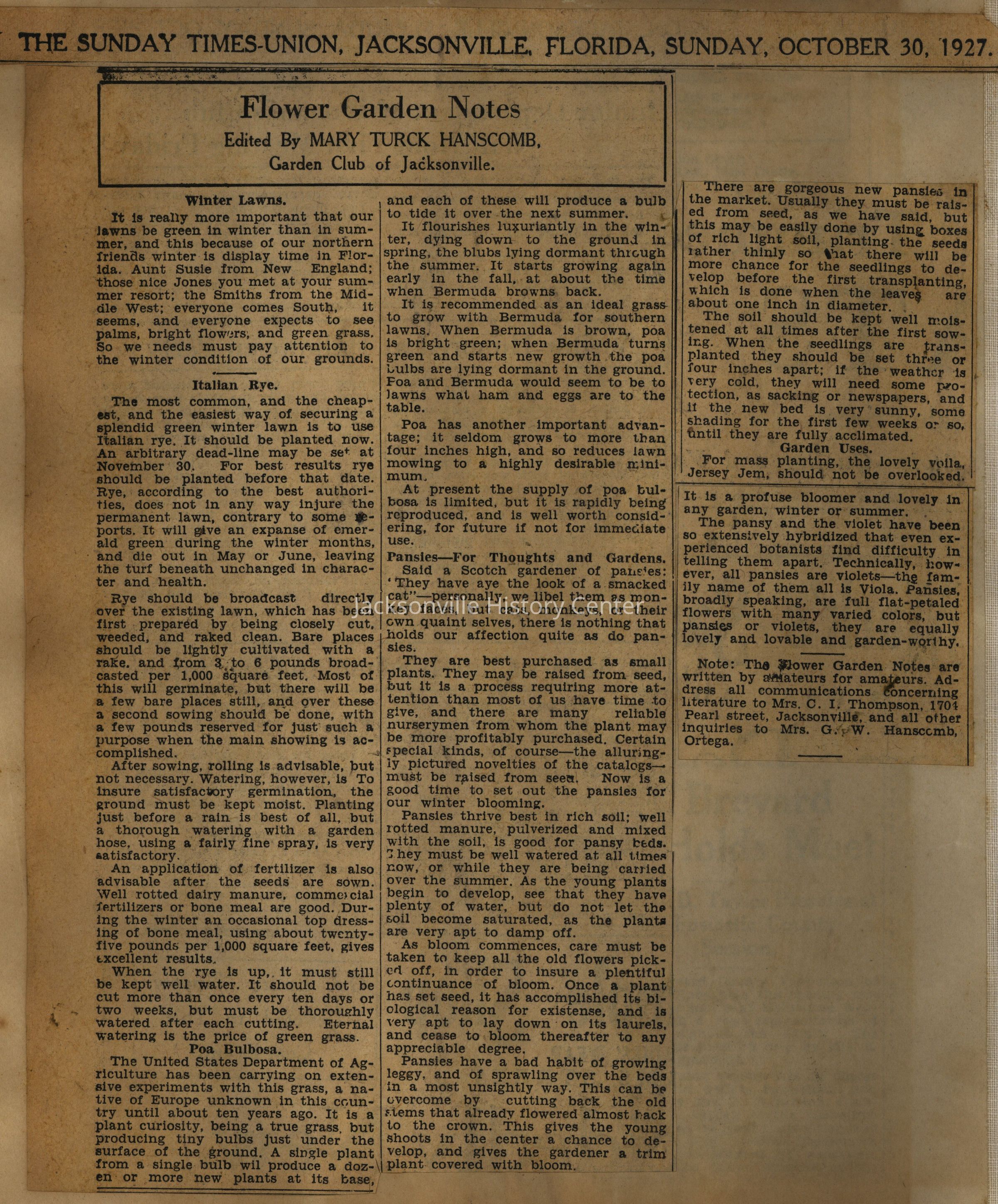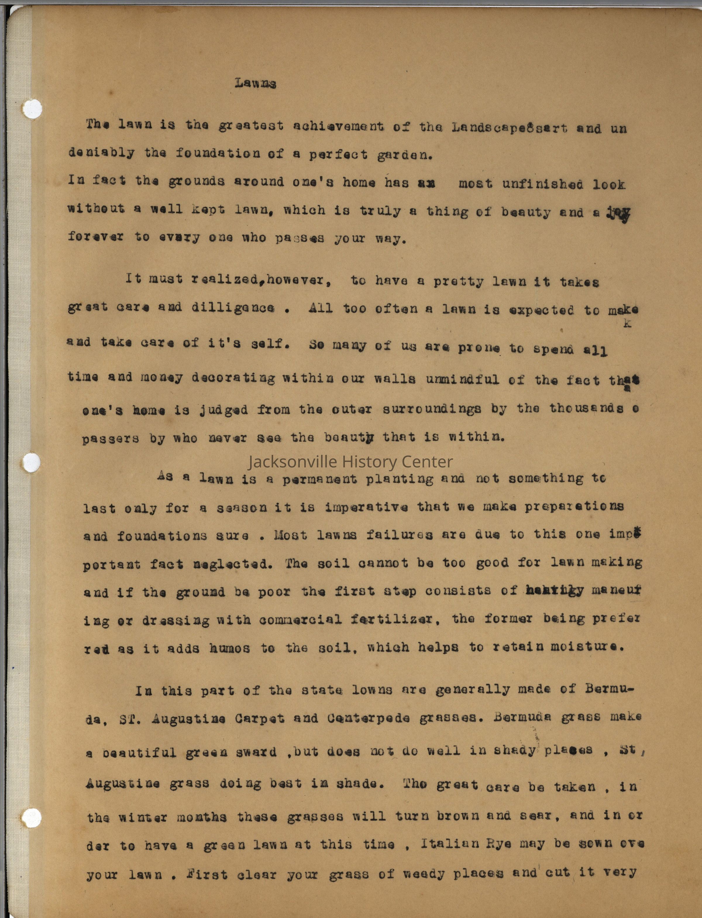 Mimosa Circle, Garden Club of Jacksonville, Florida.Notes