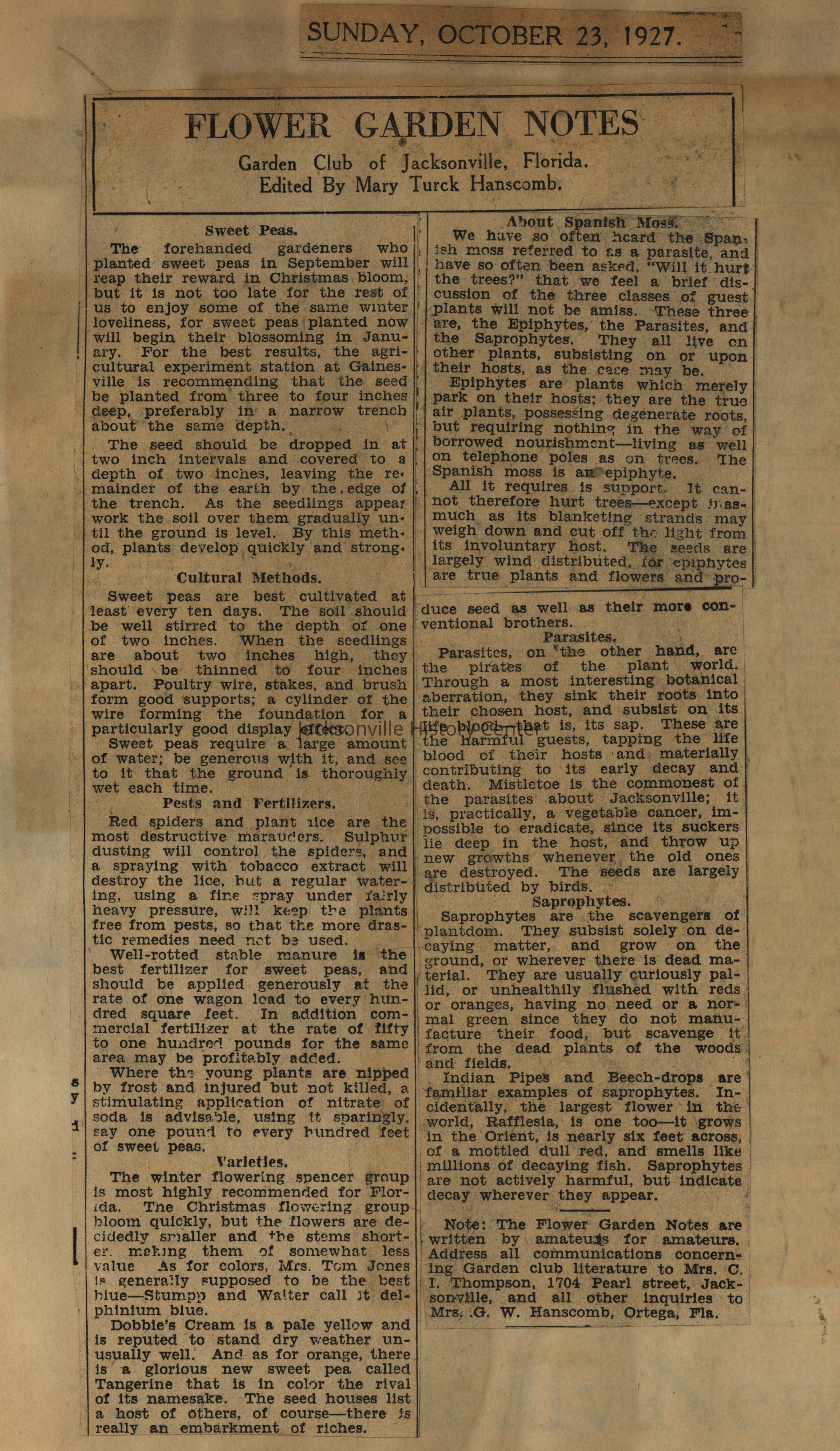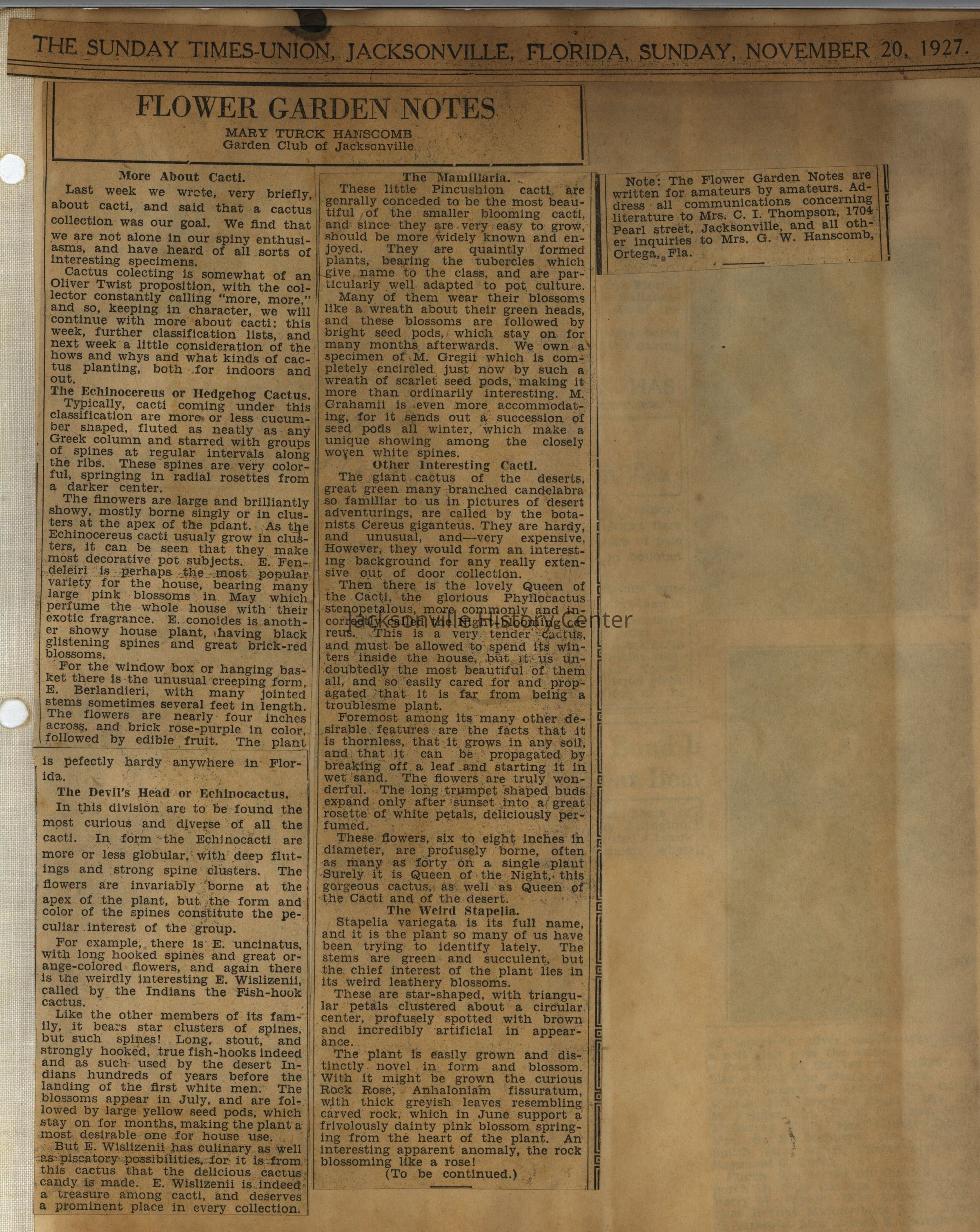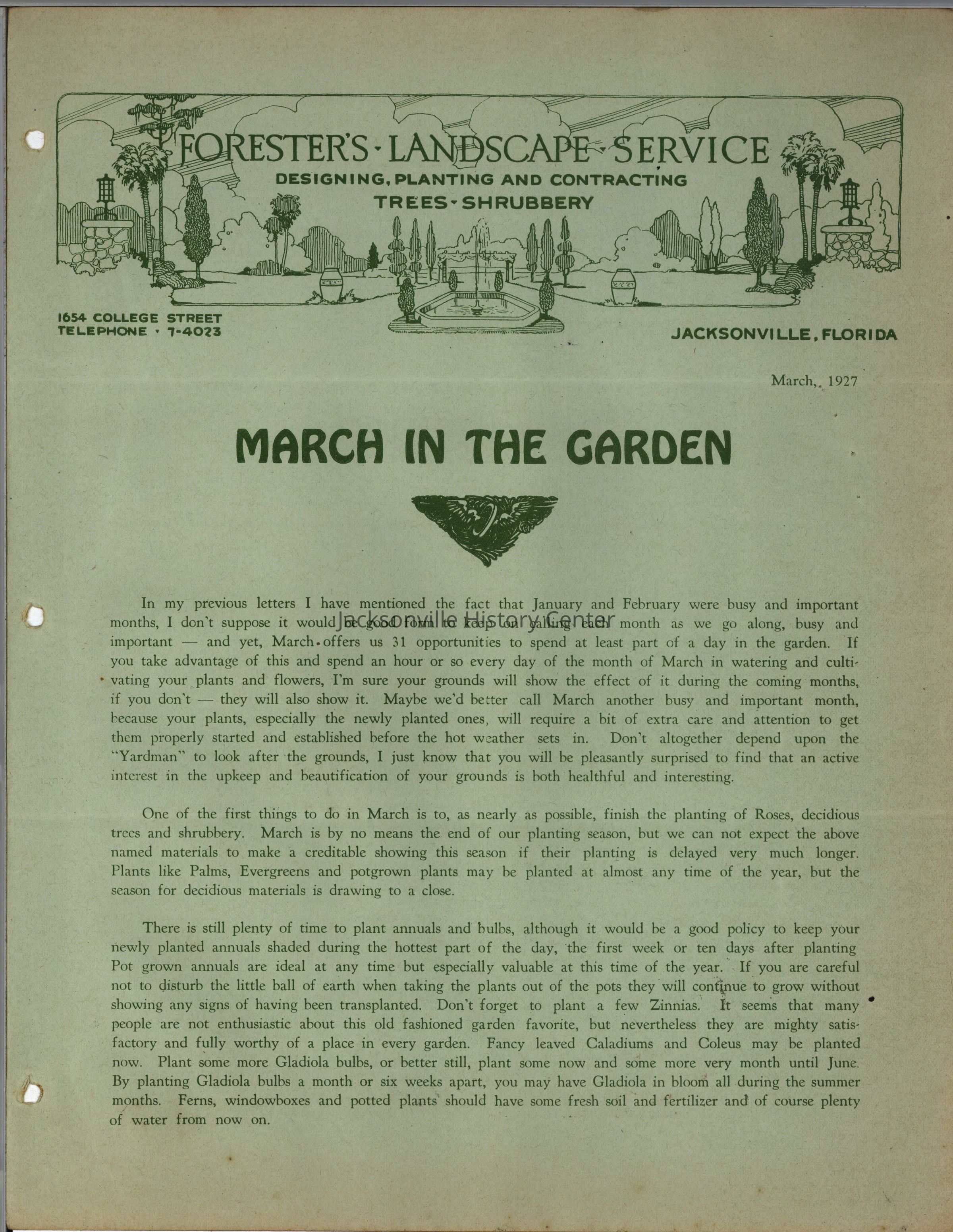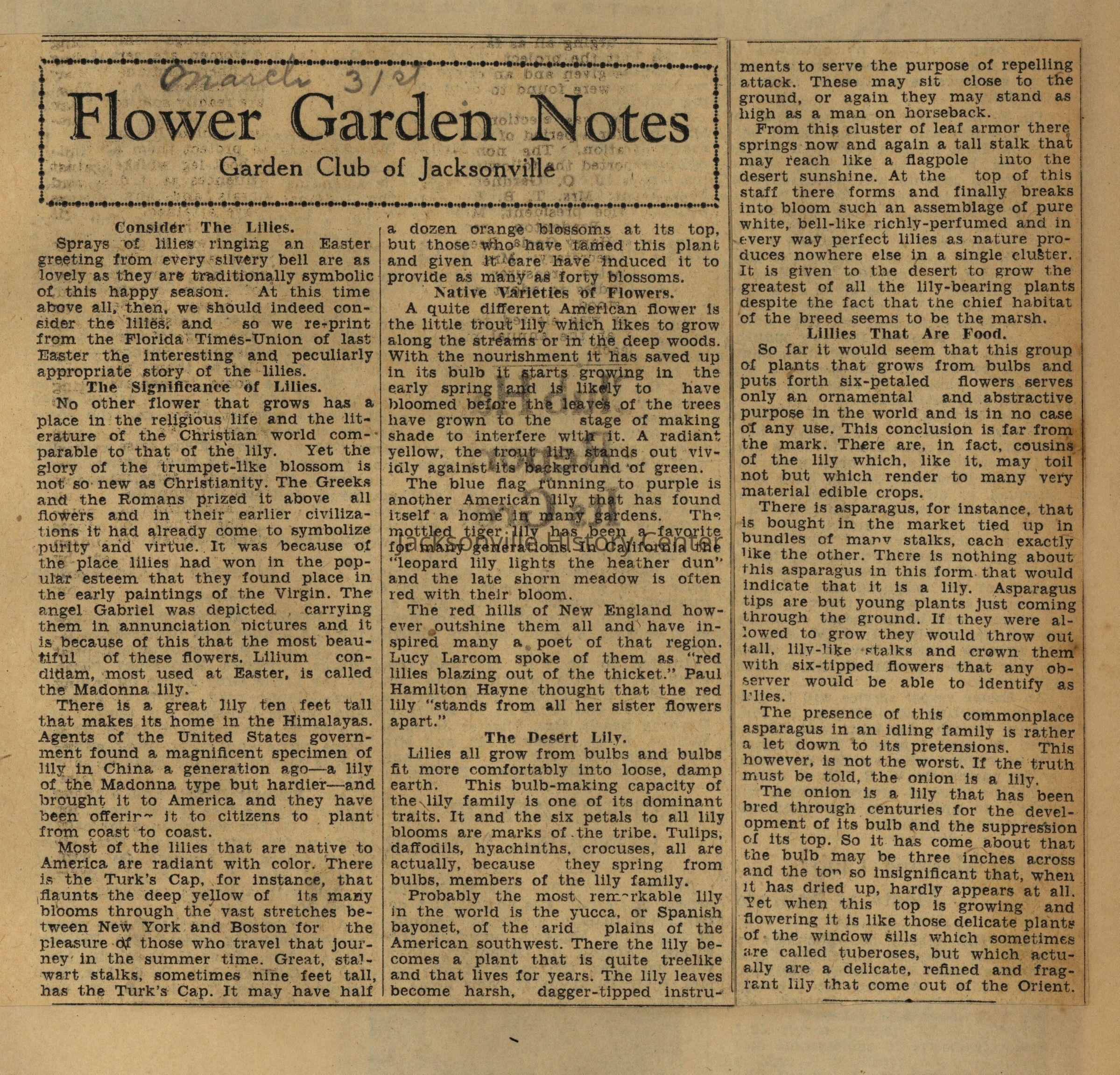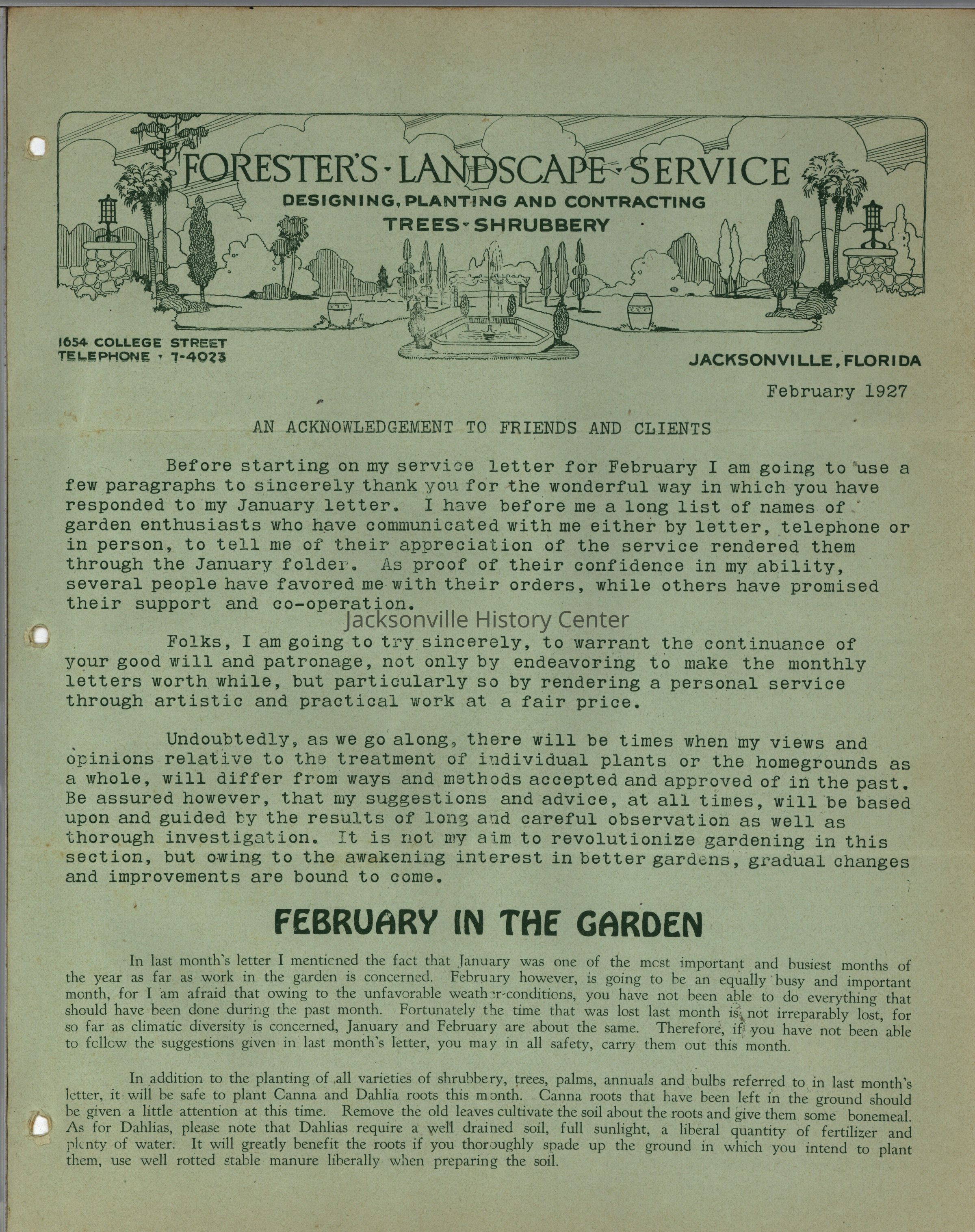 Mimosa Circle, Garden Club of Jacksonville, Florida.Notes