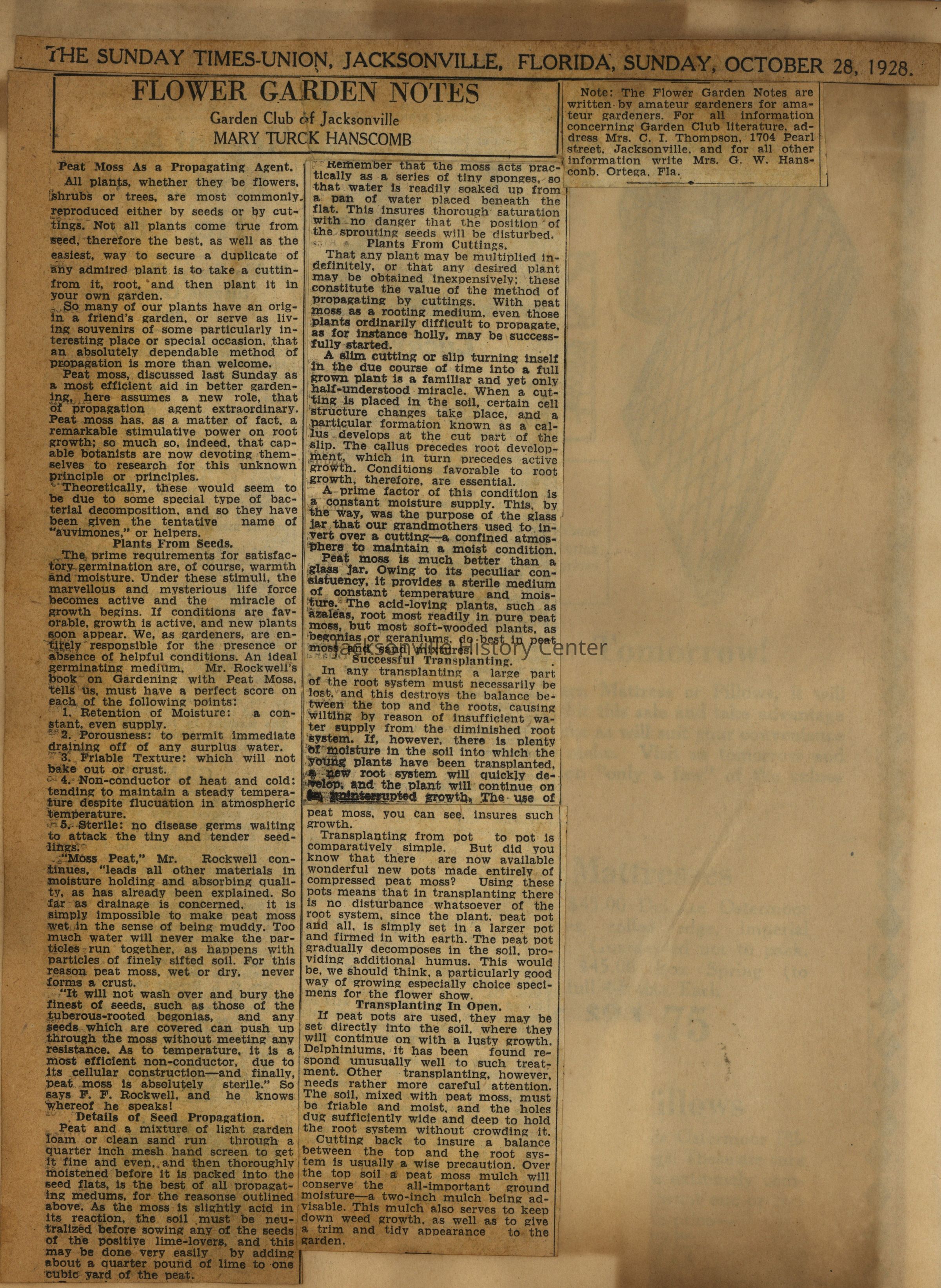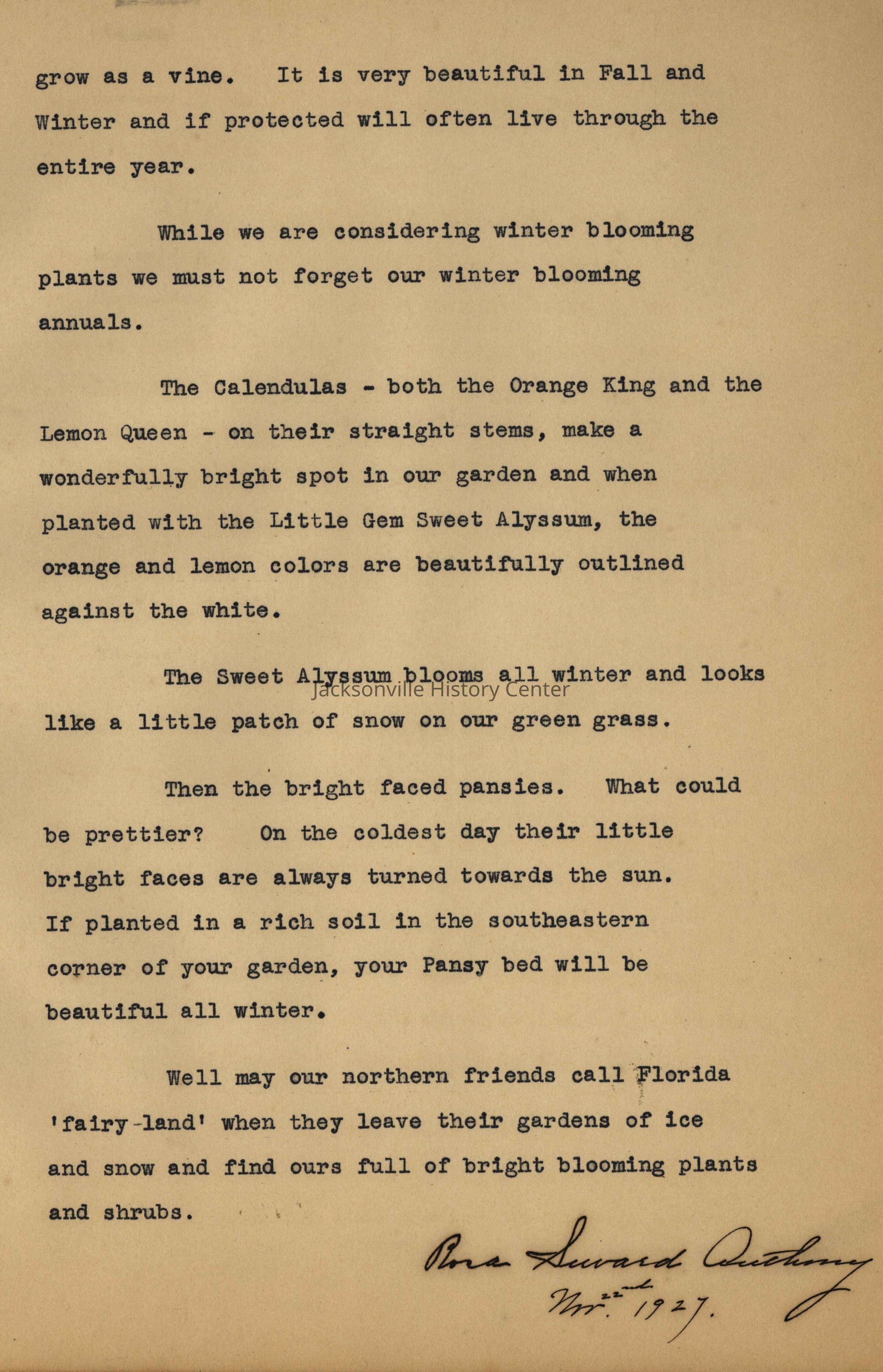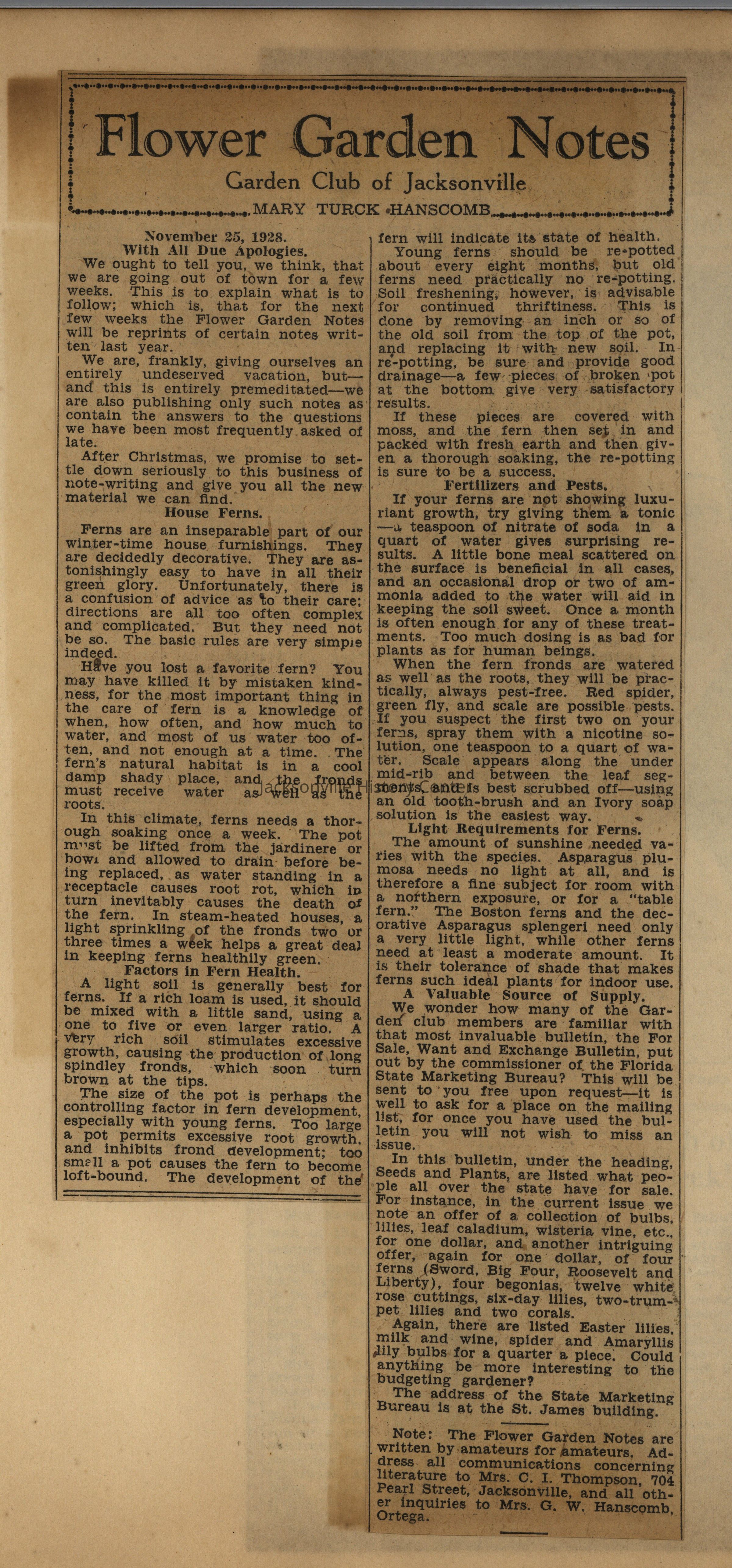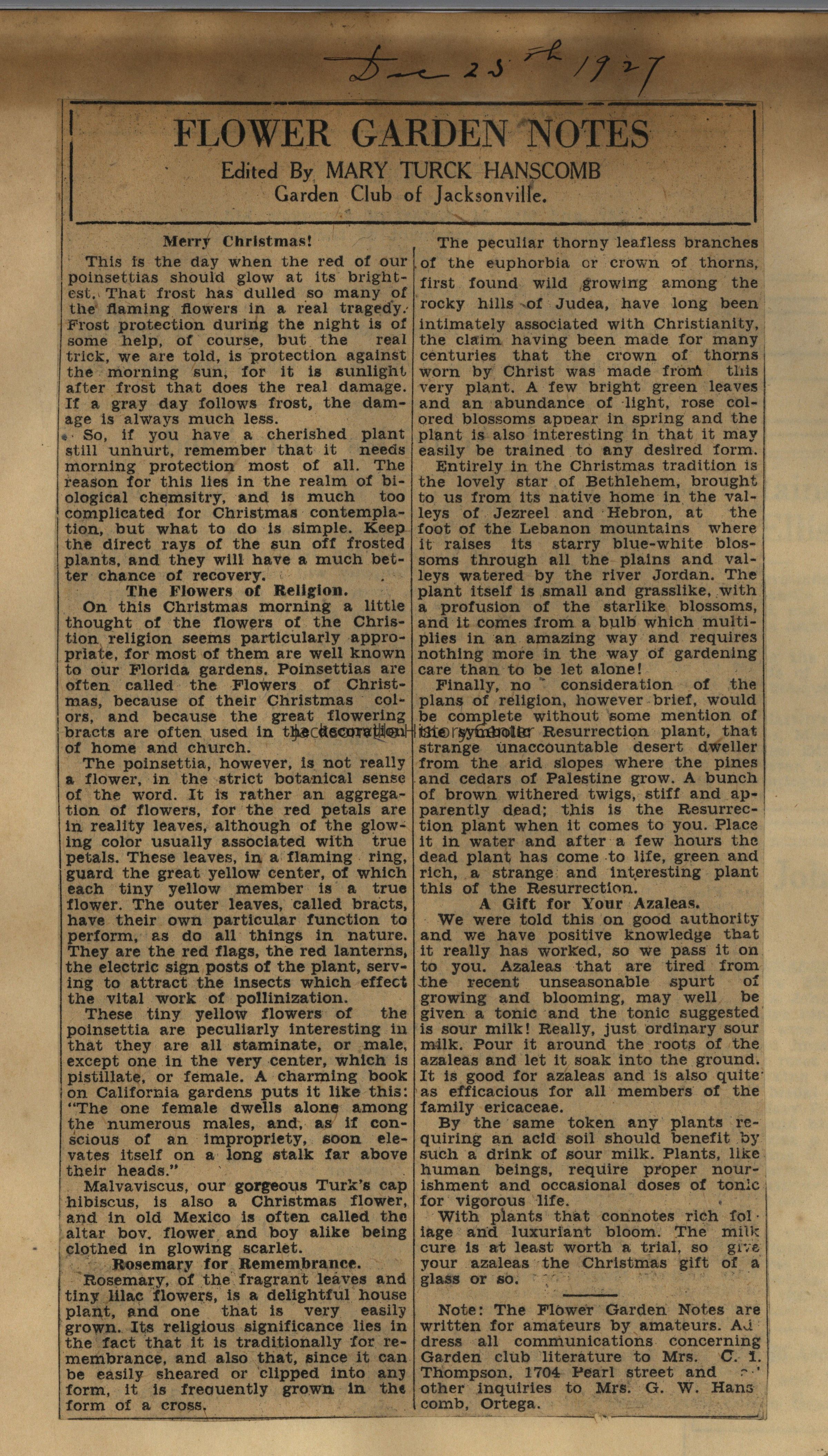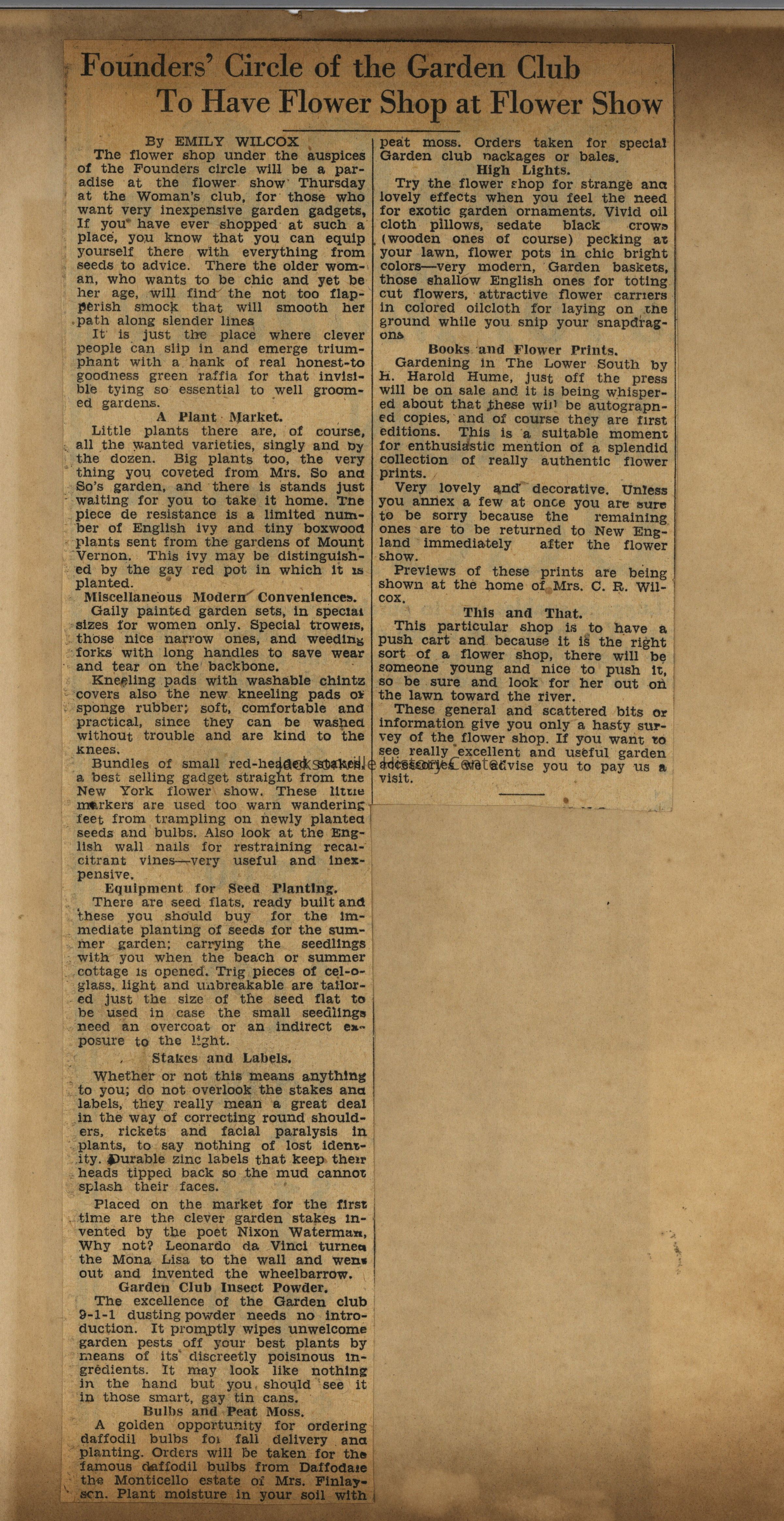 Mimosa Circle, Garden Club of Jacksonville, Florida.Notes