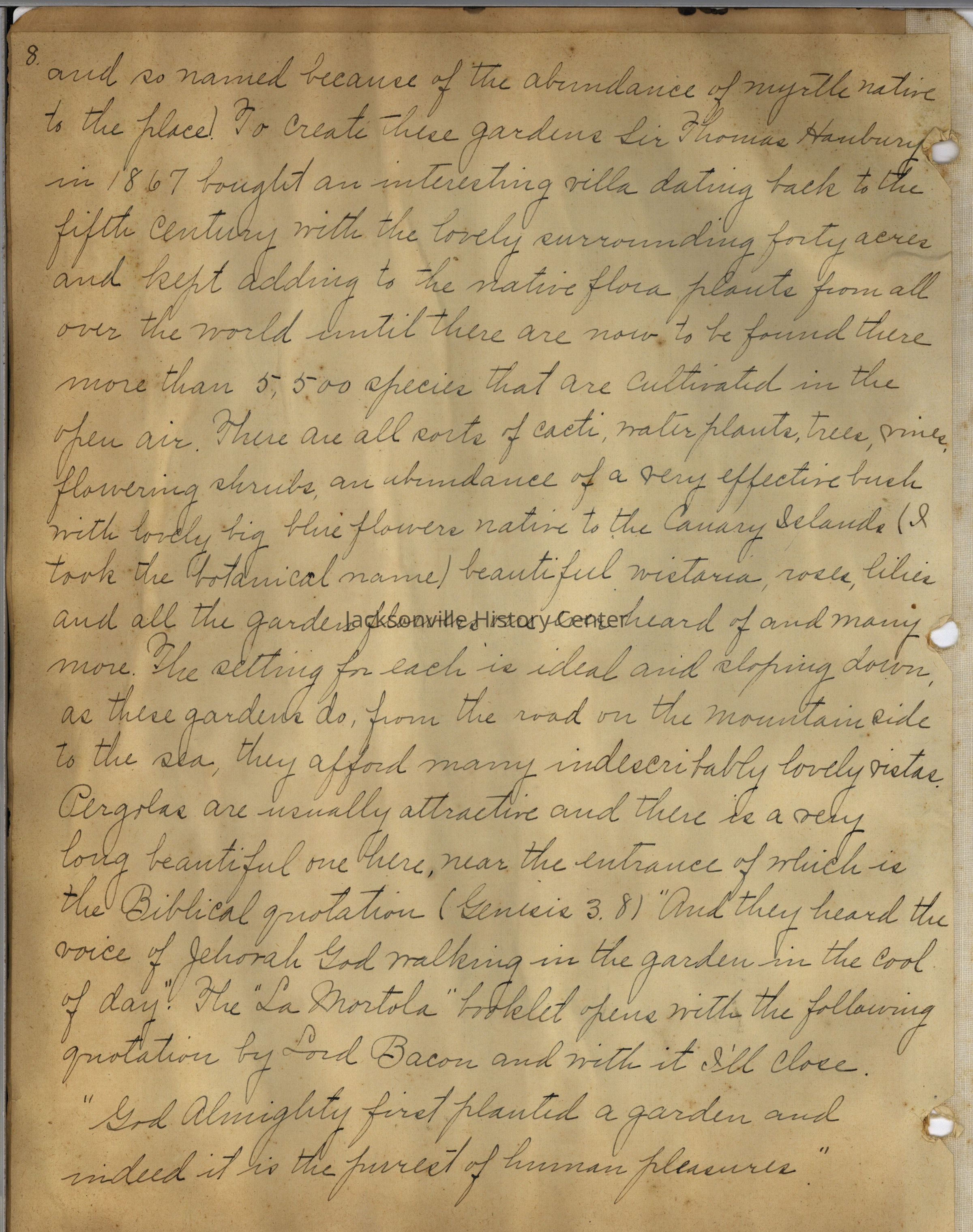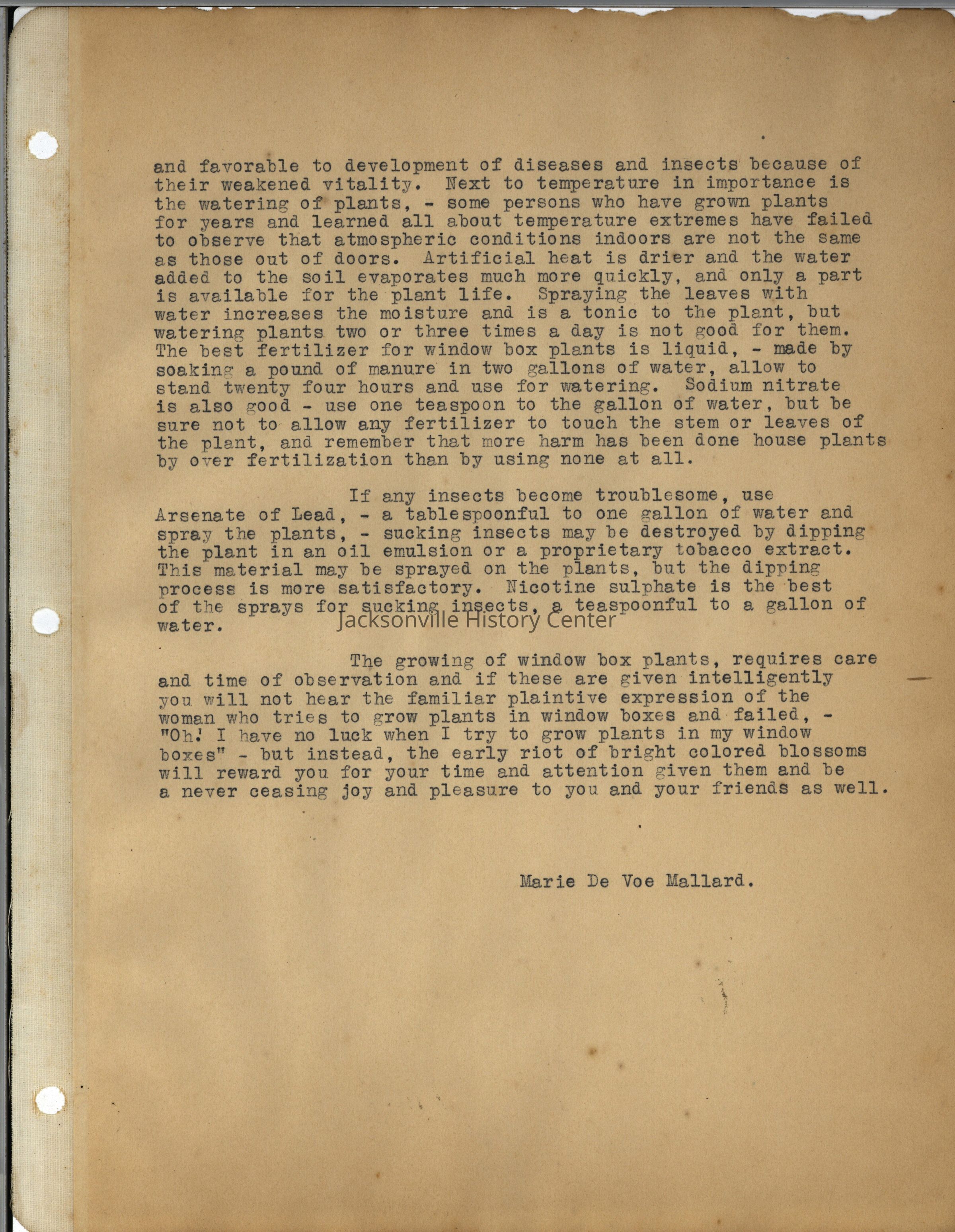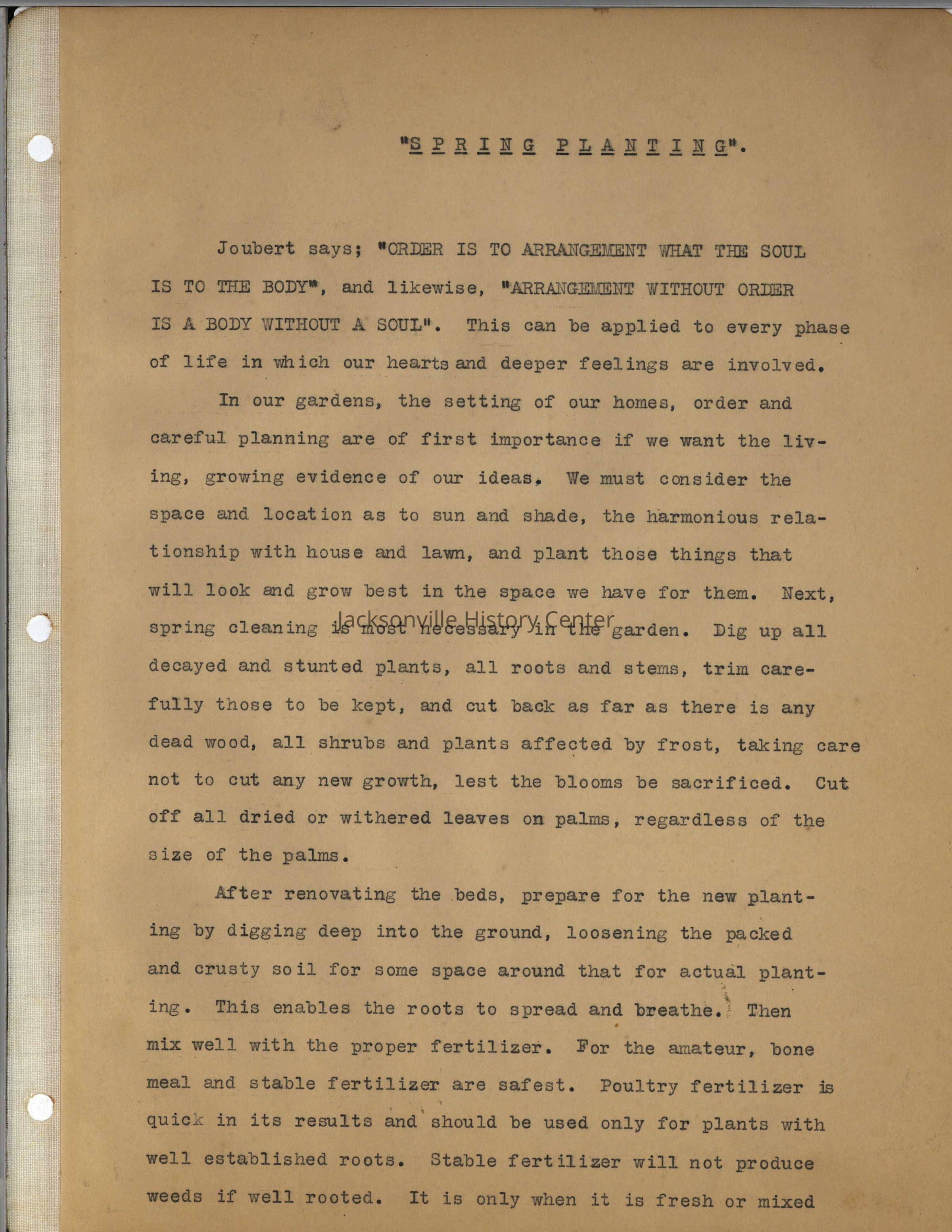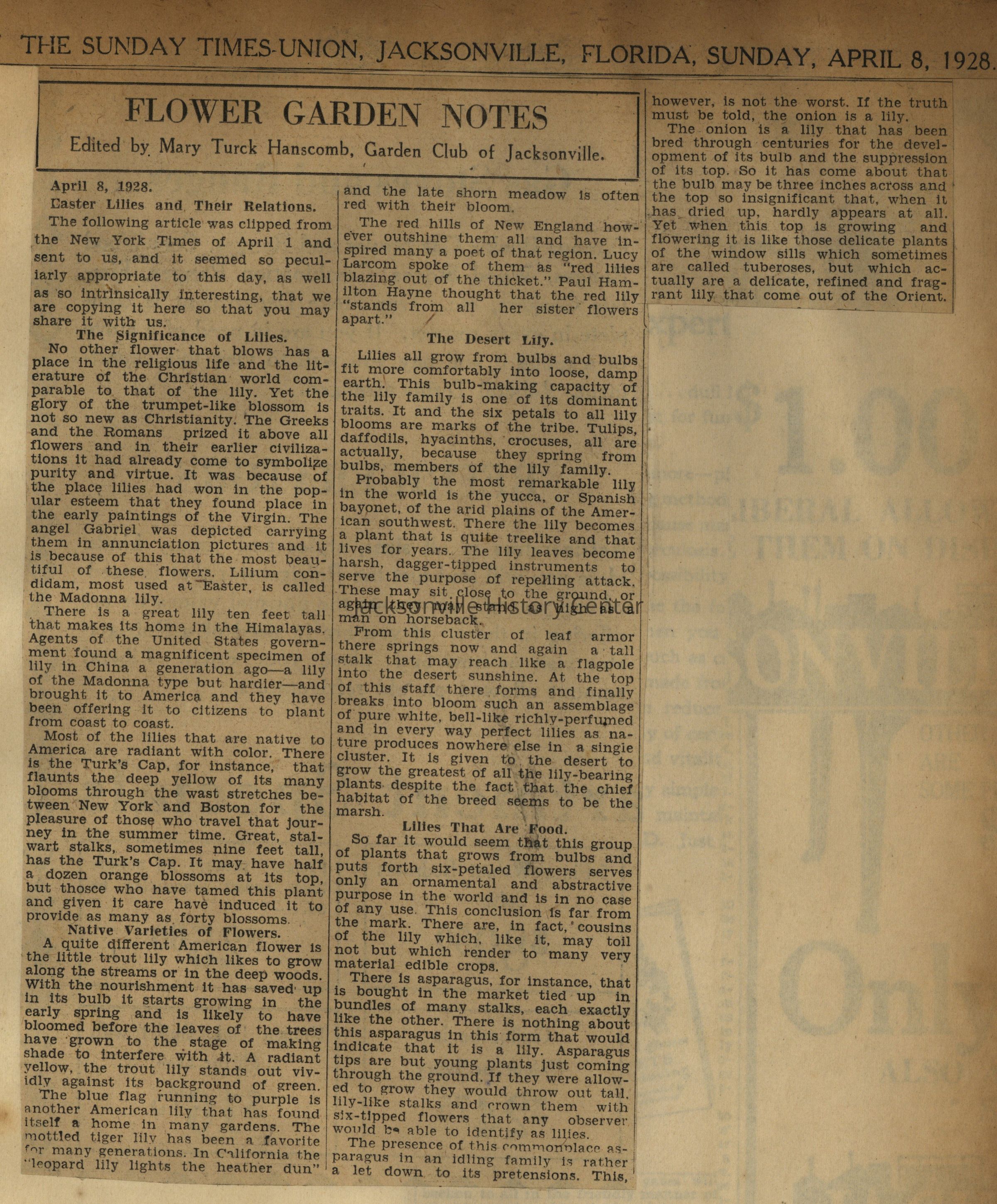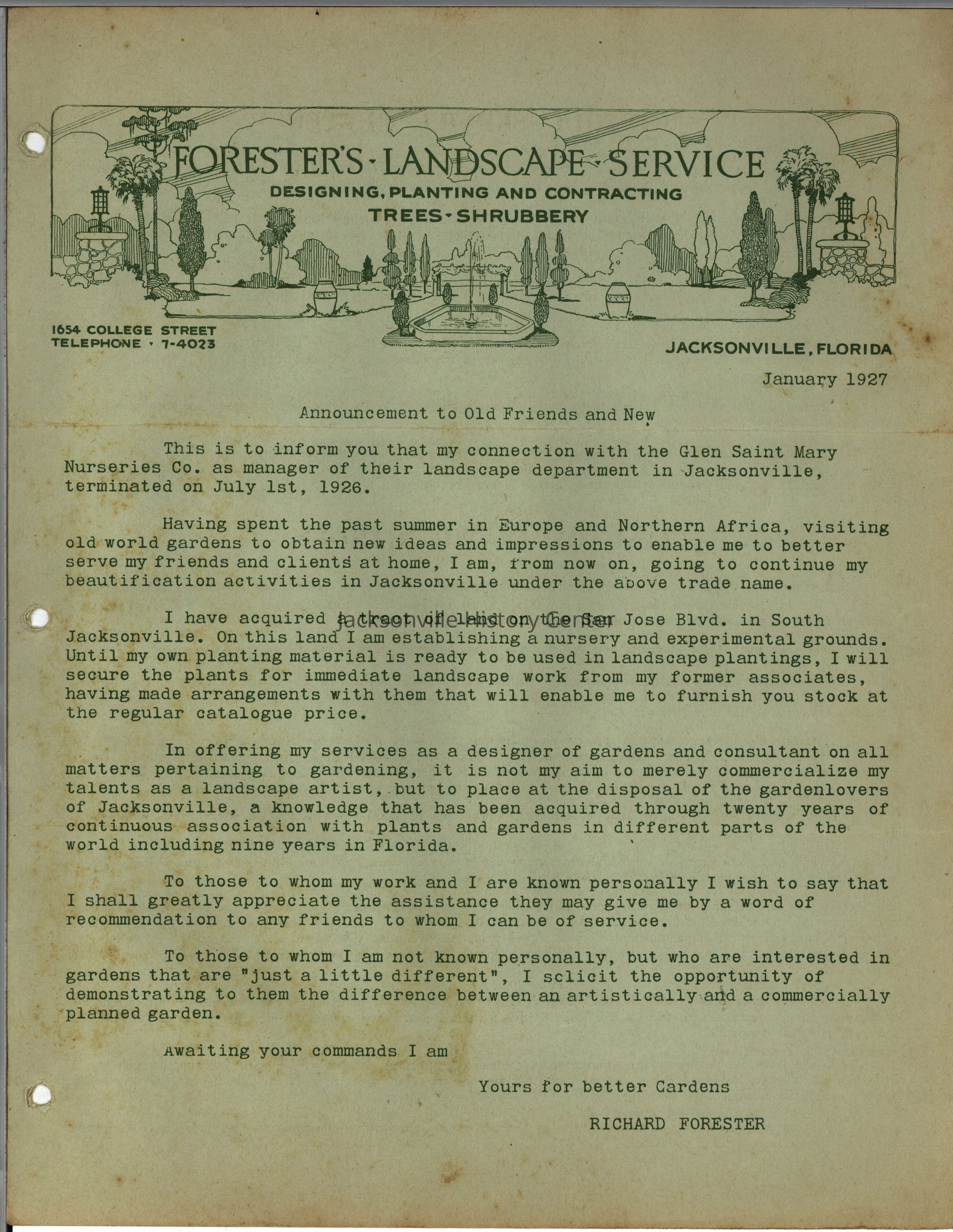 Mimosa Circle, Garden Club of Jacksonville, Florida.Notes