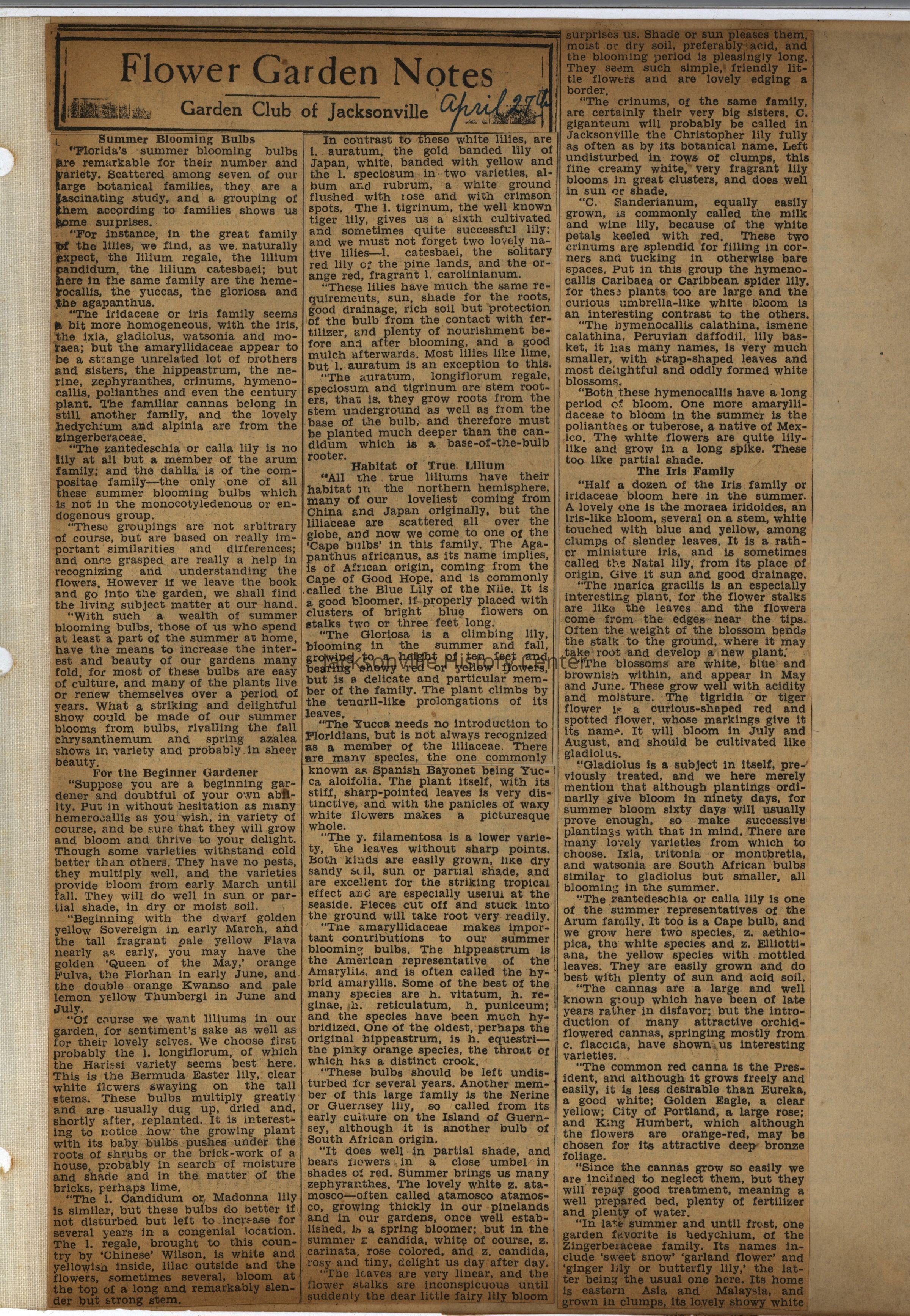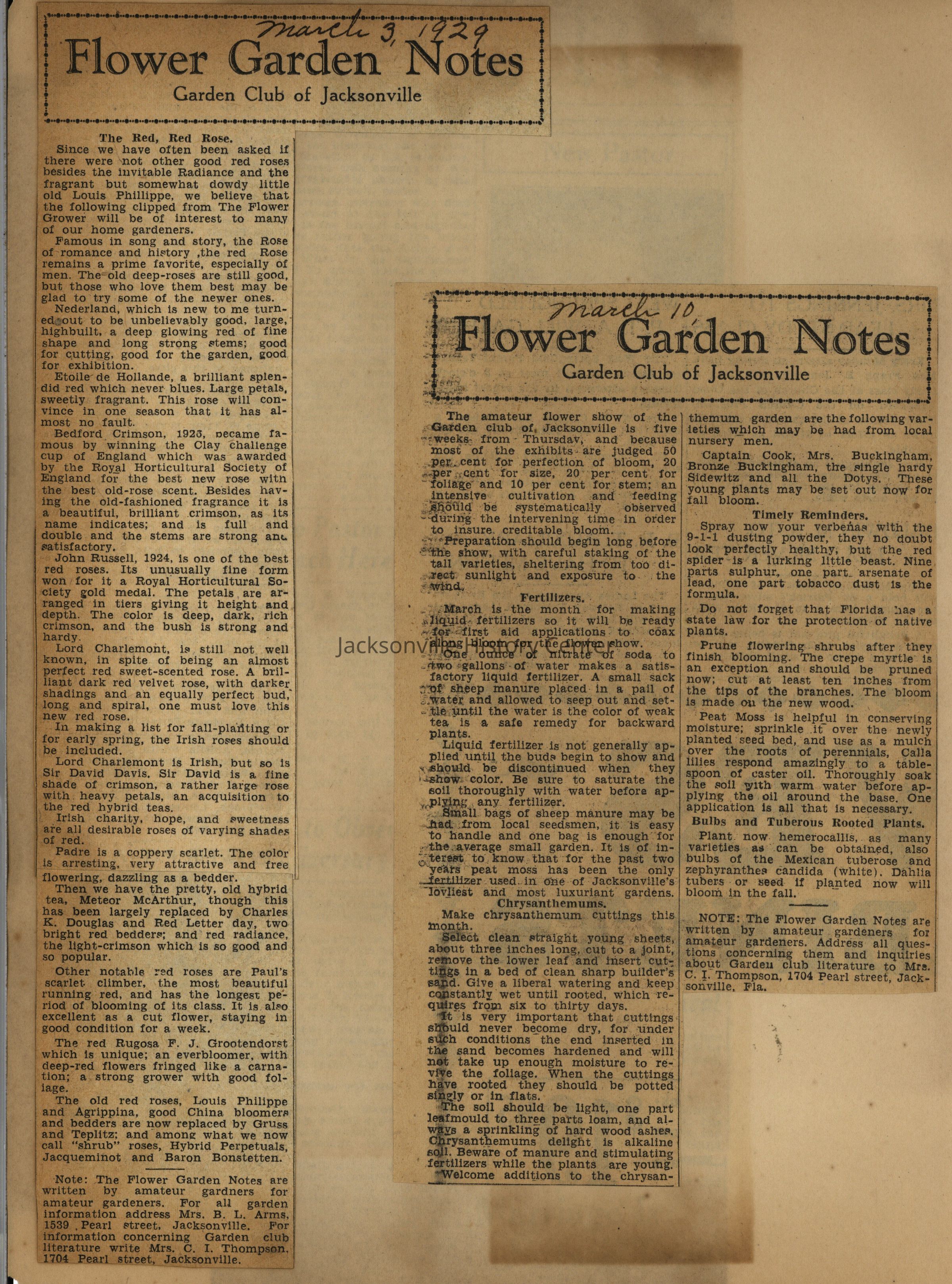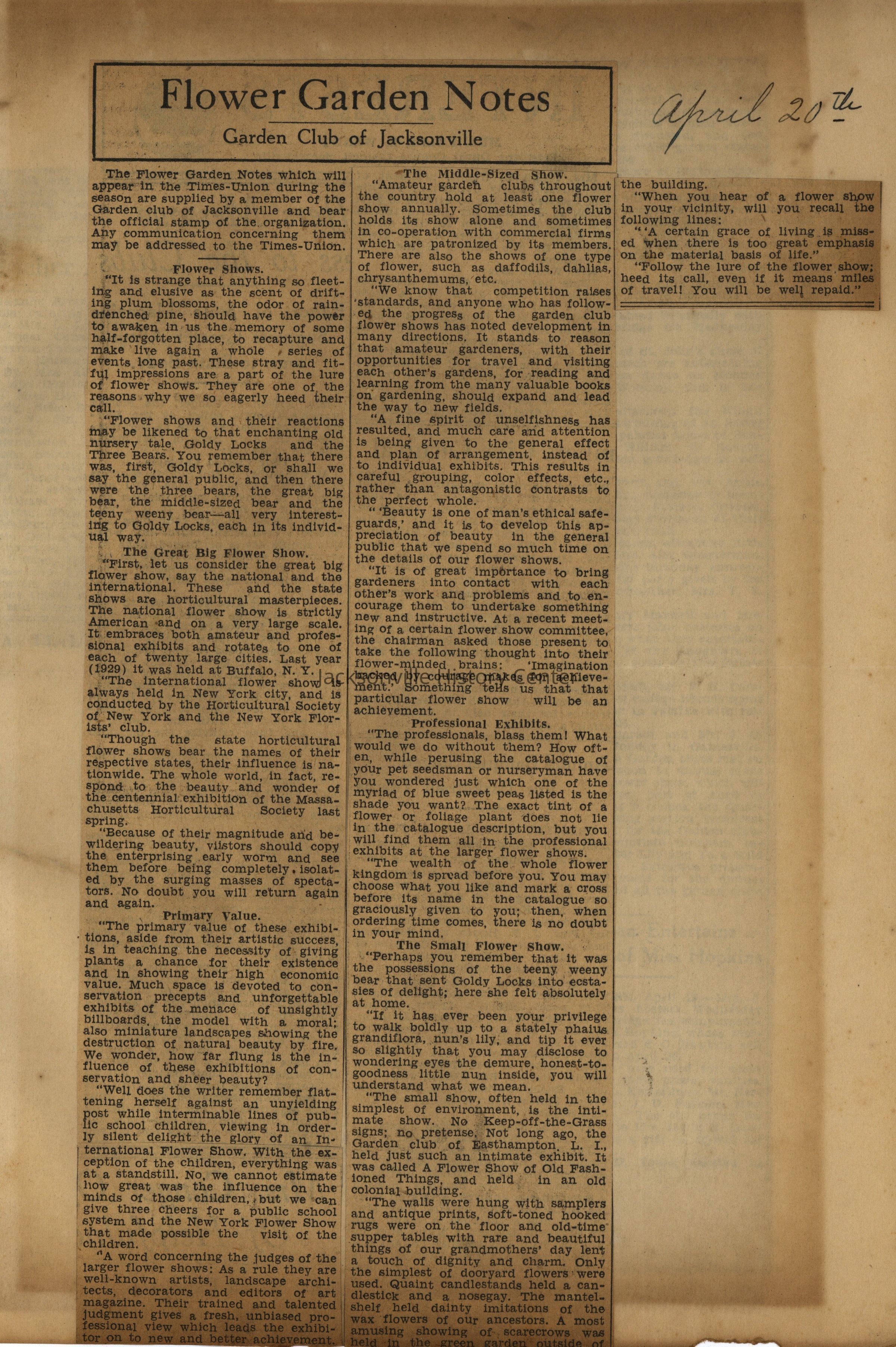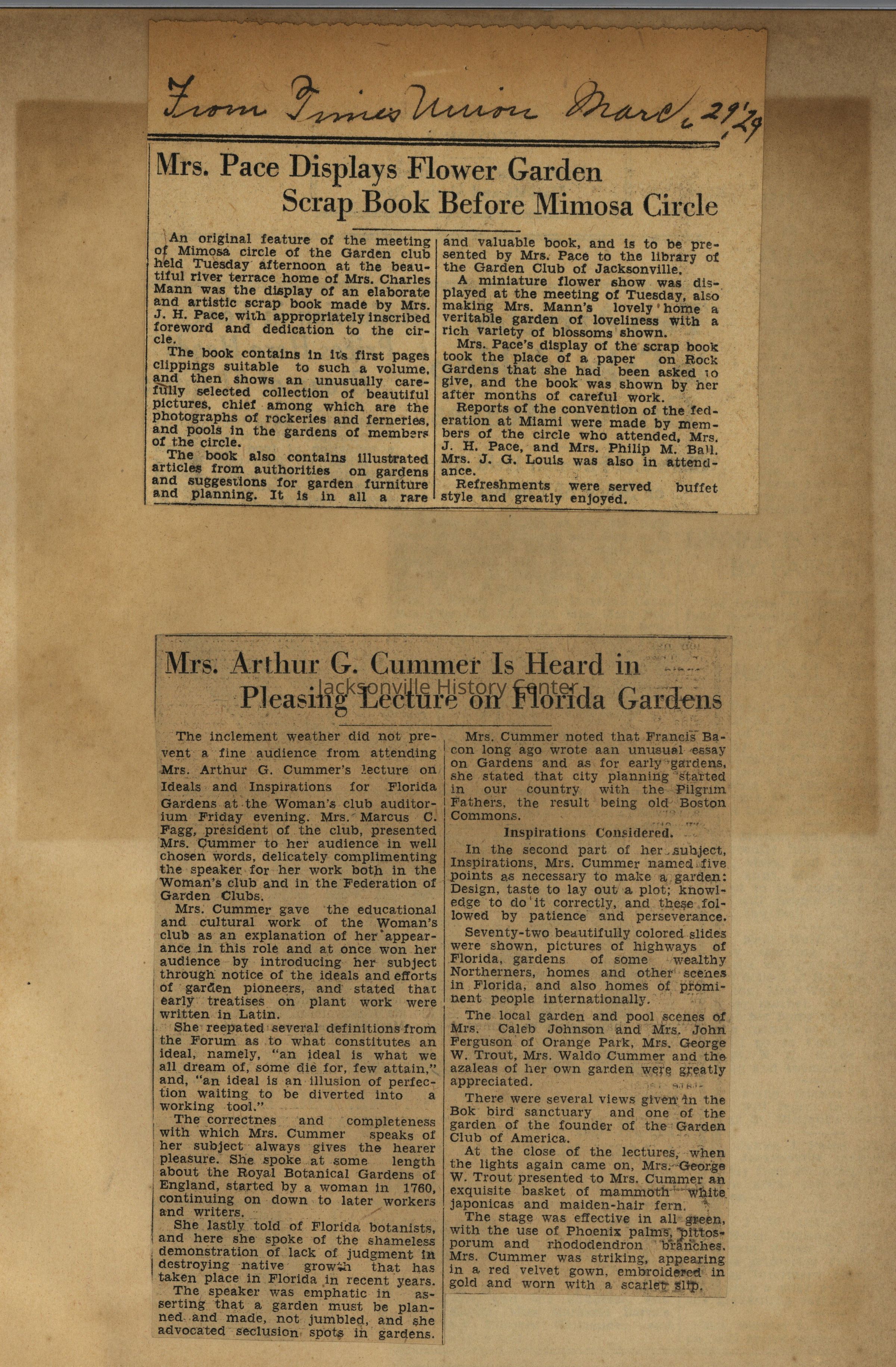 Scrapbook for the Mimosa Circle of the Garden Club of Jacksonville from 1926-1930.Date(s) of Creation