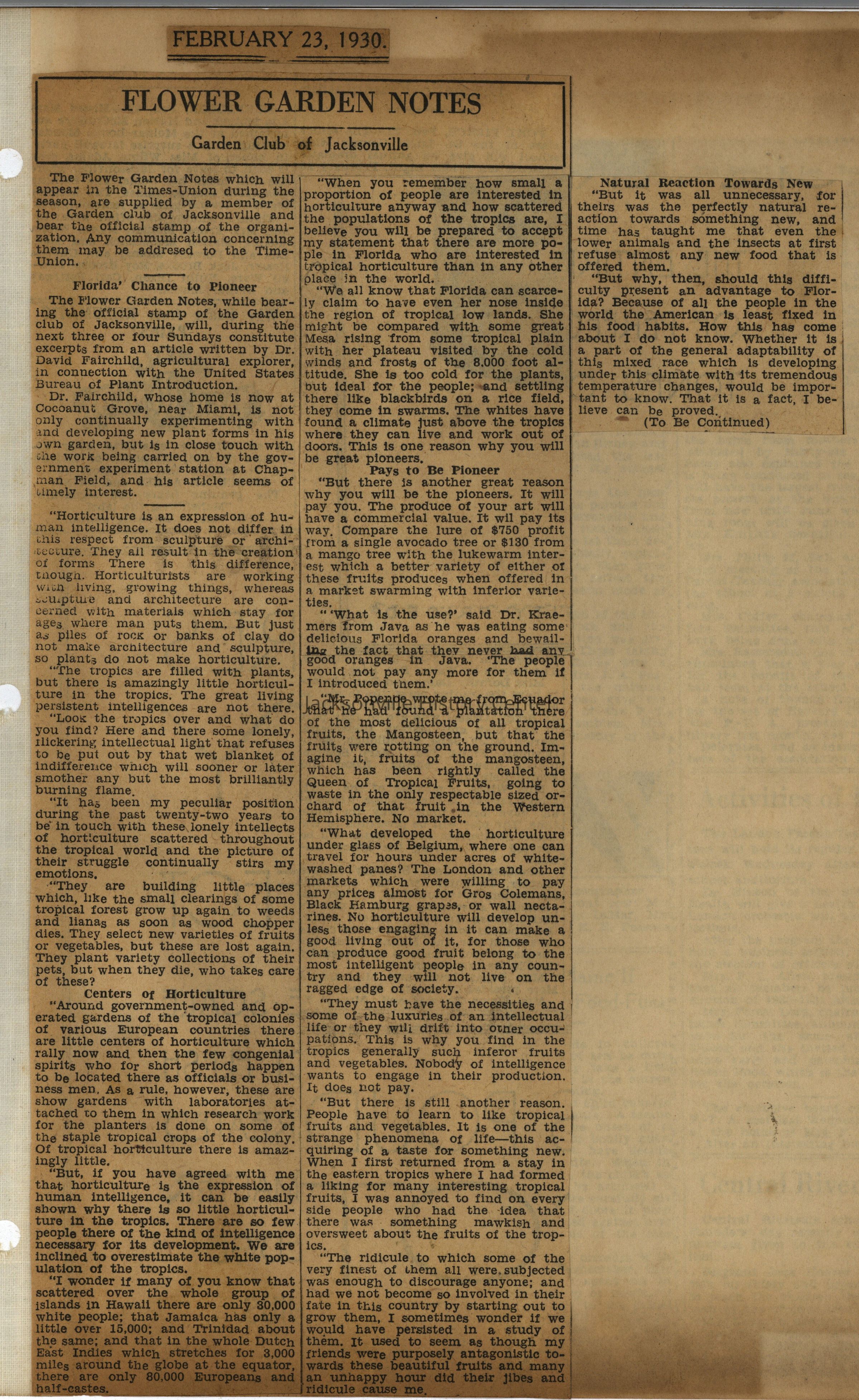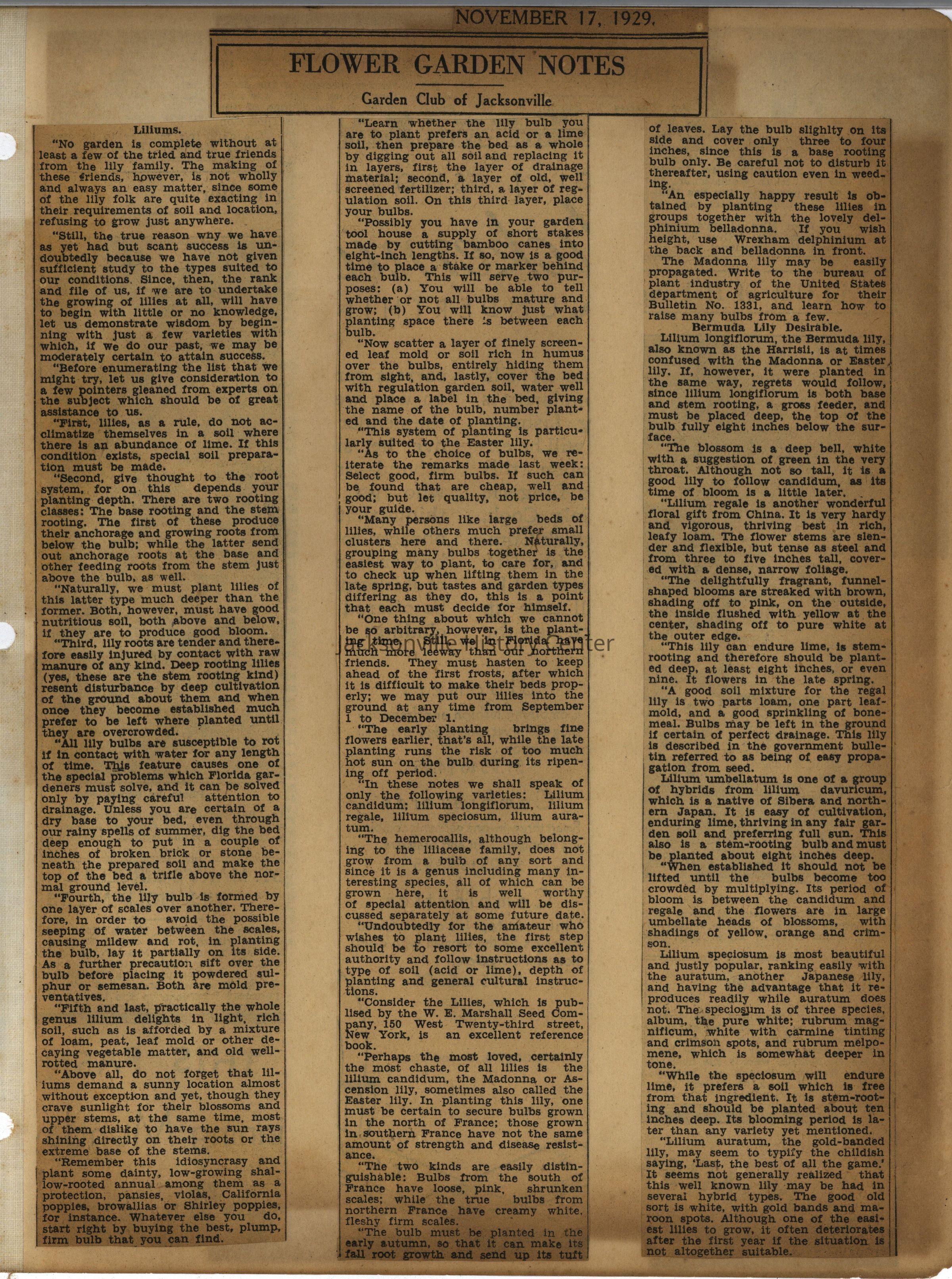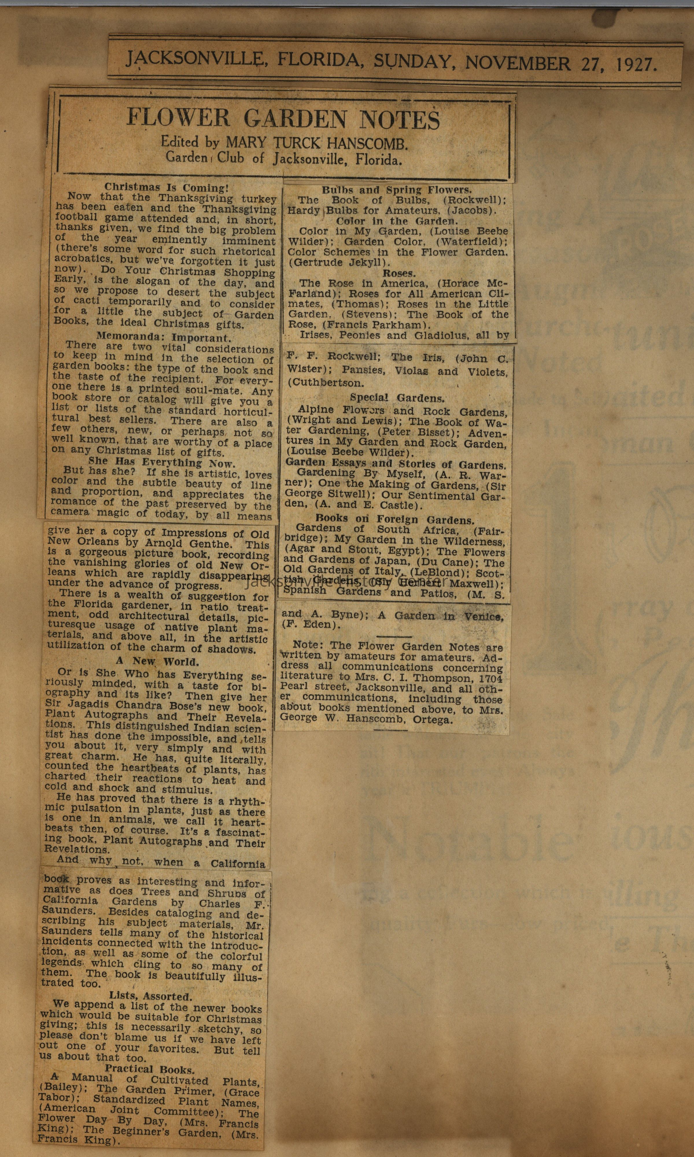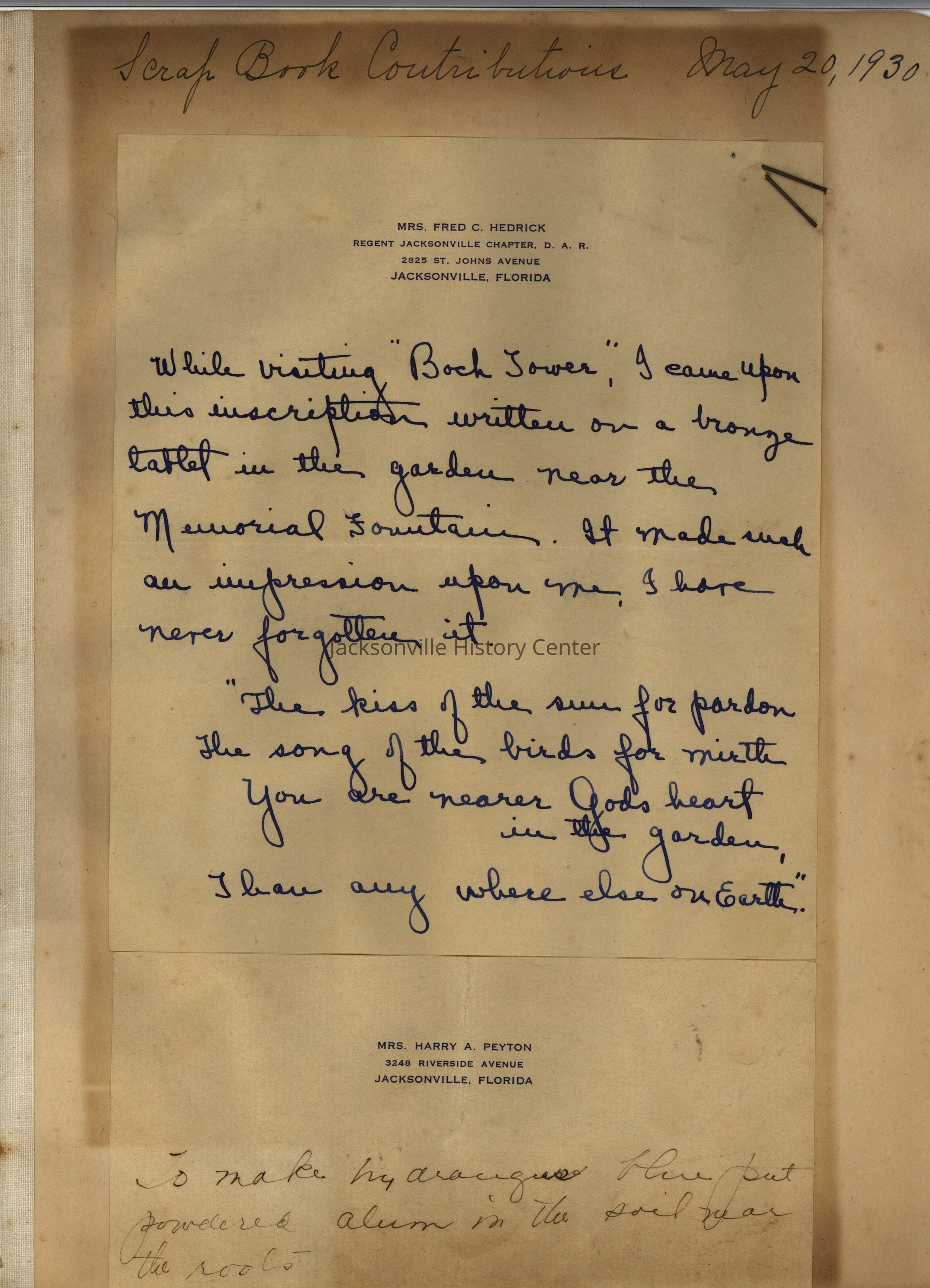 Scrapbook for the Mimosa Circle of the Garden Club of Jacksonville from 1926-1930.Date(s) of Creation