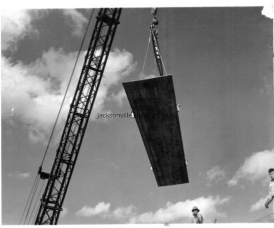 Panel section suspended by crane being set in place