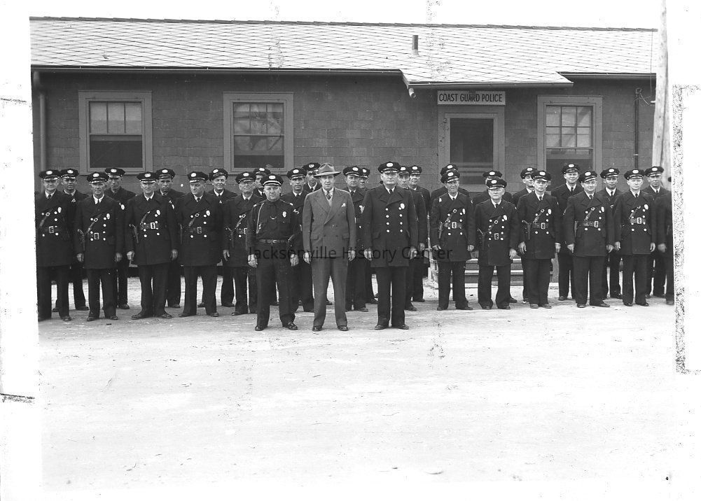 Coast Guard Police squad in front of police office building.