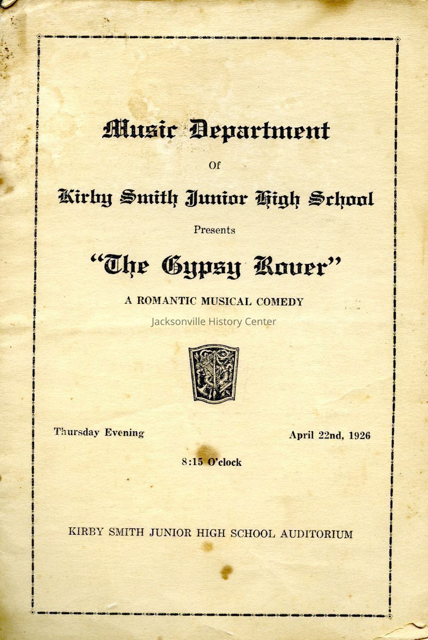 Program, Kirby Smith Junior High School, Jacksonville, Florida, 1920s, Romanctic Musical Comedy, Jacksonville Area Music Museum Items, 1926Scope and Content