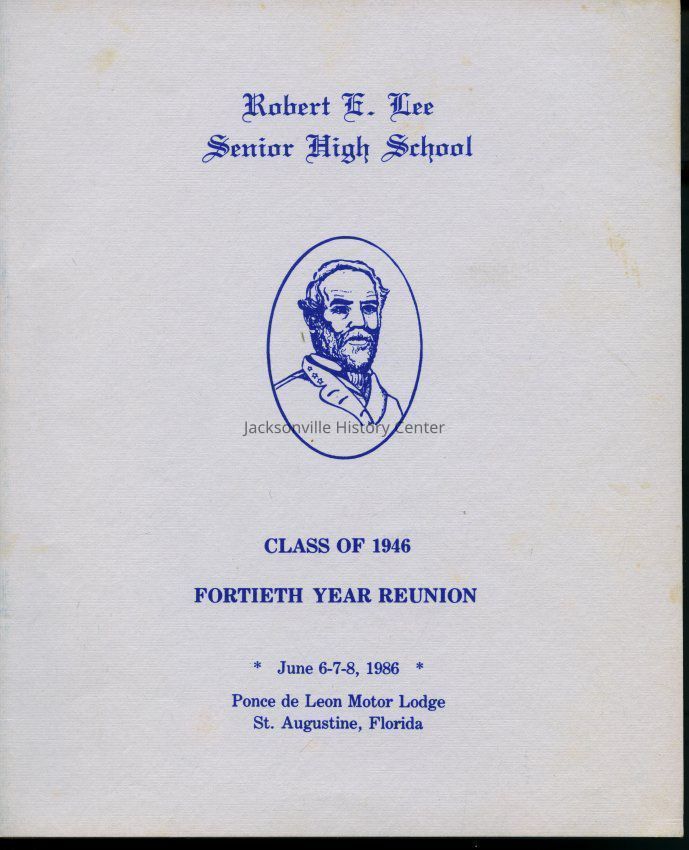 One (1) brochure from the 40th Robert E. Lee High School reunion in St. Augustine, Florida in 1986.Collection