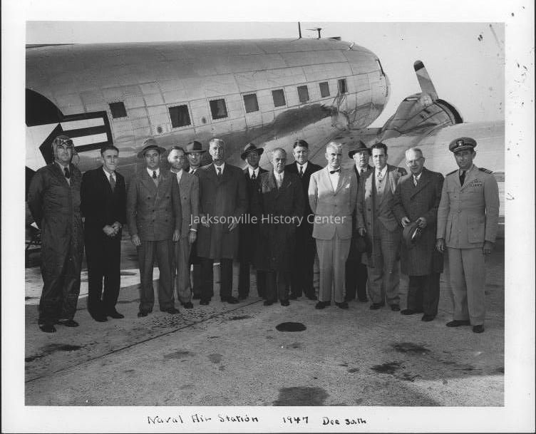 Naval Air Station 1947 Dec. 30th; on back Date:12-2-47; Subject: Captain Gentner and Commander Wingard with guestsCollection