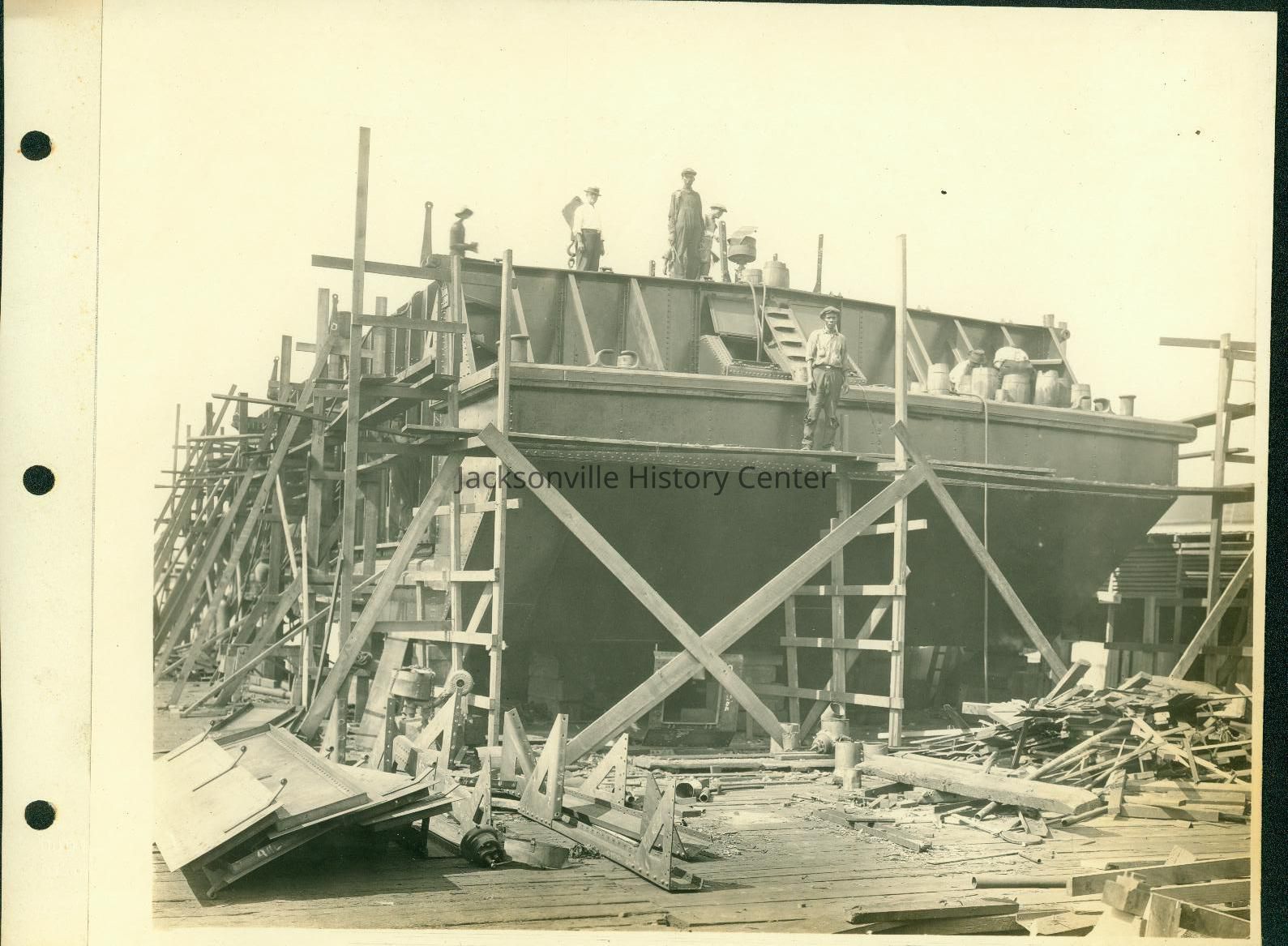 Side Door Garage Dump Scow in course of construction for City of Miami Beach being constructed at Merrill-Stevens Dry Dock & Repair Company in Jacksonville, Fla.