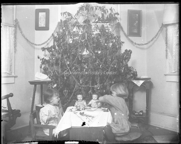 Christmas trees, Children, houses, Scott children, Cox, Leah Mary, Christmas, Woodmere, Church Street, Durkee, JosephDescription