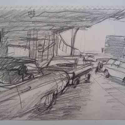 6 inch Acrylic Five line study for Clay 11/30/1992