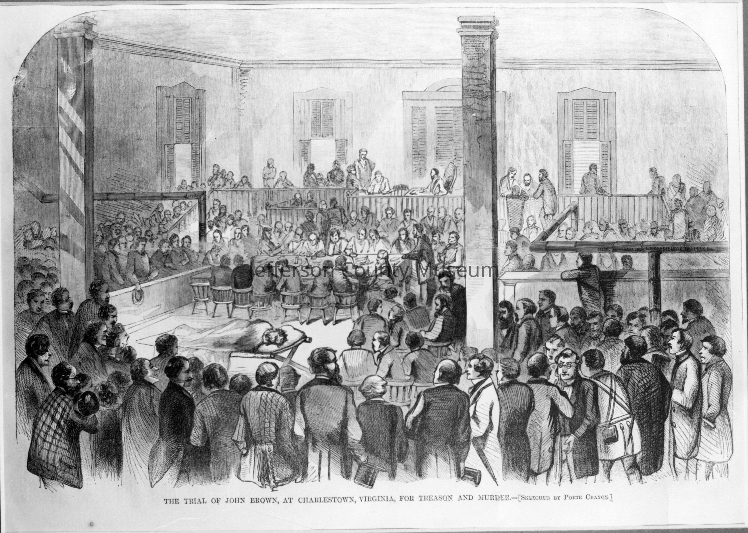 Front reads: "The trial of John Brown, at Charlestown Virginia, for treason and murder -[sketched by Porte Crayon]"Acquisition