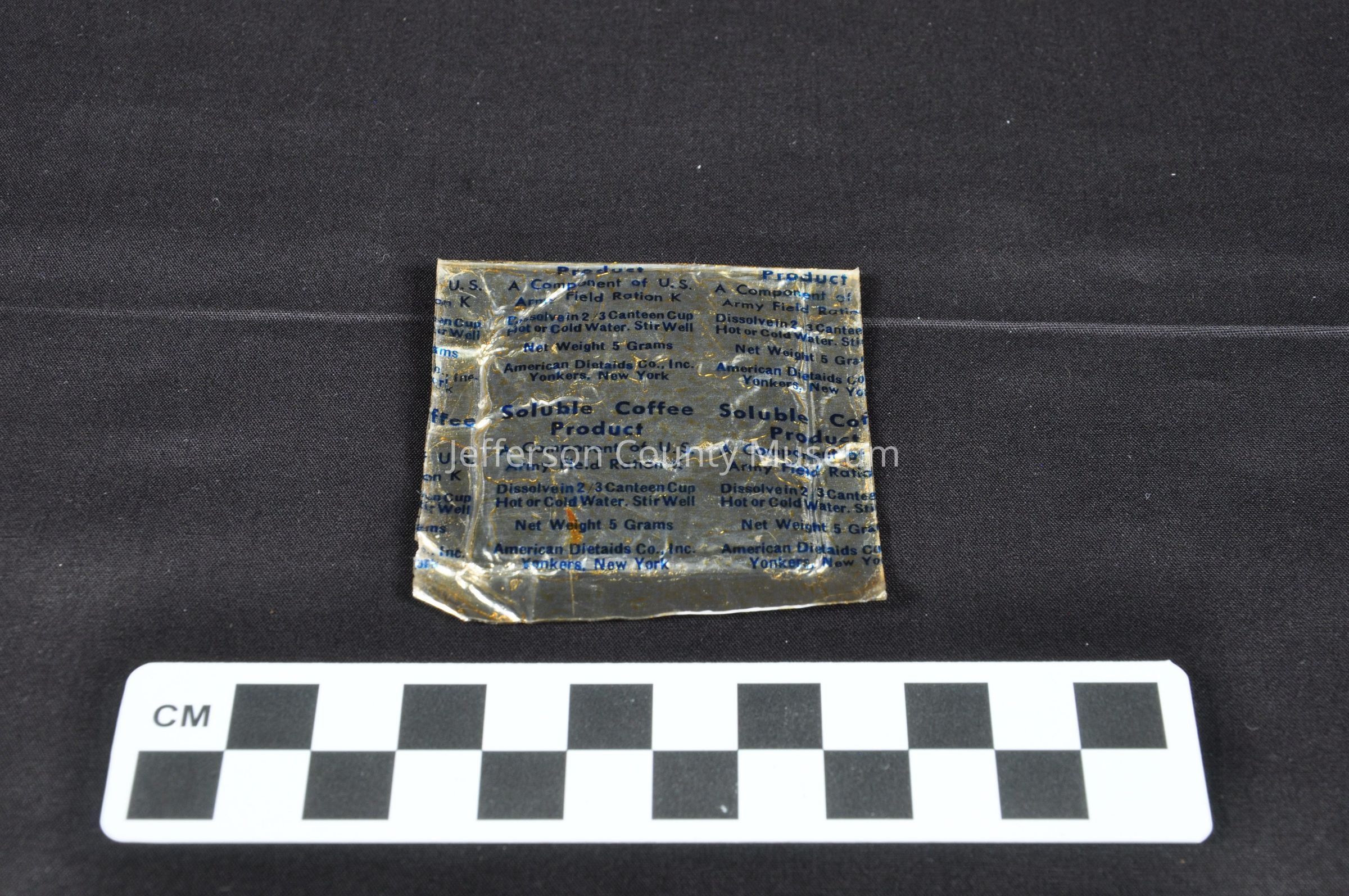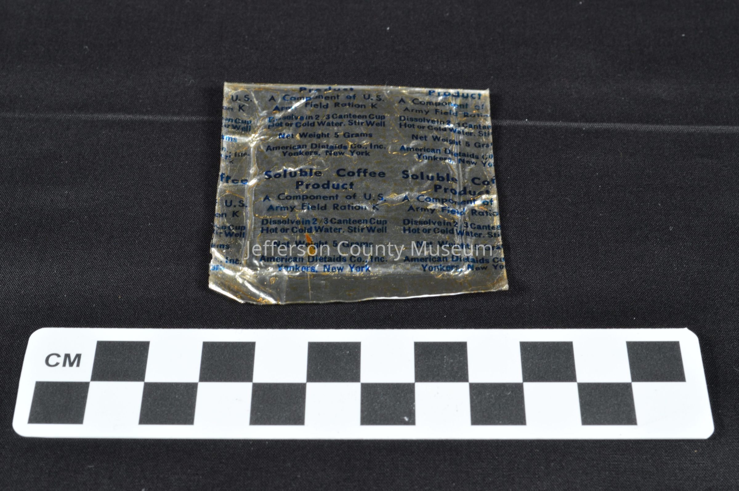 "Soluble Coffee Product" Sealed foil metallic pouch. A component of U.S. Army Field Ration K.Acquisition