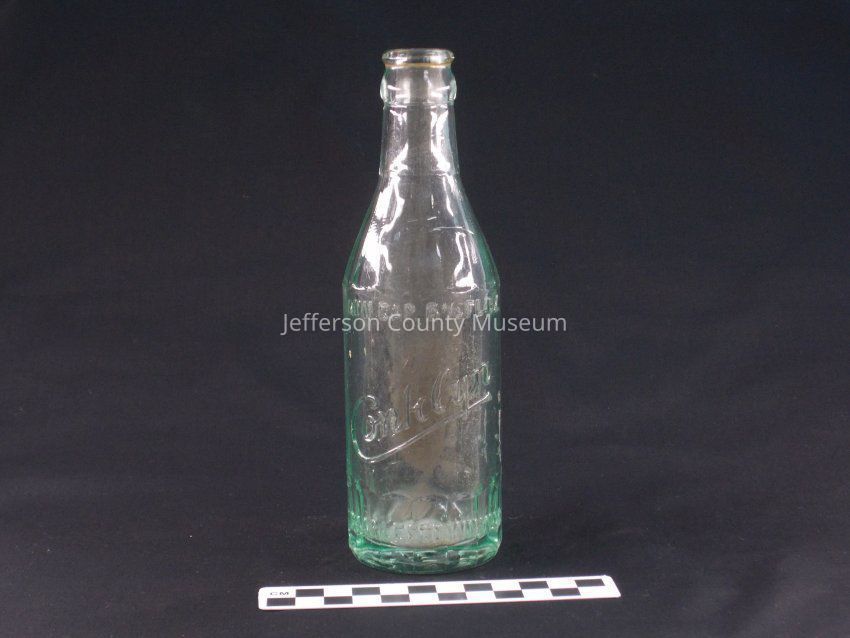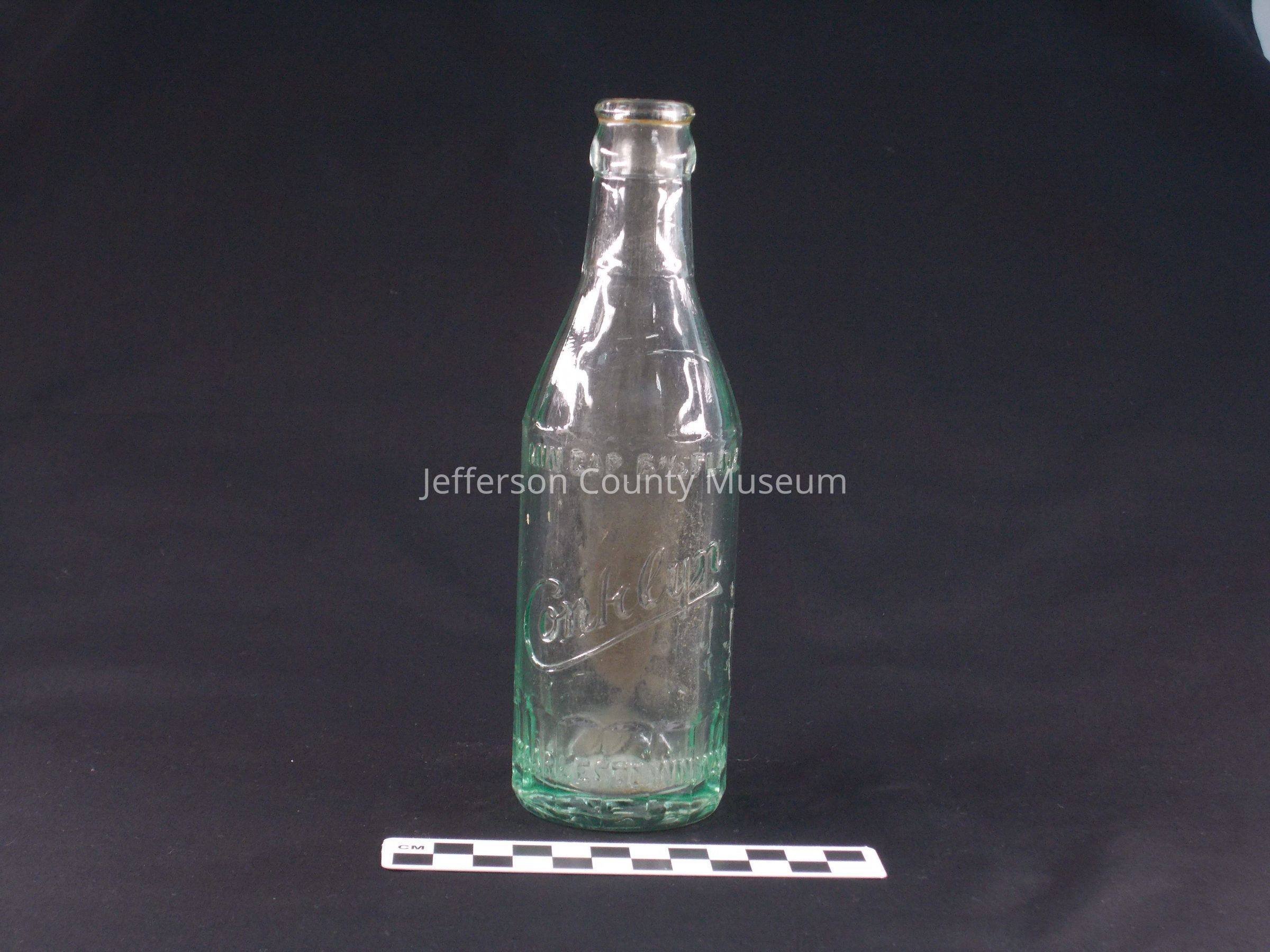 Green glass beverage bottle. Embossed around bottle "MIN. CAP. 6 1/2 FL.OZ. Conklyn
