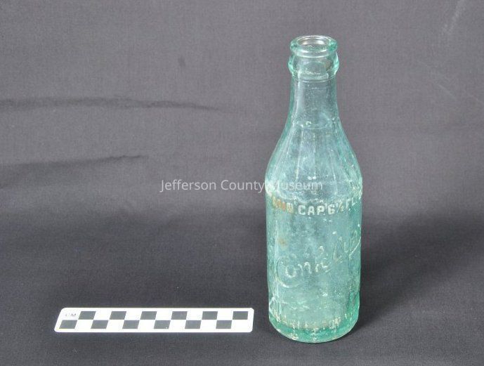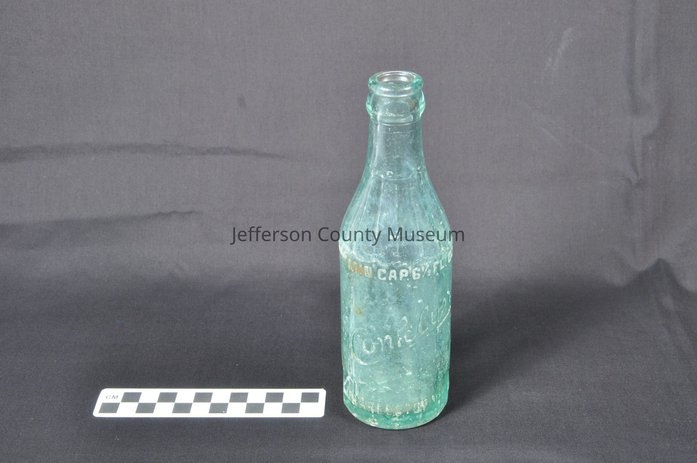 Green glass beverage bottle. Embossed around bottle "MIN. CAP. 6 1/2 FL. OZ. Conklyn