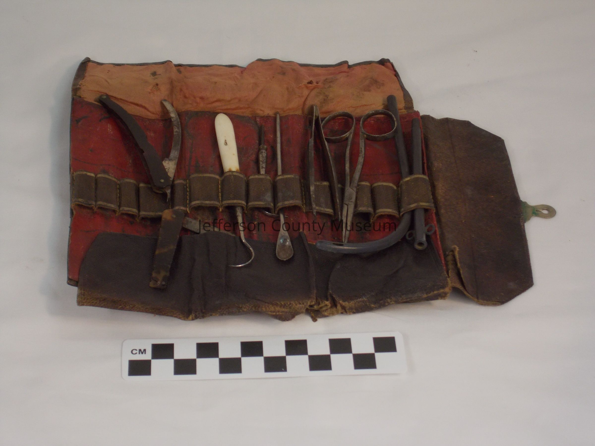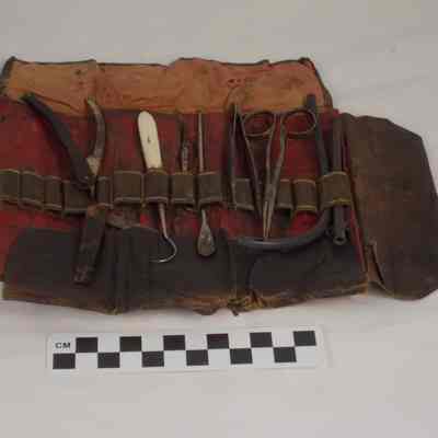 Kit with eight instruments in black, red-lined soft case. Includes cannula, tweezers, hemostat, small scoop, two picks and a small curved folding knife and a small pen knife.Acquisition