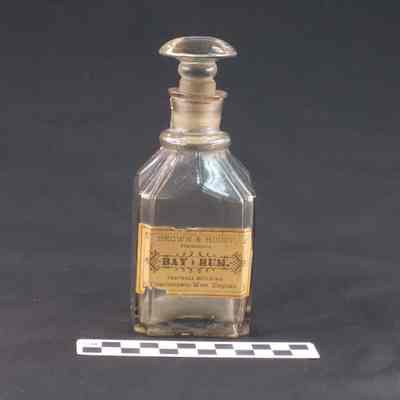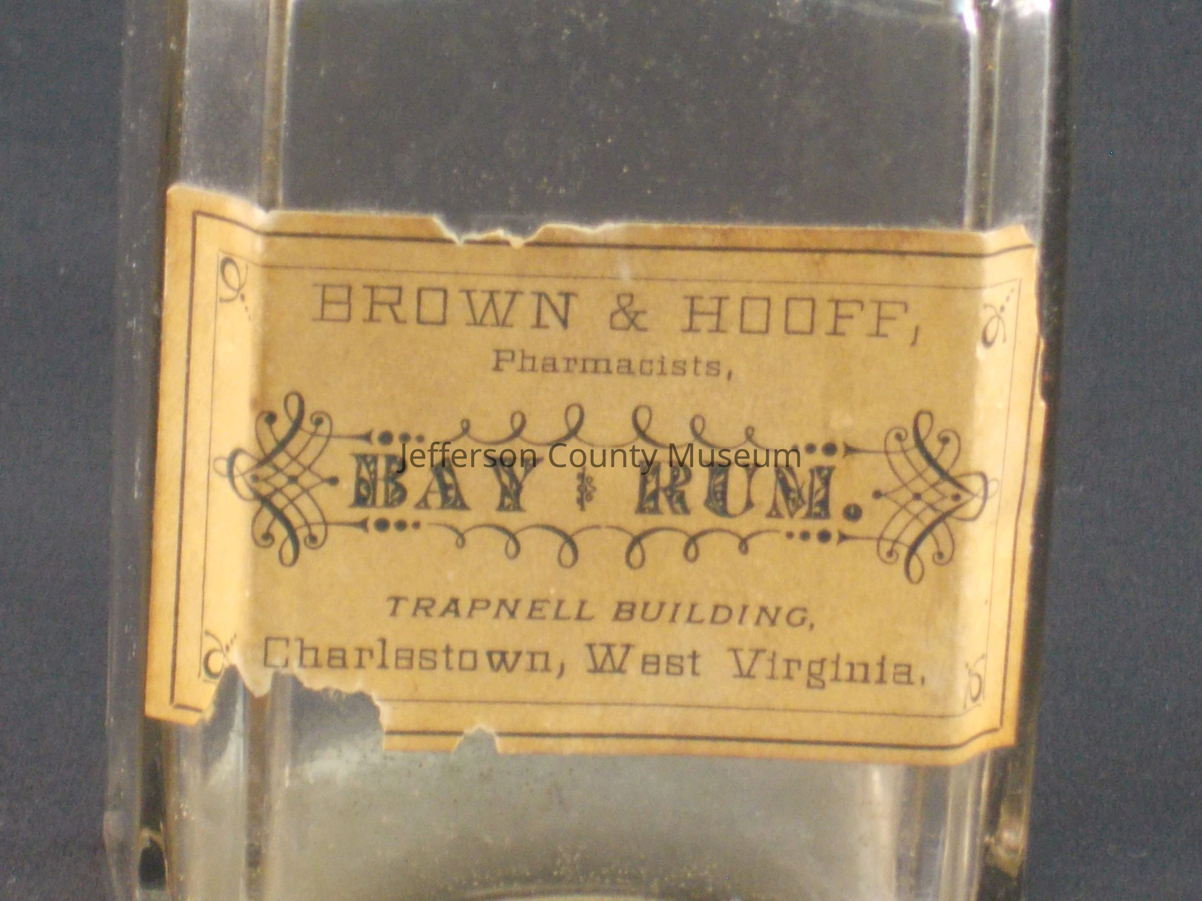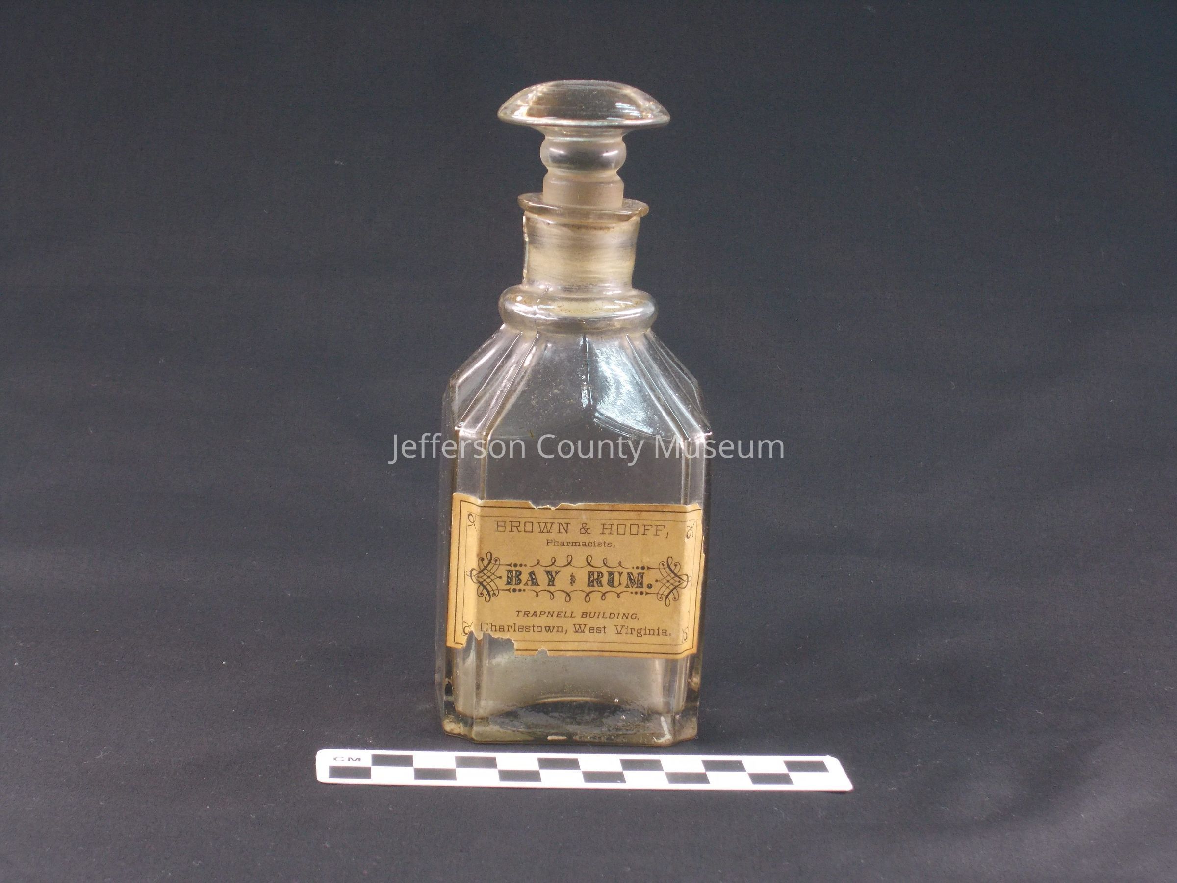 Paper label on bottle "BROWN & HOOFF Pharmicists BAY RUM TRAPNELL BUILDING Charlestown, West Virginia.". Glass stopper.Acquisition