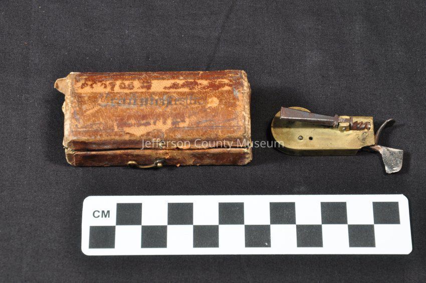 Small brass and steel bleeder with case. Case has German word on it. The first part of the word appears to be related to "drainage".