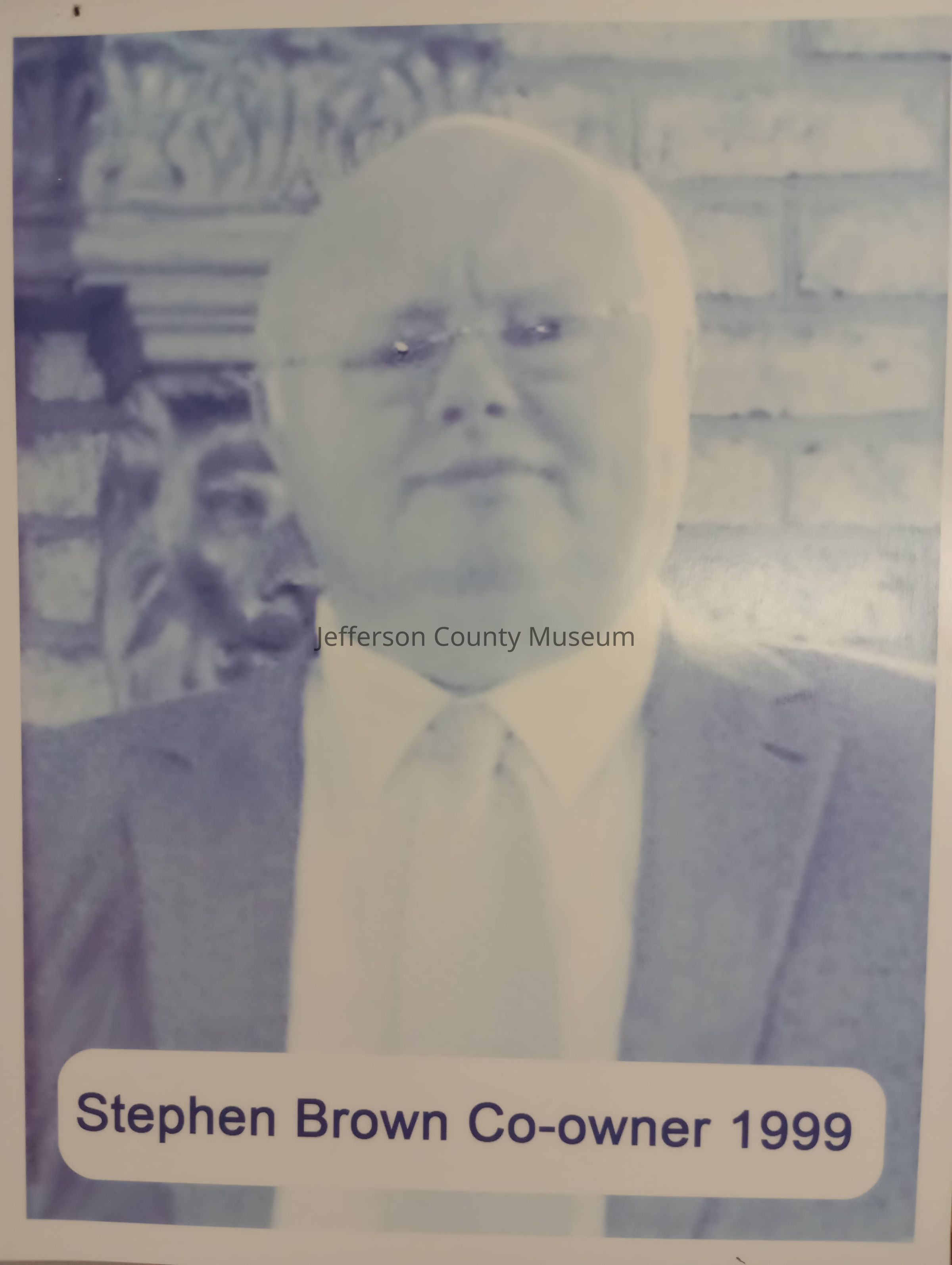 Black and white photograph of Stephen Brown, former owner of the John Brown Wax Museum in Harpers Ferry, with caption "Stephen Brown Co-owner 1999".Photograph Details