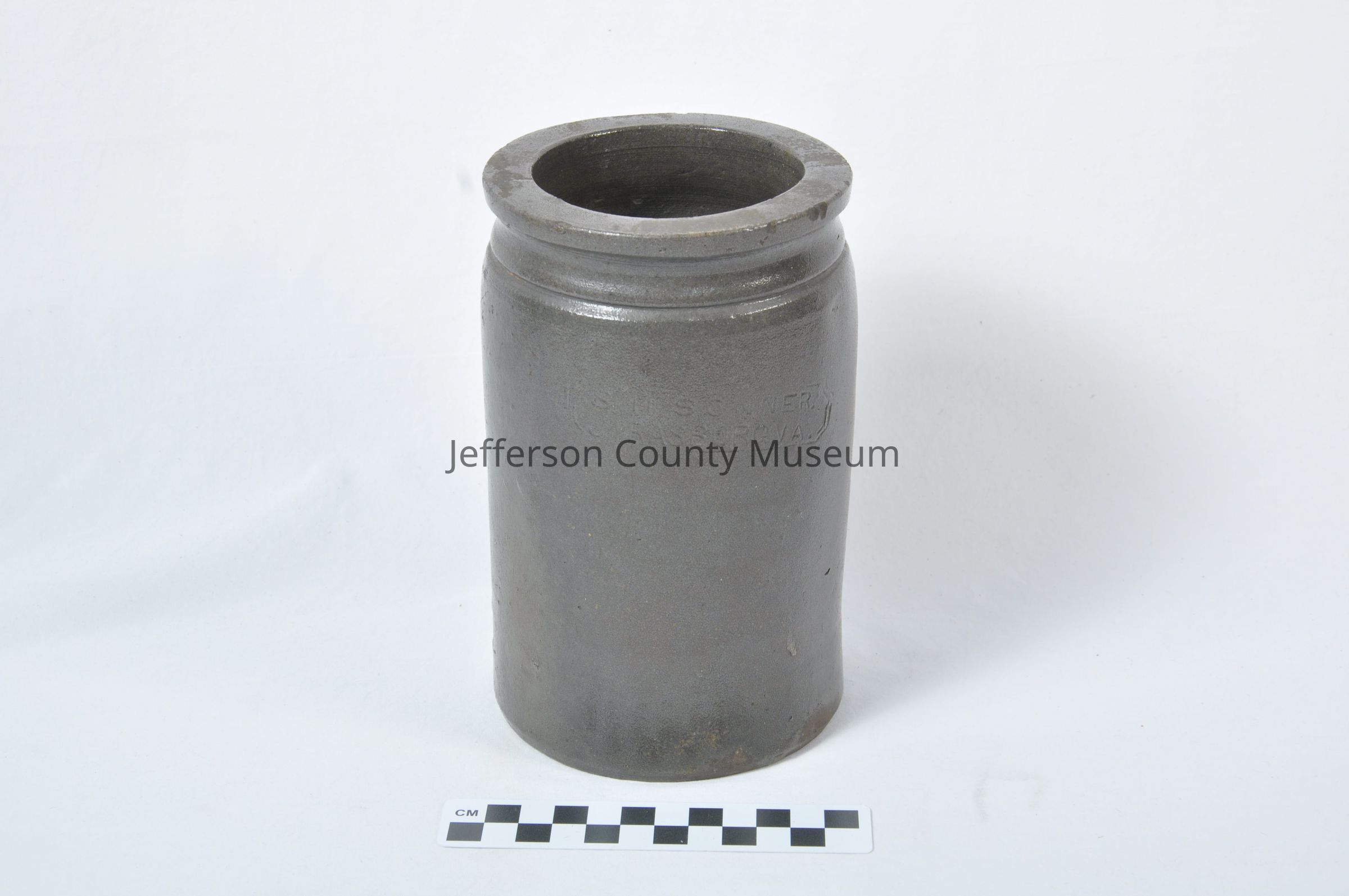 One quart stoneware jar marked "S. H. SONNER STRASBURG, VA." With note from TT Perry inside.Acquisition