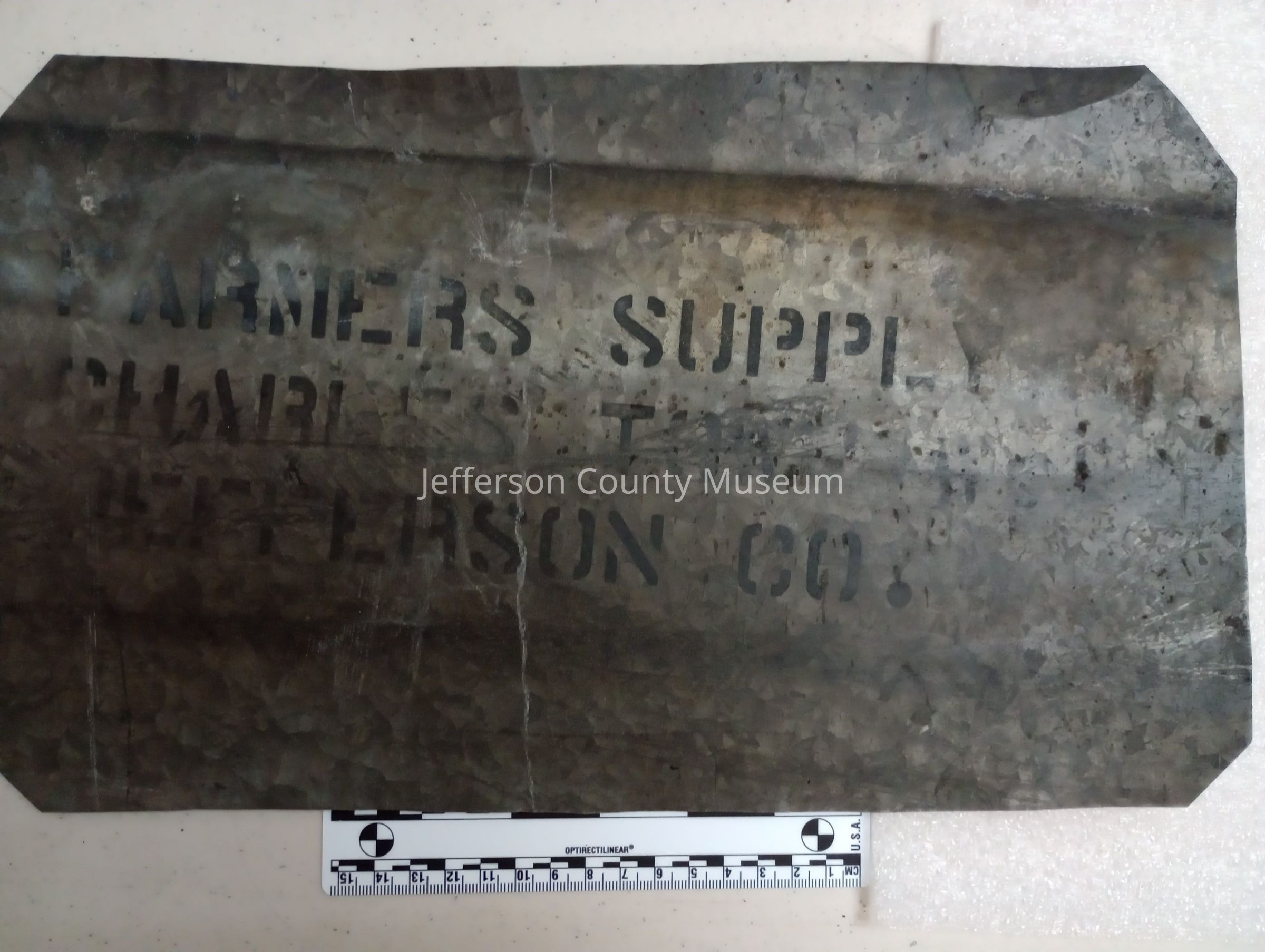 Piece of metal roofing from Farmer's Supply in Charles Town.Acquisition