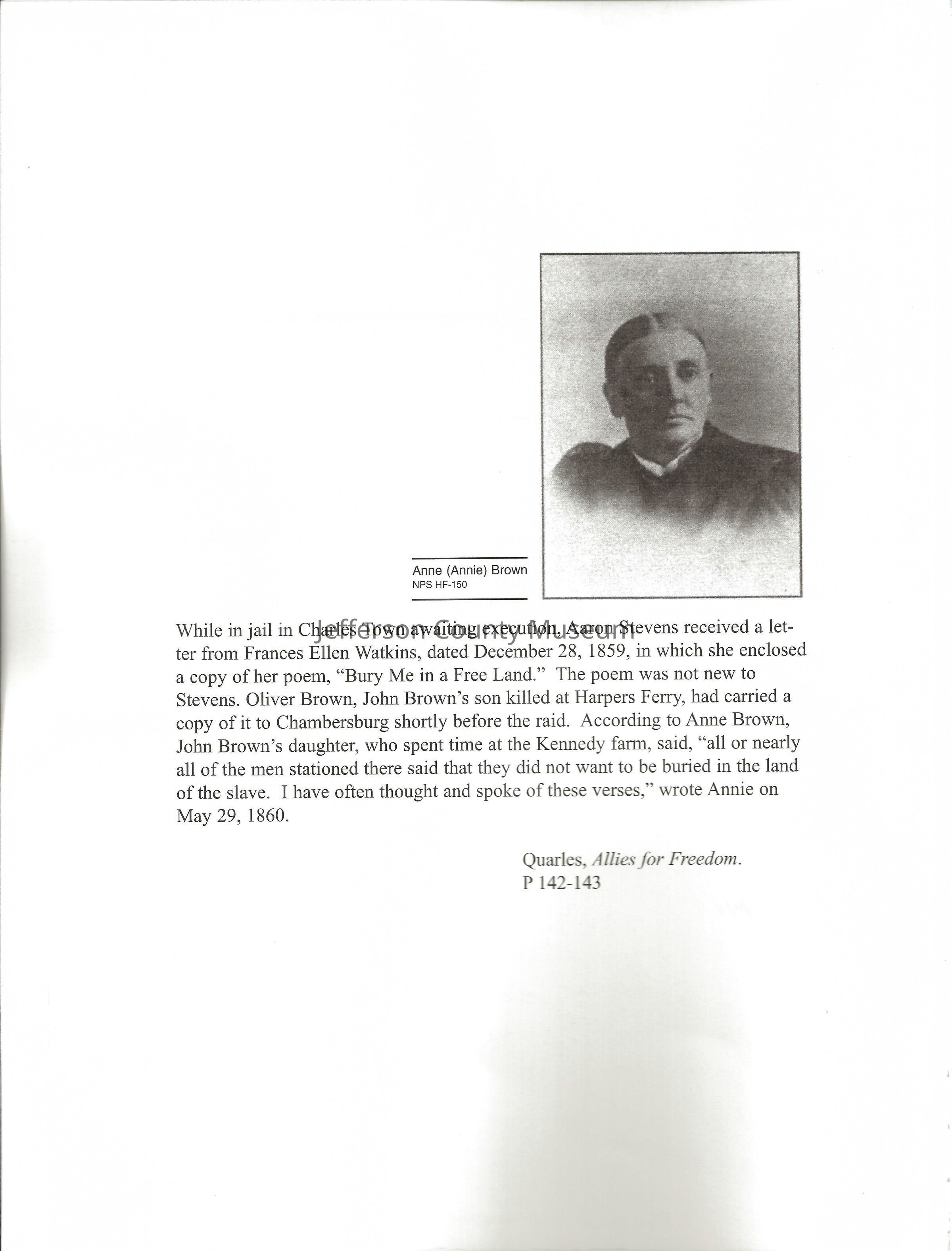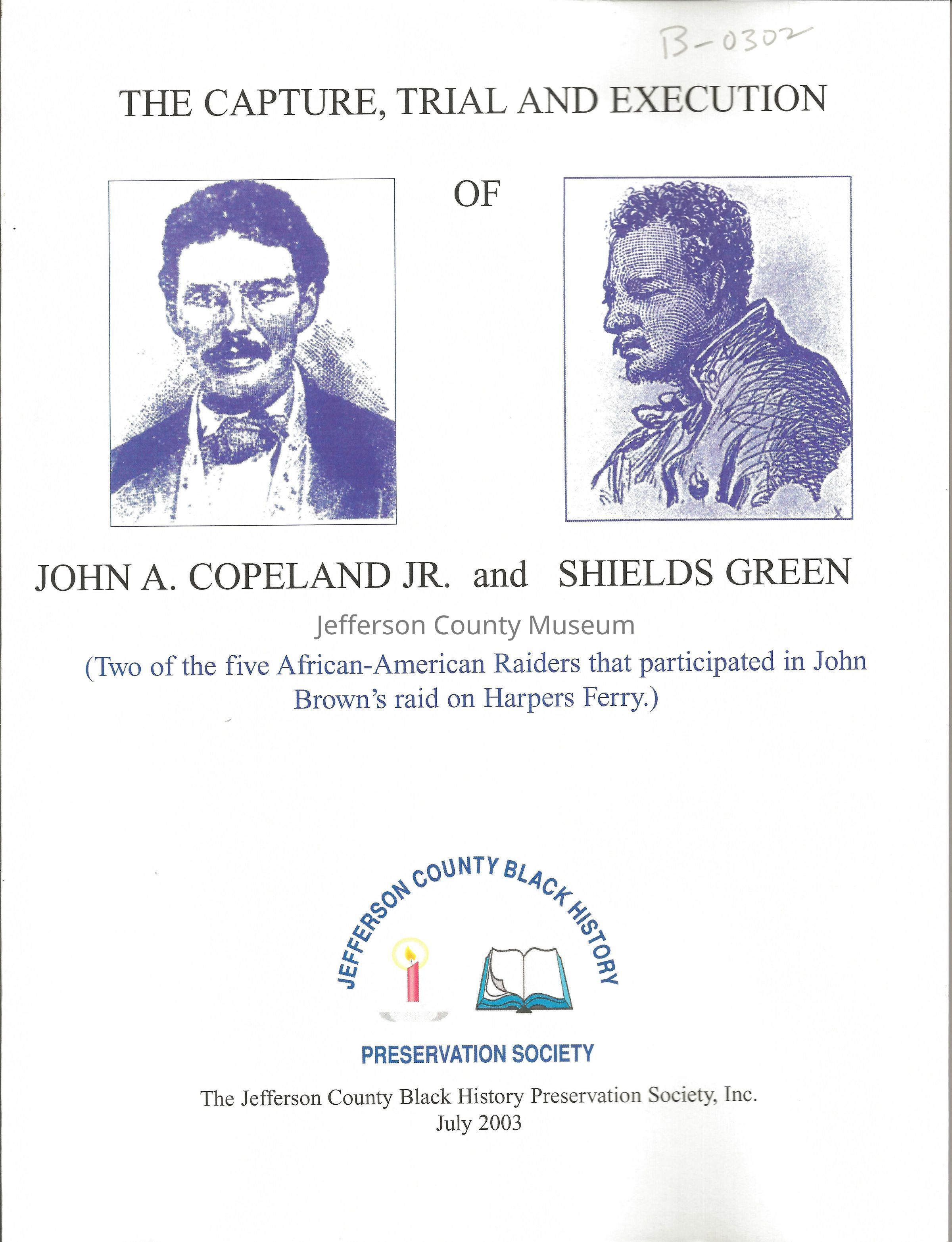 The Capture, Trial and Execution of John A. Copeland, Jr. and Shields Green details the capture, trials and executions of Shields Green and John A. Copeland, Jr., two of the African American raiders who came to Harpers Ferry, VA with abolitionist John Brown to free slaves. The raid on the Federal Arsenal failed and no slaves were freed. Green and Copeland were hanged in Charles Town, VA (WV) on December 16, 1859. This publication captures the last two months of their lives which were spent in the Charles Town jail.Acquisition