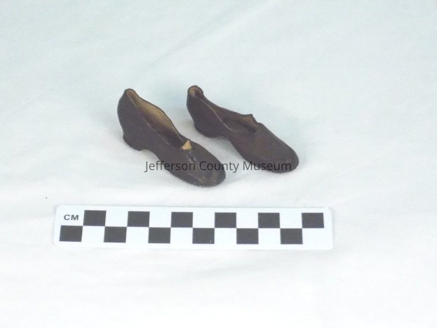 Doll shoes made of rubber. Marked on bottom in circle "BOSTON RUBBER SHOE CO."