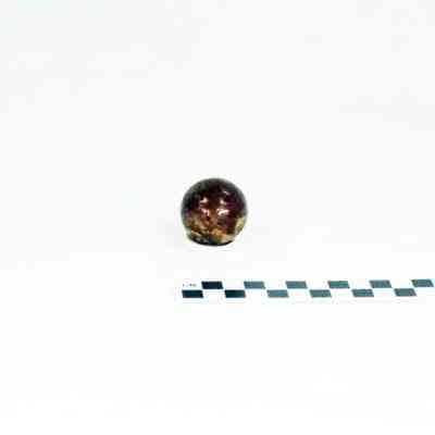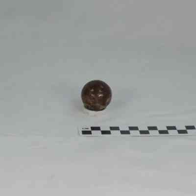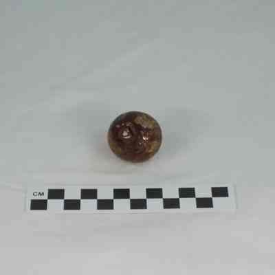 Two large brown stoneware marbles. Irregular surface on each as if made from potter's leftovers.