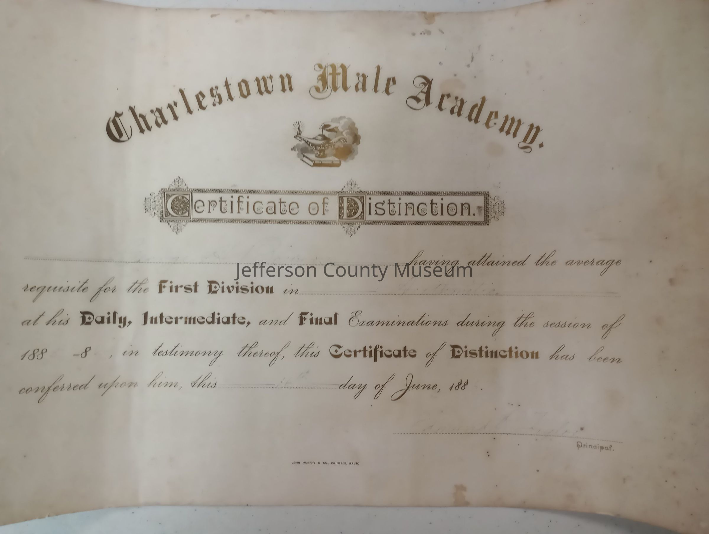 Certificate of Distinction for Arithmetic from the Charles Town Male Academy, awarded to George Bowers.Acquisition