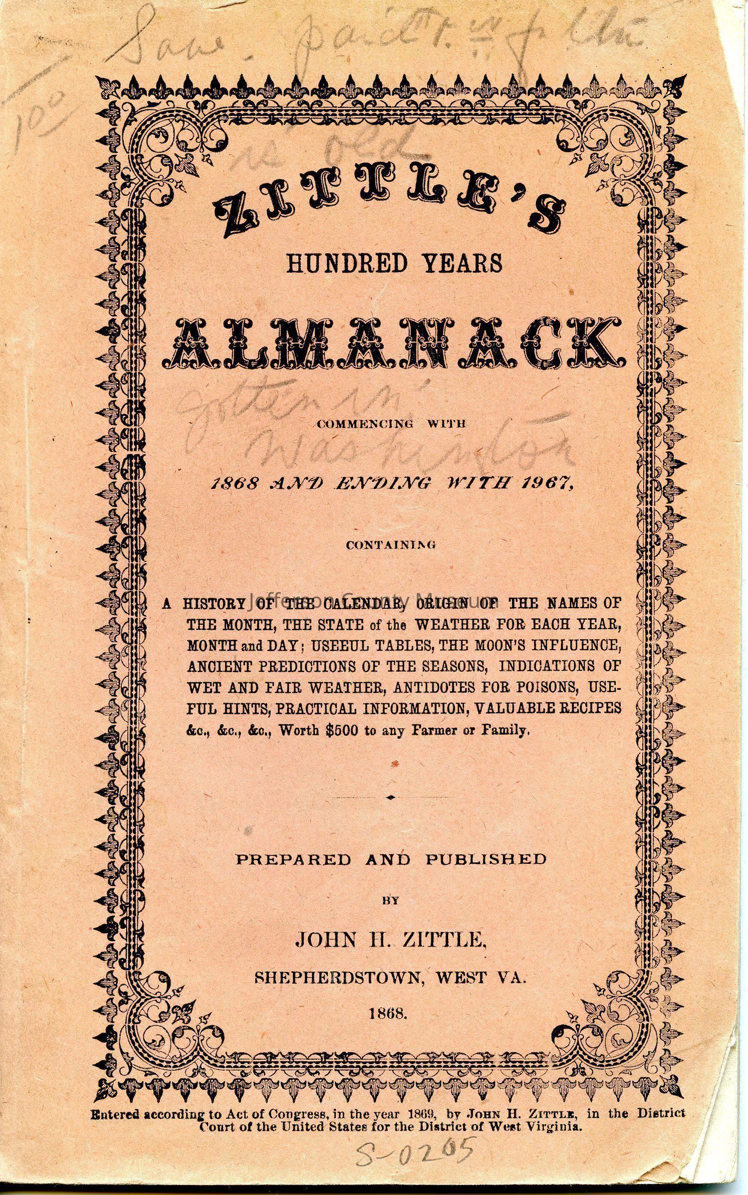 Zittle's Hundred Years Almanack Commencing with 1868 and Ending with 1967Entry/Object ID