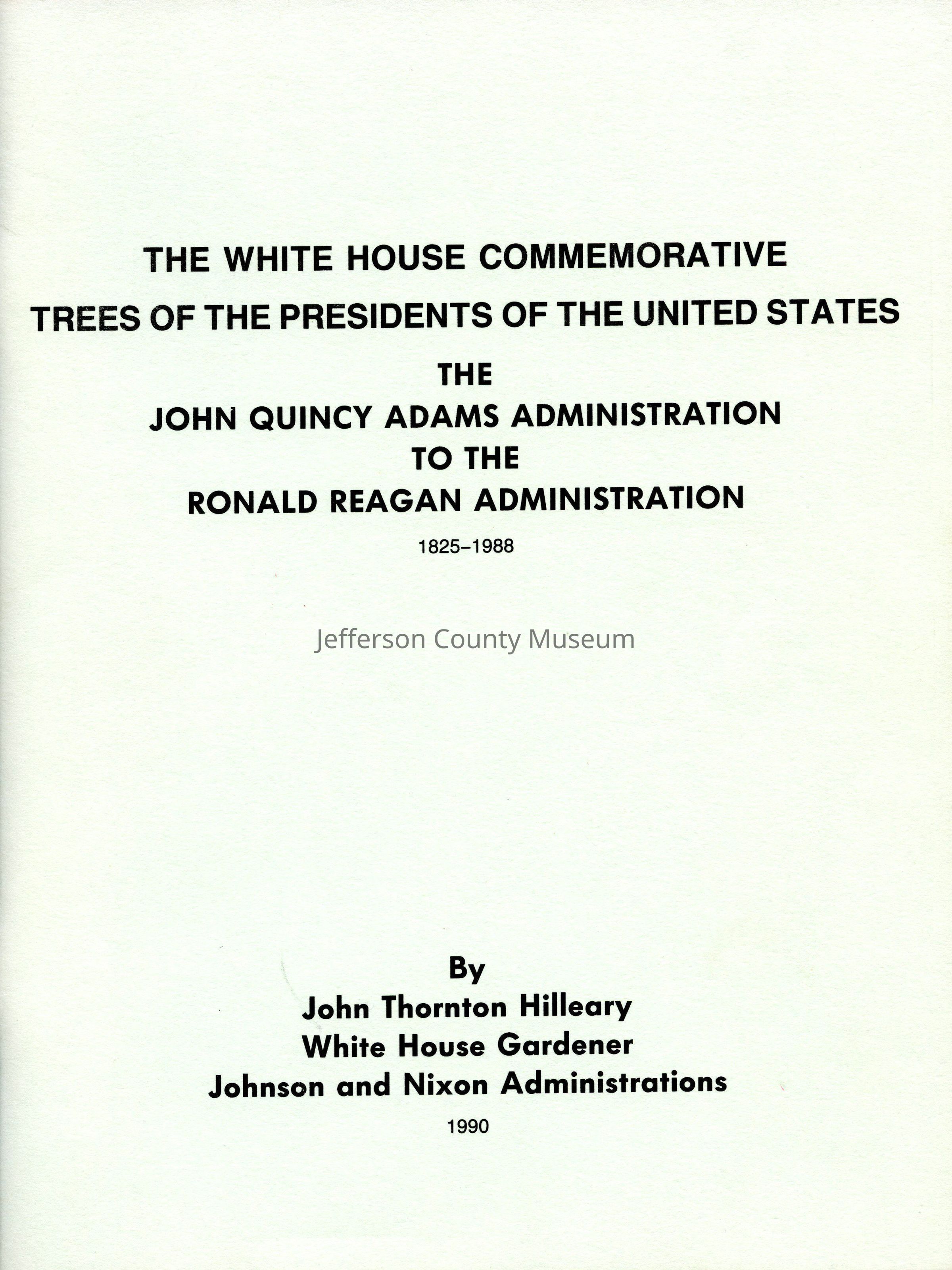 White House Commemorative Trees of the Presidents of the United States the John Quincy Adams Administration to the Ronald Reagan Administration 1825-1988, TheEntry/Object ID
