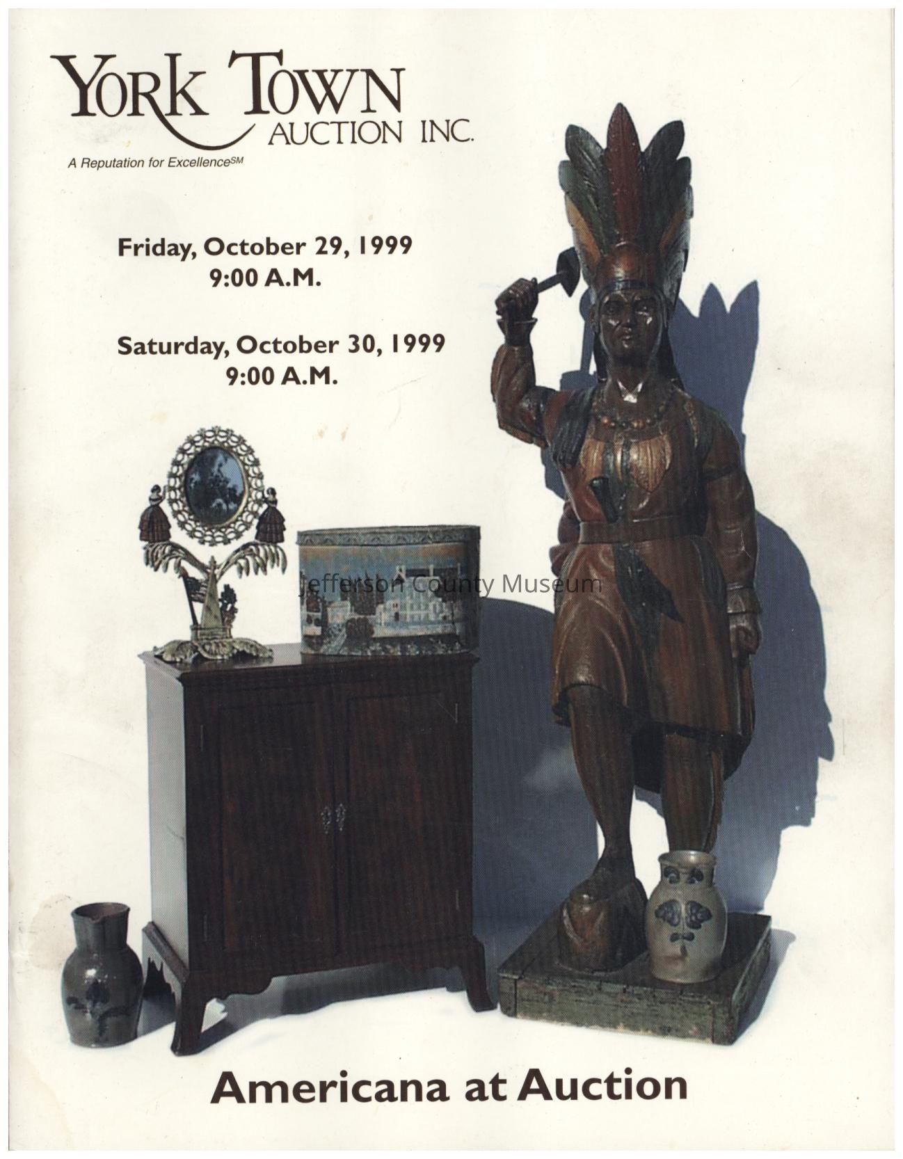 A catalogue of items up for auction on Friday, October 29, and Saturday, October 30, 1999, at York Town Auction, Inc,. York, Pa. Included are parts the collection of Thornton Tayloe (T. T.) Perry of Charles Town.