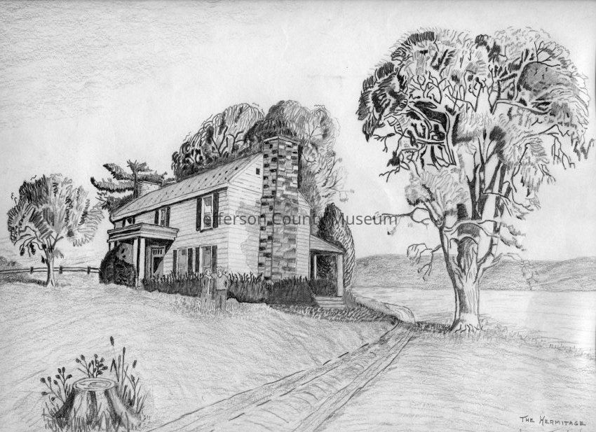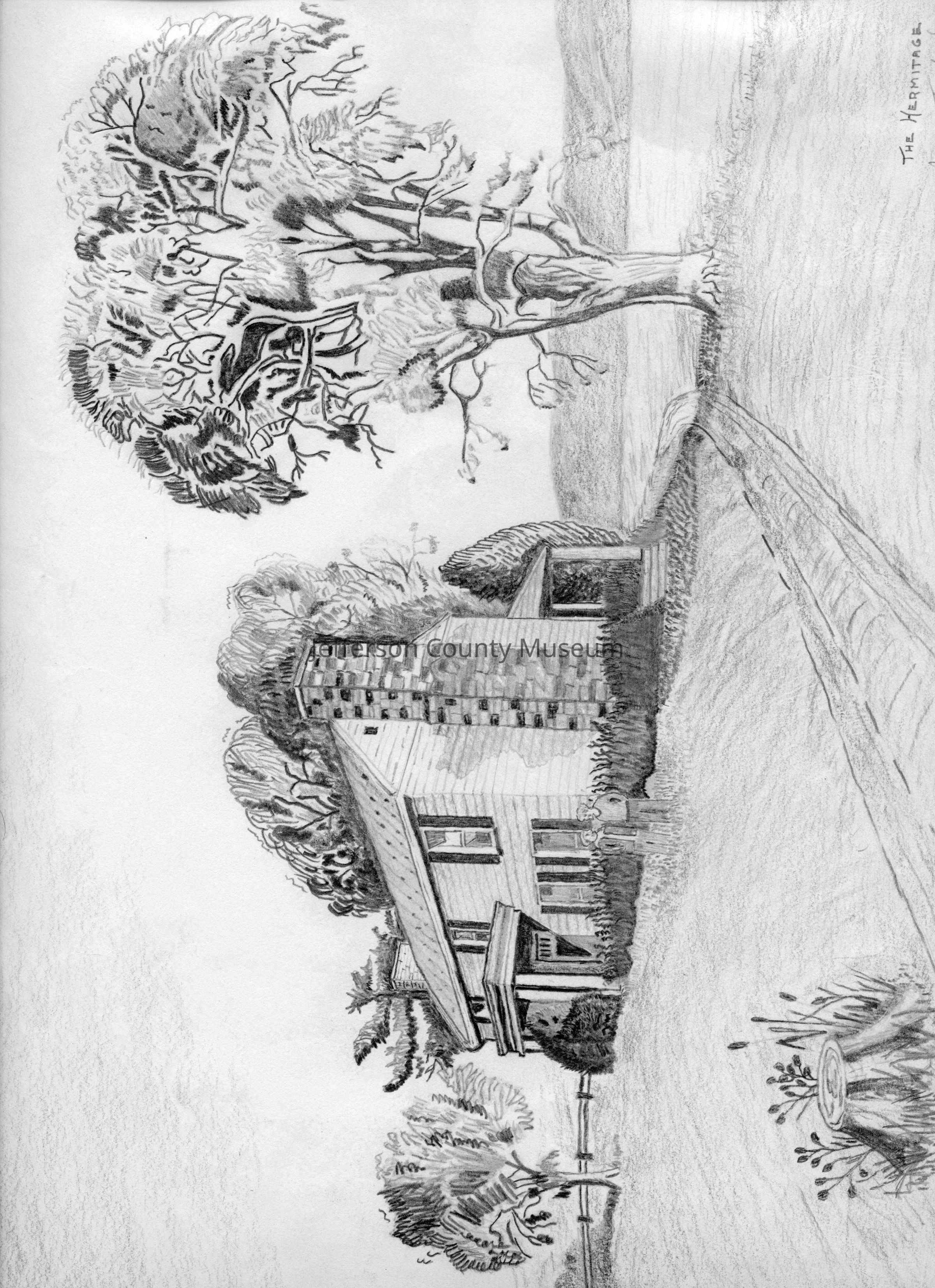 Pencil sketch of "The Hermitage" signed by James Tankard