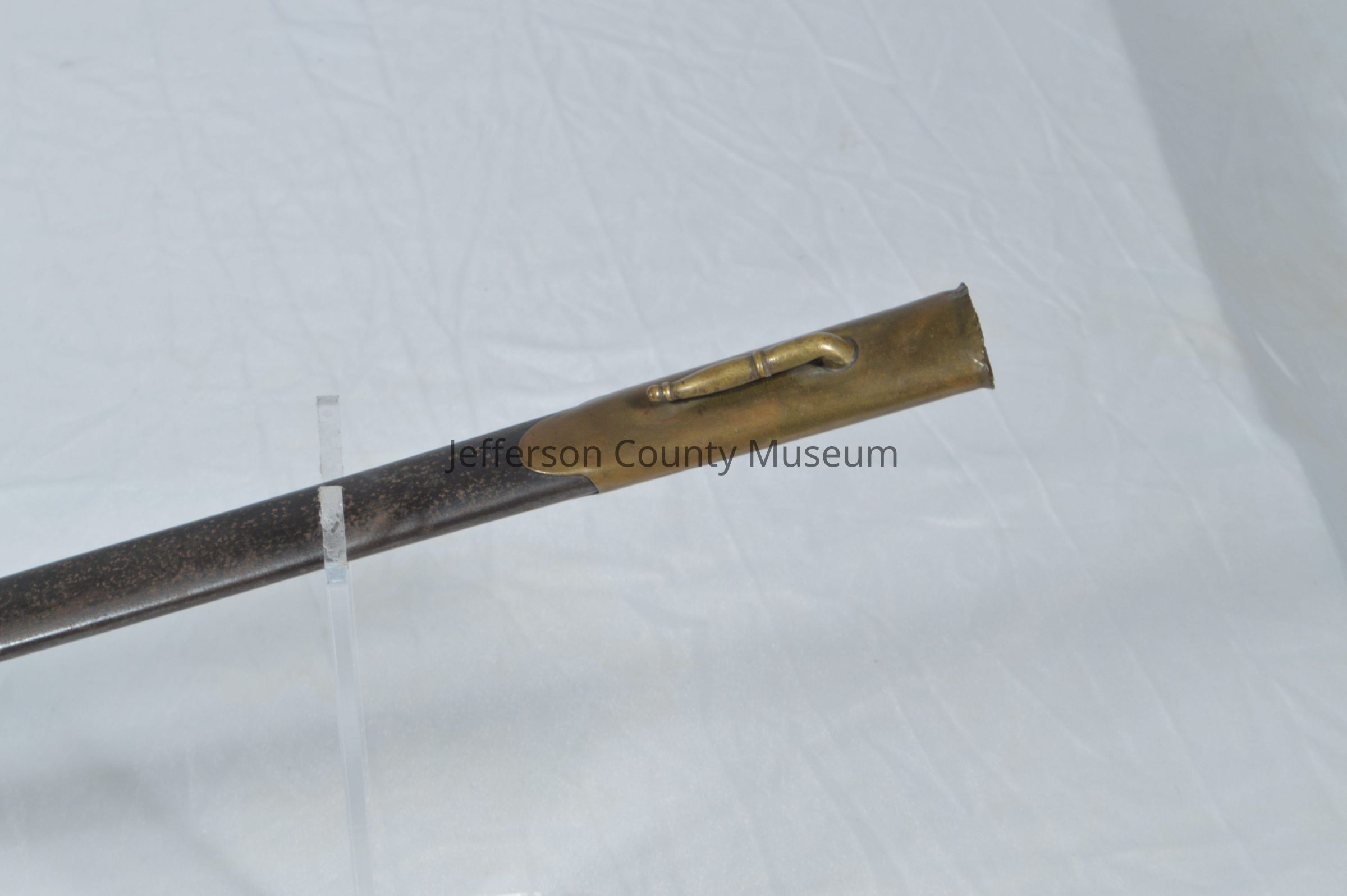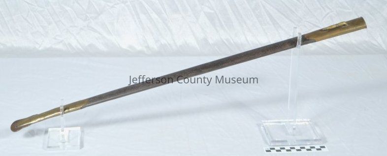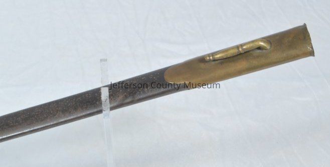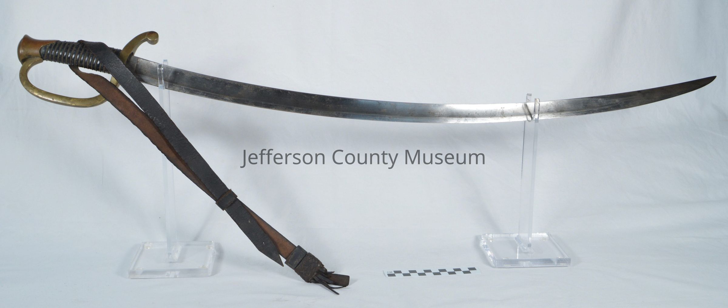 U. S. light artillery saber and scabbard, model 1840. Blade and scabbard are curved. Leather saber knot attached to knuckle guard of saber. Hilt of saber is wrapped with leather and brass wire. Knuckle guard is brass. Scabbard has two rings.Acquisition