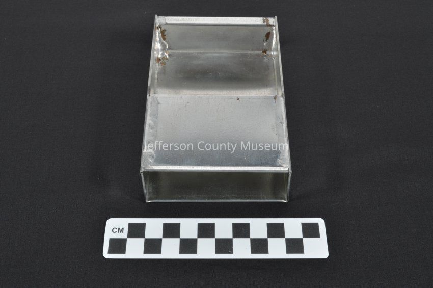Reproduction tin cartridge box liner with two compartments that would be used for separating cartridges inside leather cartridge box.Acquisition