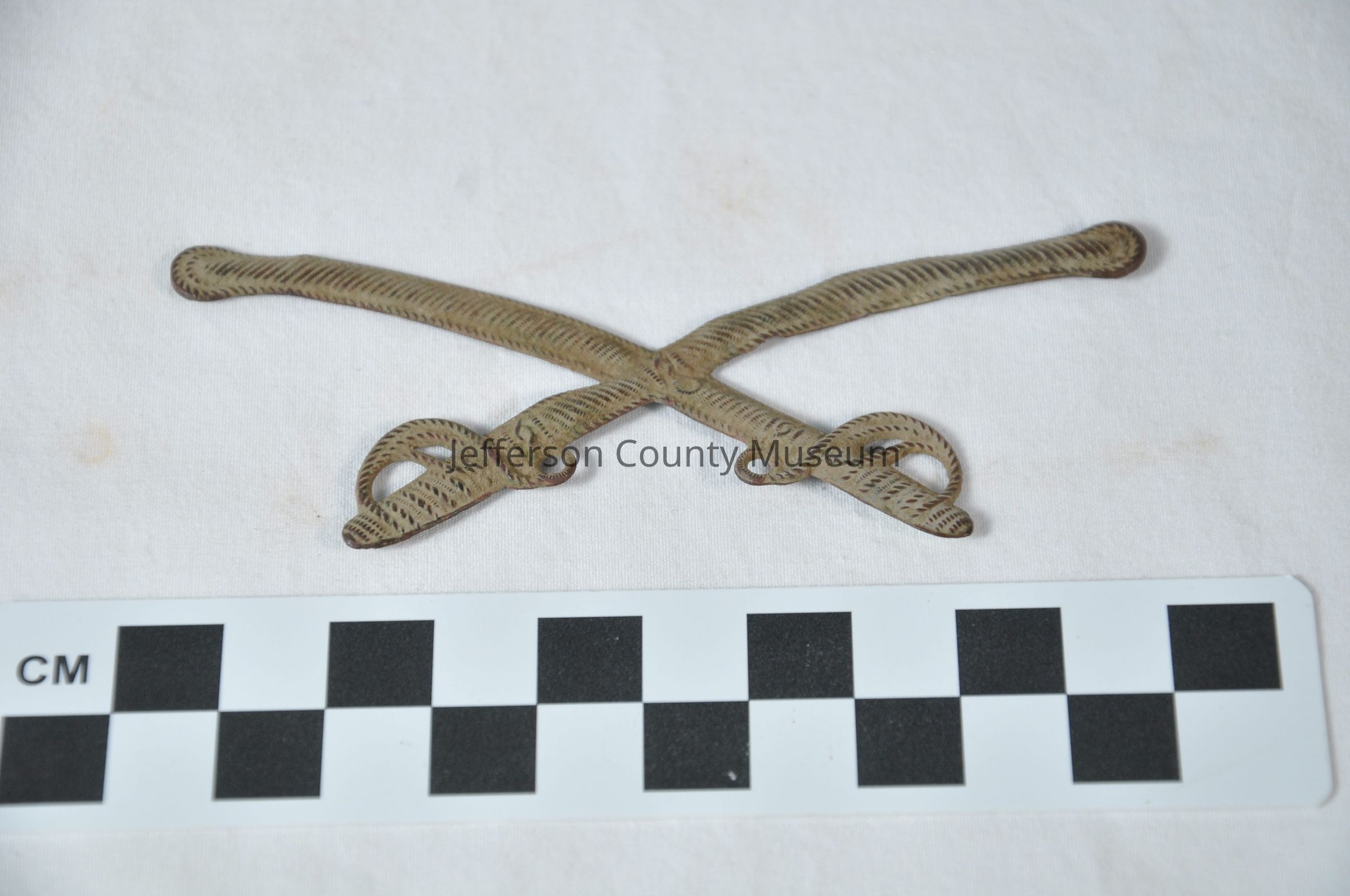 Brass cavalry hat badge. Crossed sabers. Excavated.
