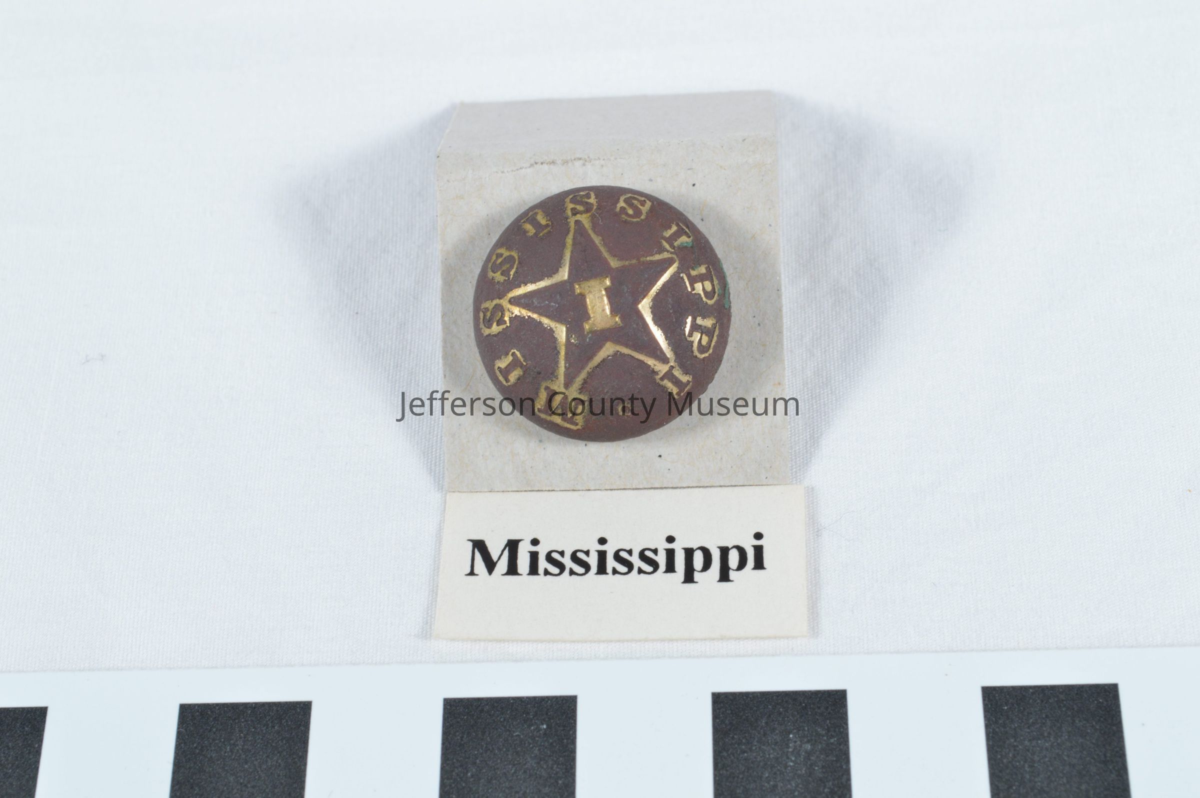 "MISSISSIPPI" Infantry button. "I" in star in center. Loop on back. Made by Hyde & Goodrich but illegible on back.Acquisition