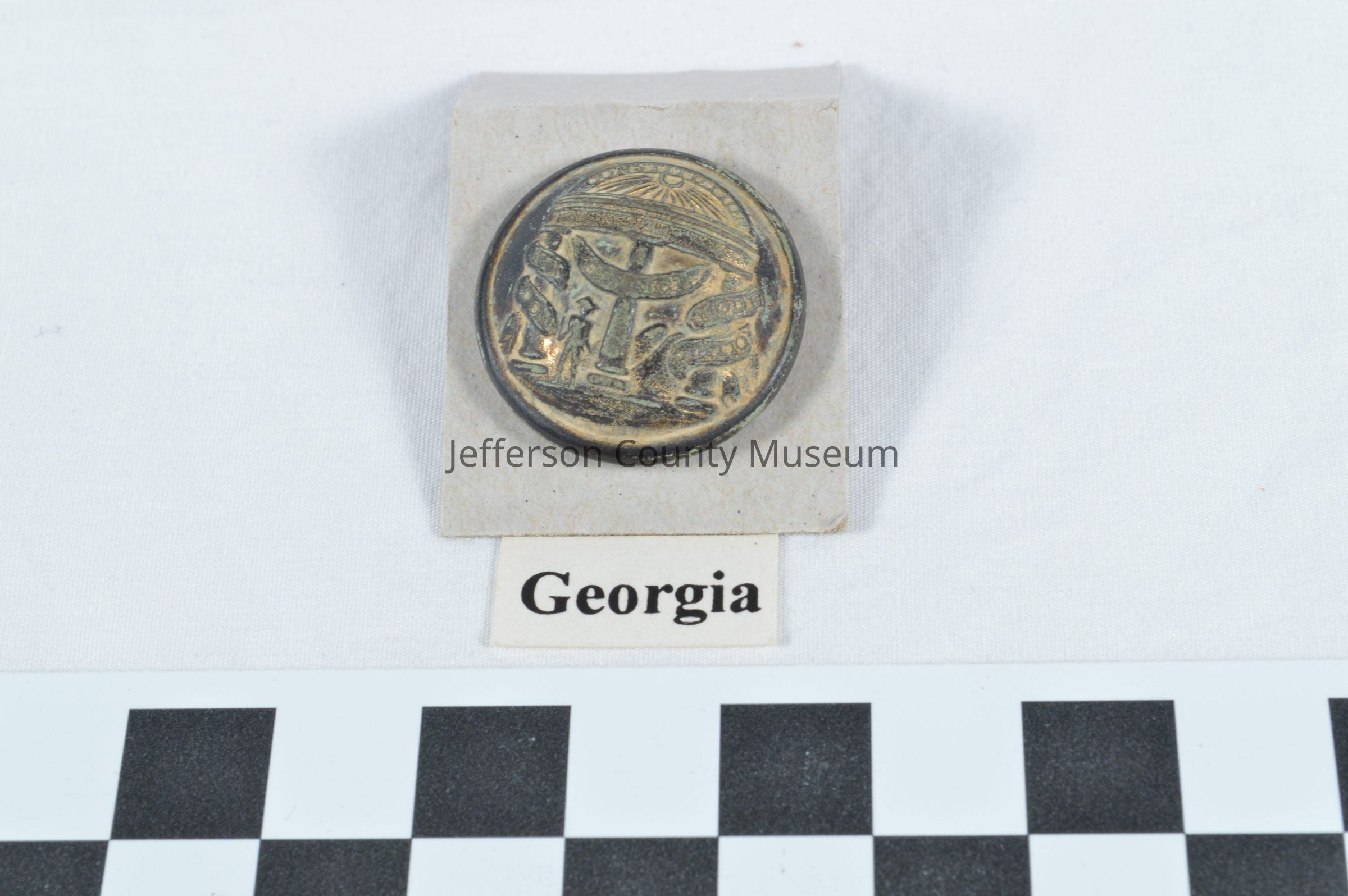 Georgia button, state seal dome over three pillars. Probably Scovill manufacture. Blank on back.Acquisition
