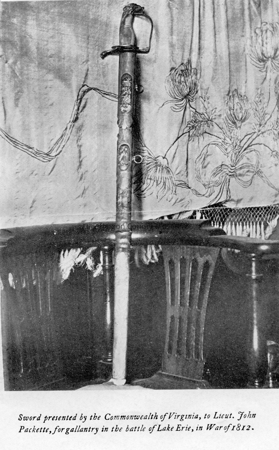 "Sword presented by the Commonwealth of Virginia, to Lieut. John Packette, for gallantry in the battle of Lake Erie, in War of 1812." From a book or catalog.