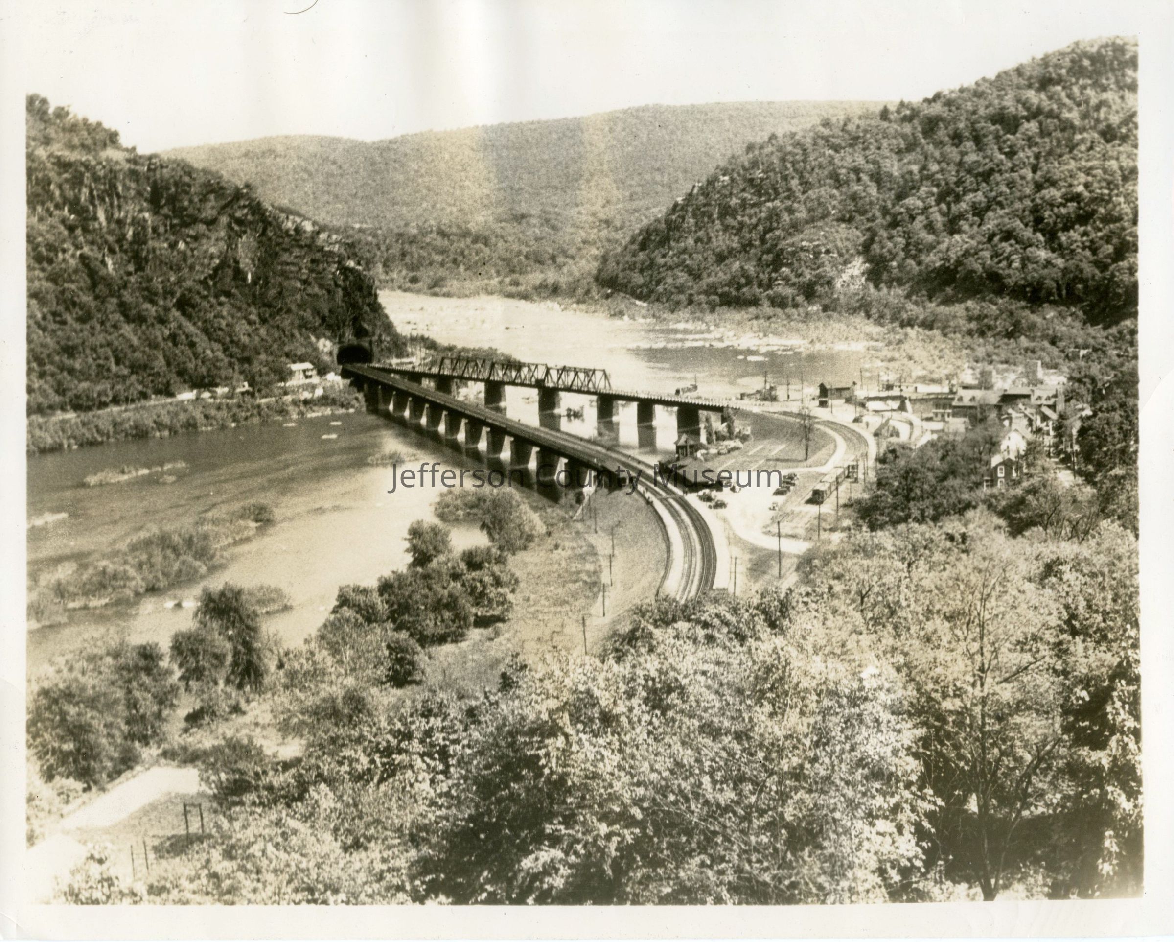11. Black & white photo of Harpers Ferry at junction of Shenandoah and Potomac Rivers, sometime between 1936 and 1949