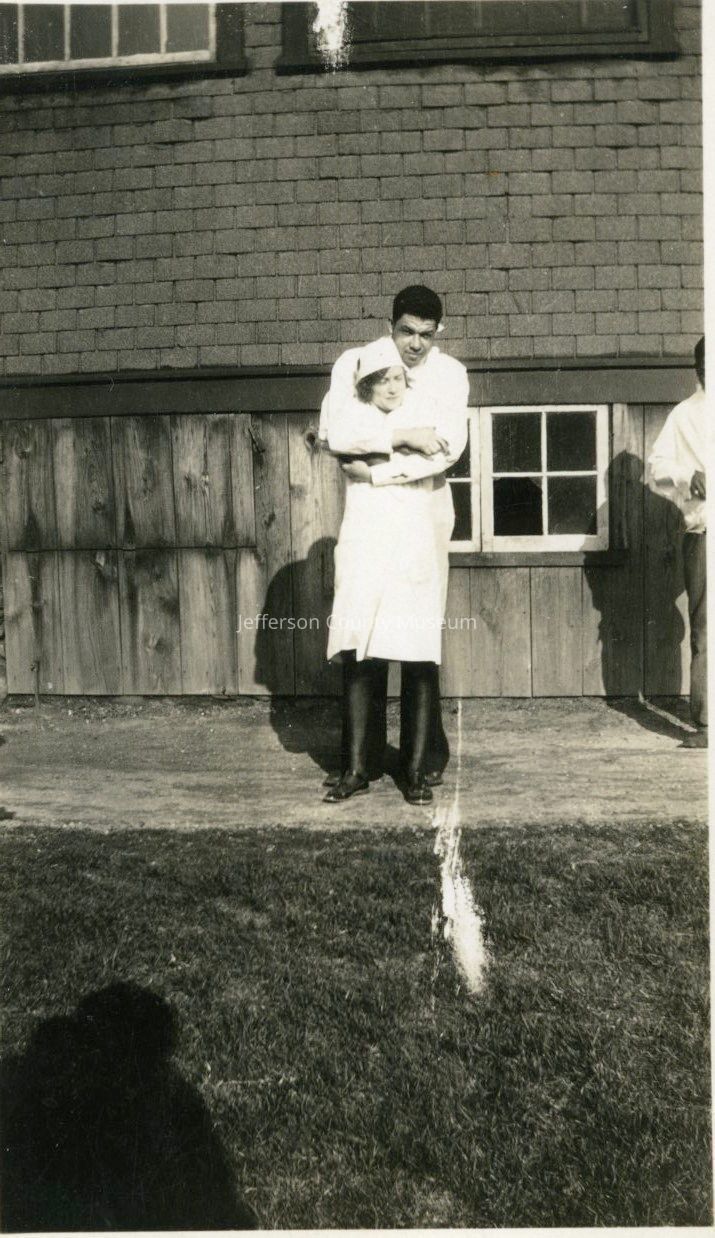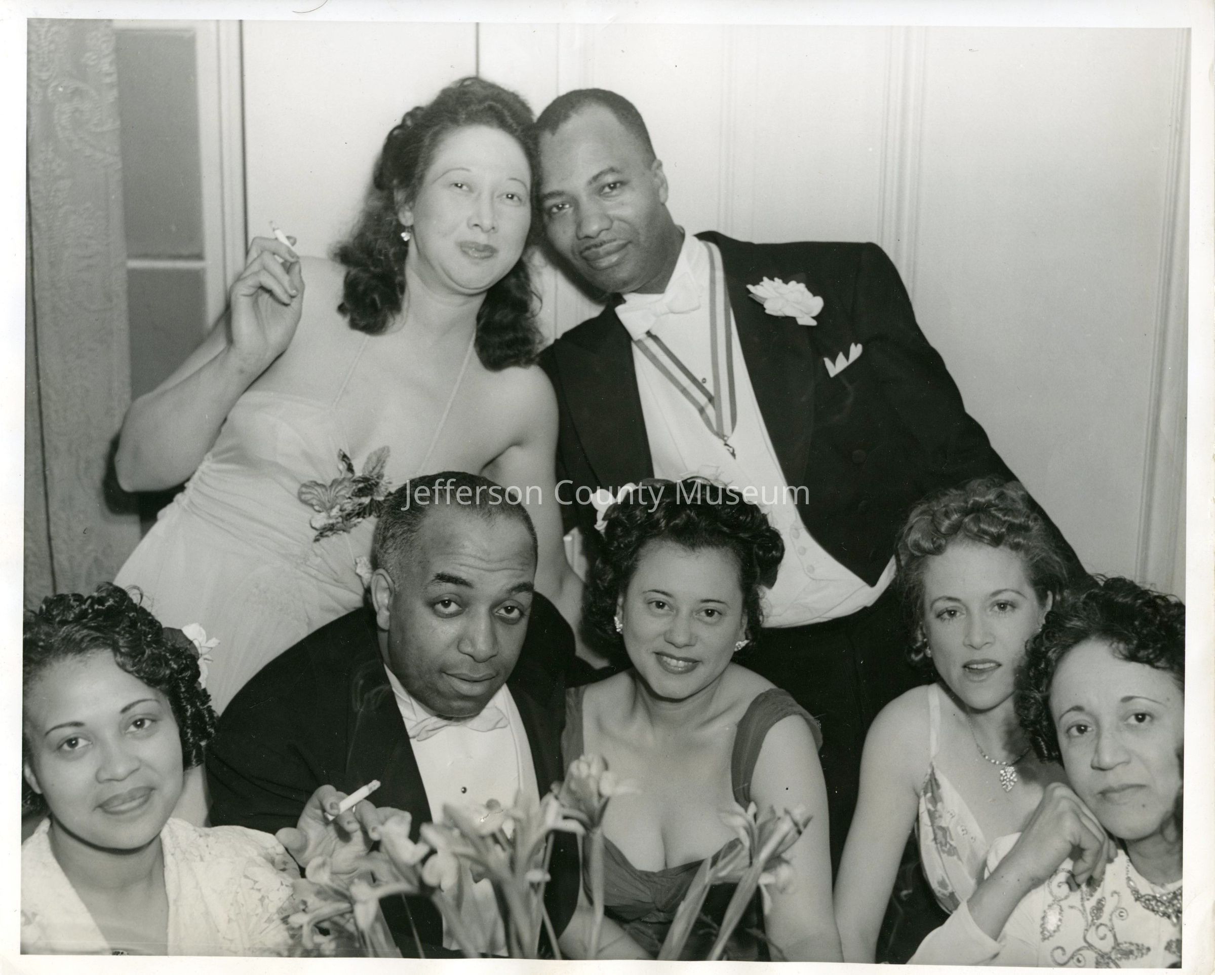 12. Black & white photo of unidentified people in fancy dress. Stamped on back: GAINES PHOTO SERVICE 11 BUSHNELL PL. MT. VERNON, N. Y. CREDIT LINE REQUIRED WHEN REPRODUCED".