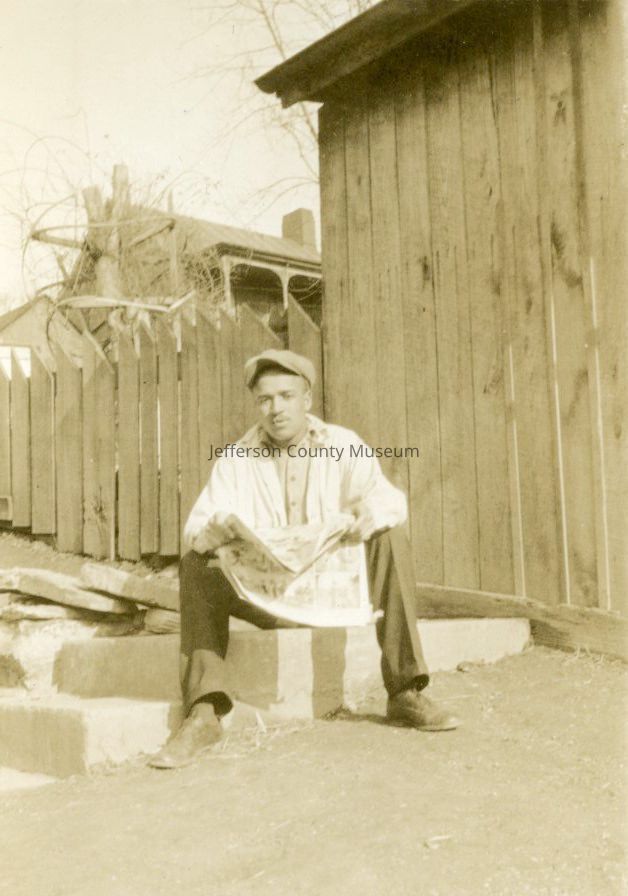 21. Black & white photo of unidentified man reading newspaper, possibly Storer College