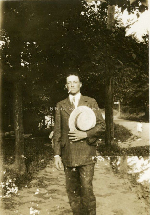 22. Black & white photo of unidentified man smoking cigarette and holding a straw boater, possibly Storer College