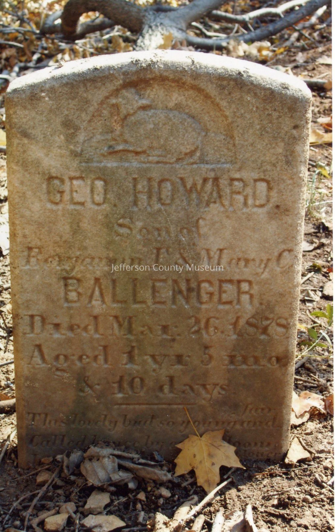 Kabletown Churchyard - Gravestone for George Howard Ballenger, Son of Benjamin E. and Mary C. Ballenger, Died March 26, 1878, 1yr, 5 mon., 10 daysAcquisition