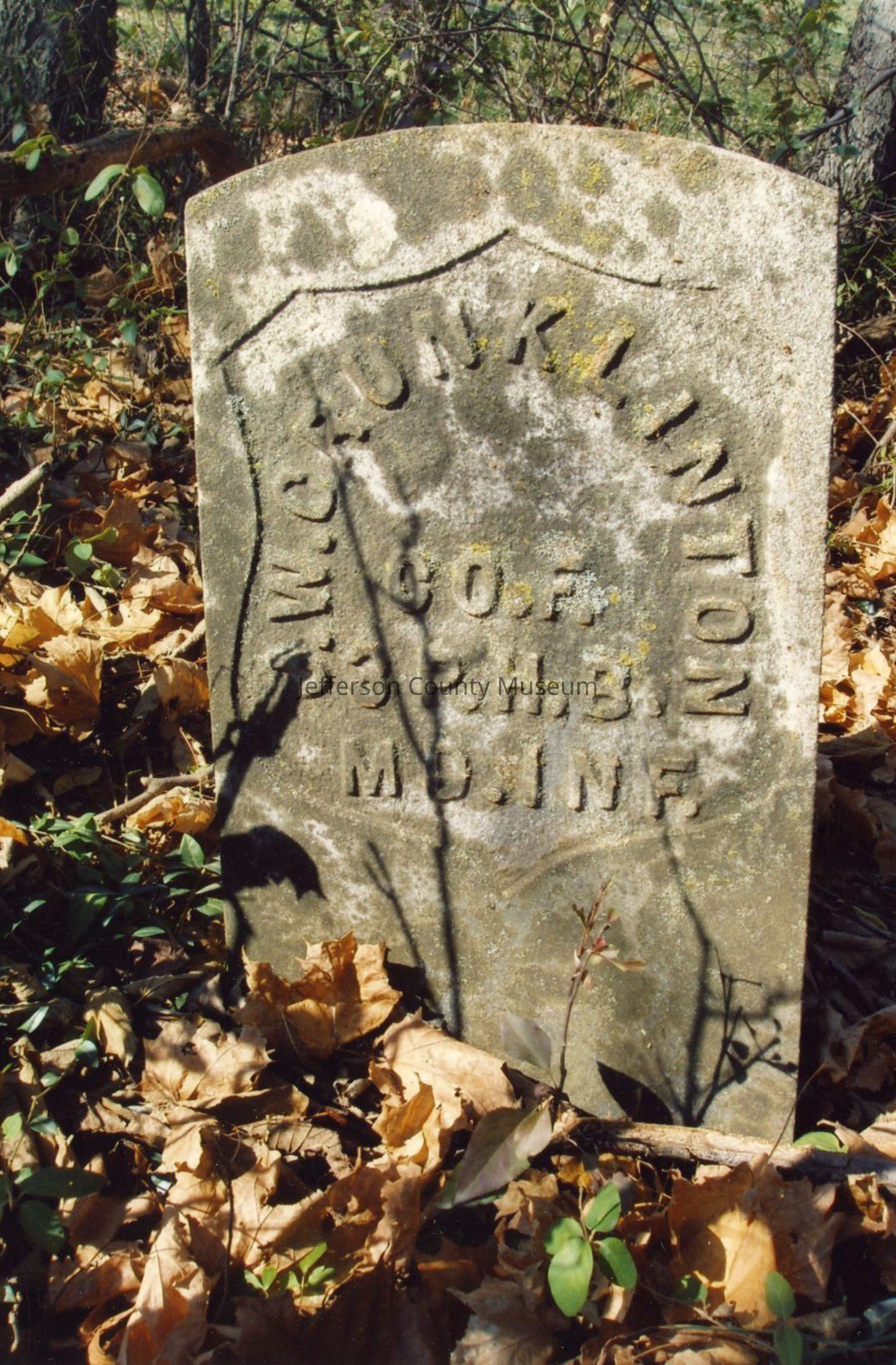 Kabletown Churchyard gravestone for J. W. Crunklinton, CO. F., 3 P.H.B., MD. INF.Acquisition
