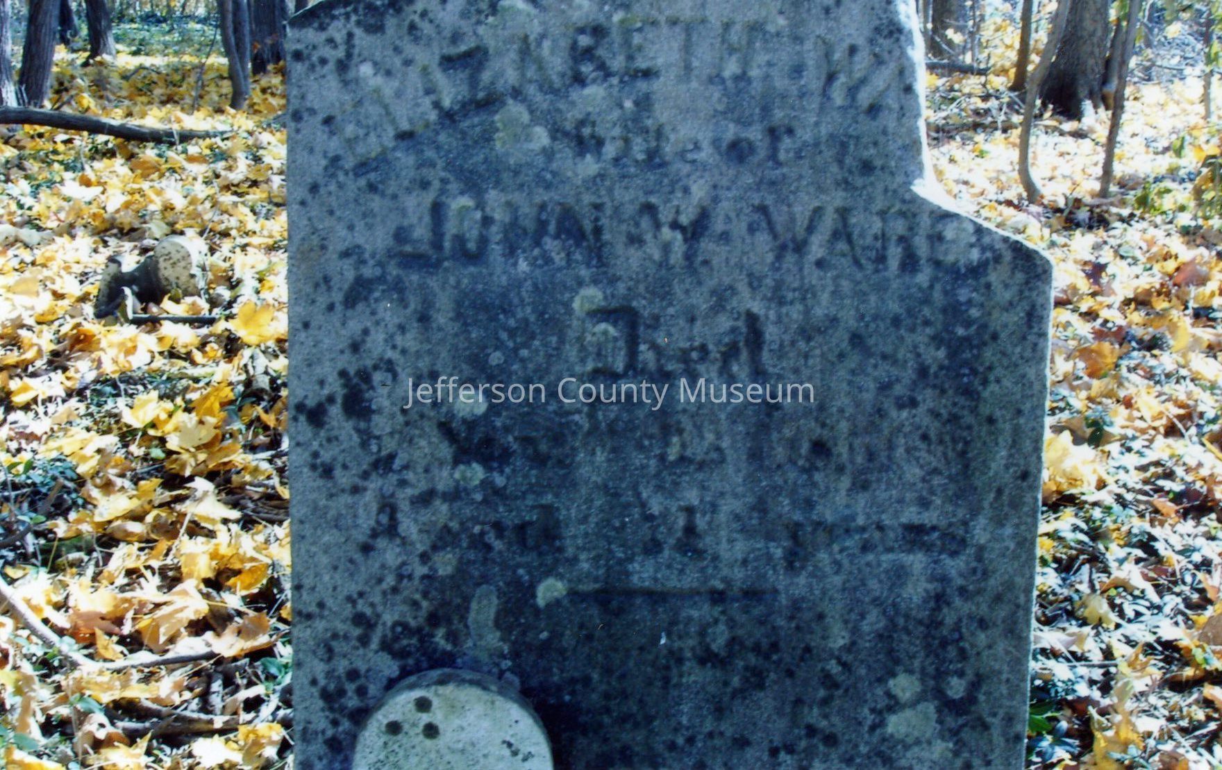 Kabletown Churchyard gravestone for Elizabeth Ware, wife of John Ware, died Nov. 9, 1866, aged 71 years.Acquisition