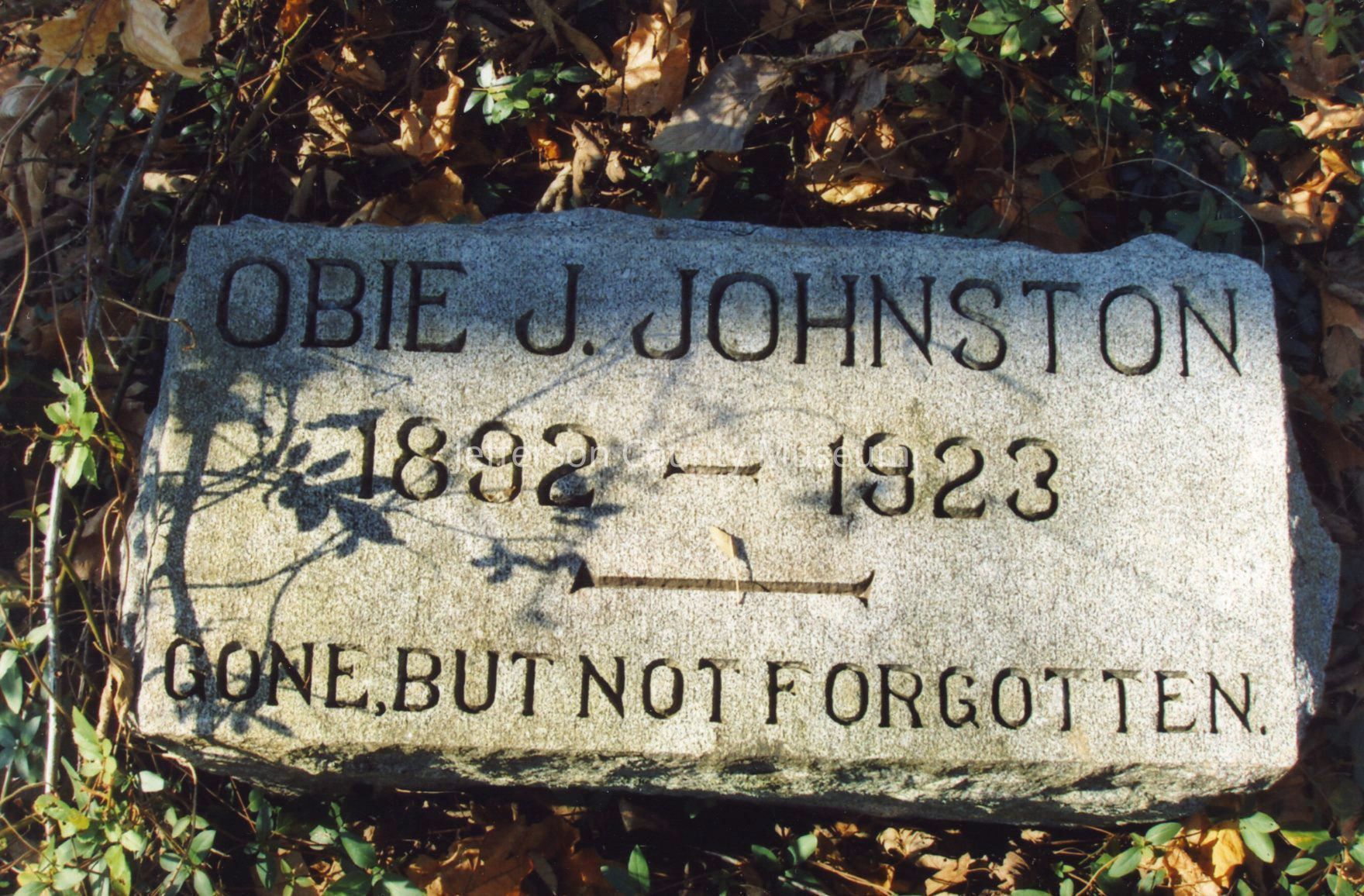 Kabletown Churchyard gravestone for Obie J. Johnson, 1892-1923Acquisition