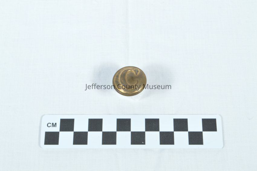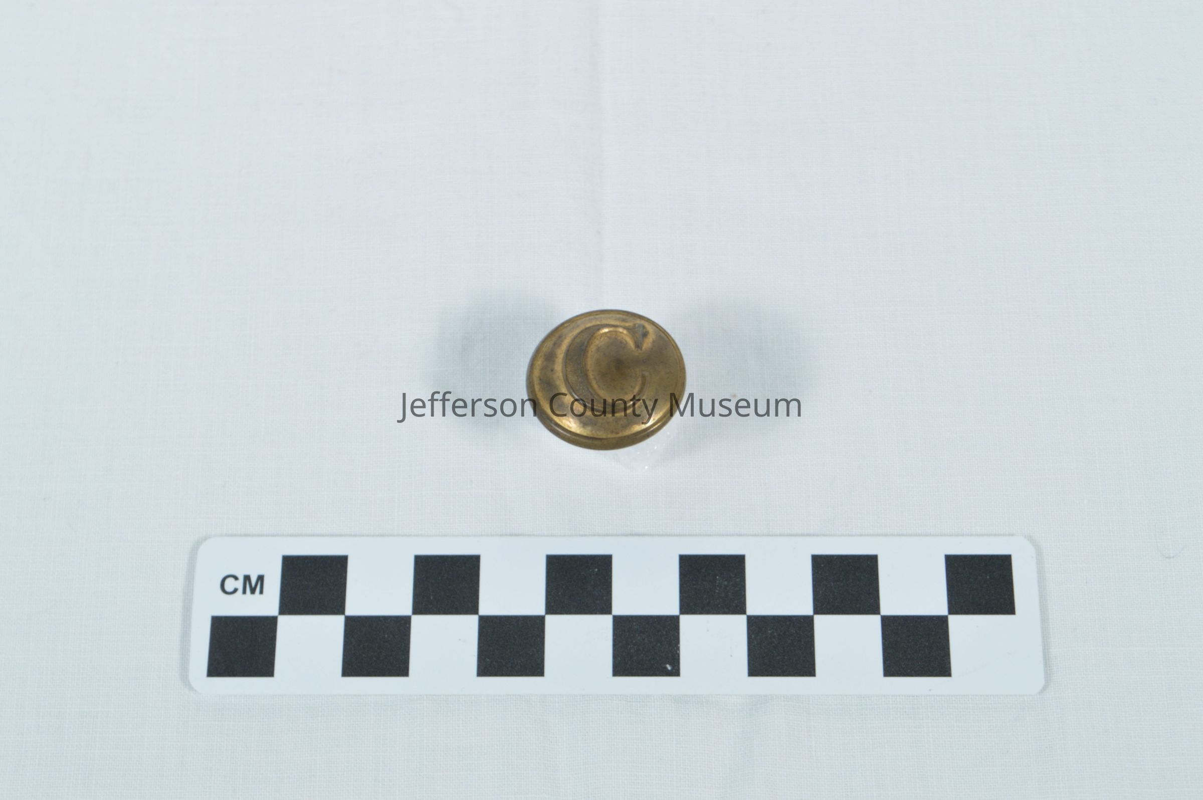 Brass Confederate cavalry uniform button. Large plain "C" on front. On back "H T & B MANCHESTER".Acquisition